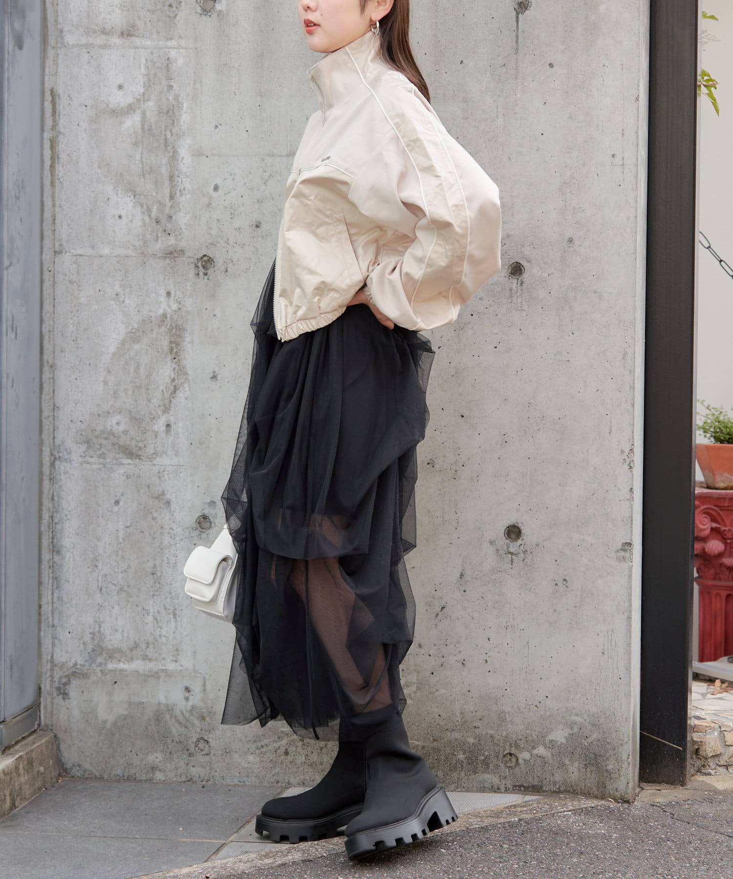 ・ワンピースやミニボトムなど甘めなアイテムに合わせるのがおすすめです。