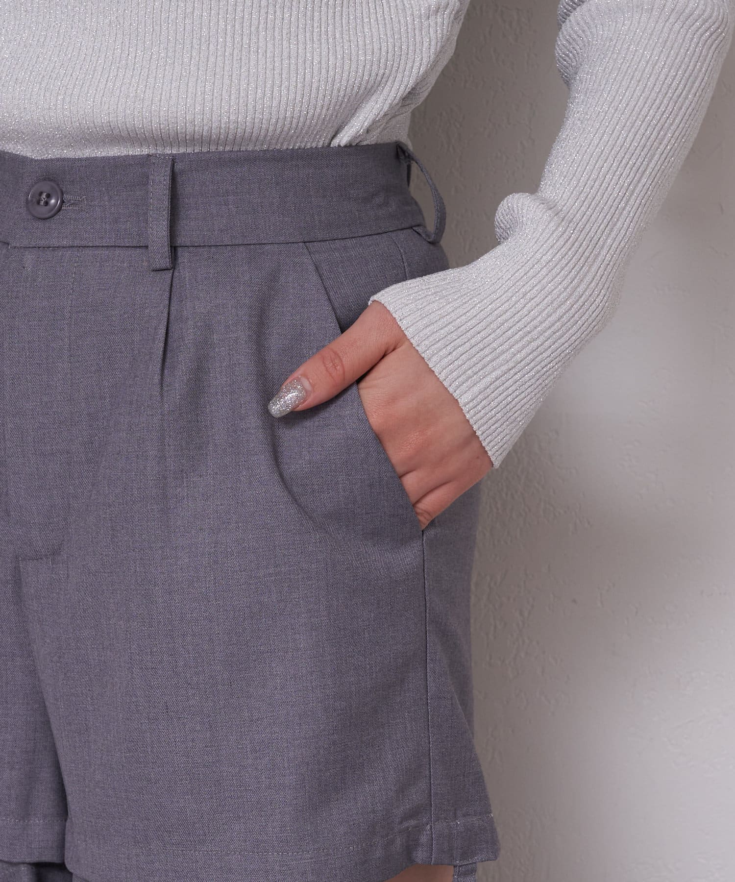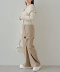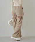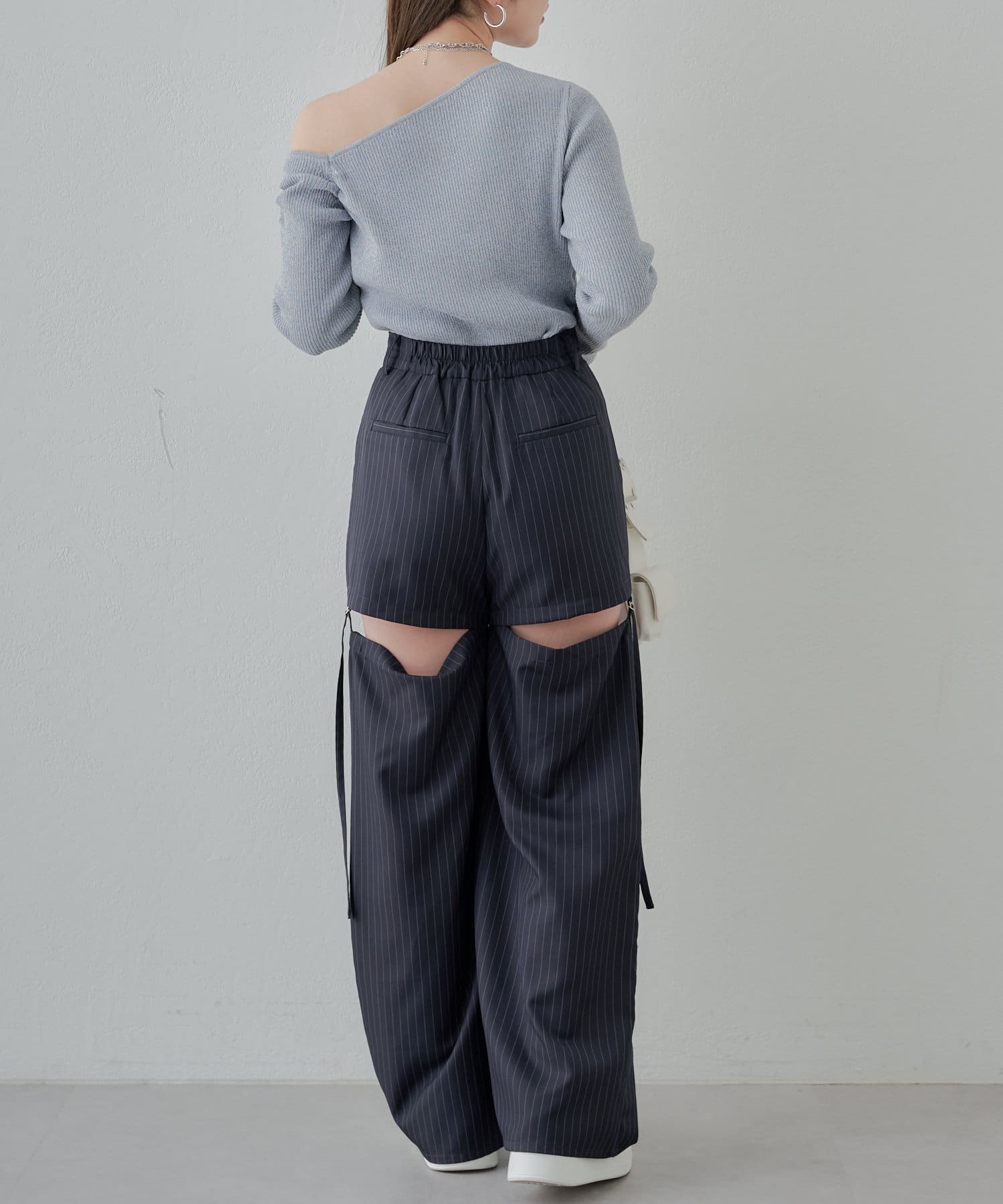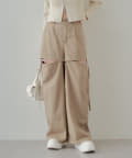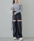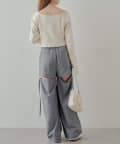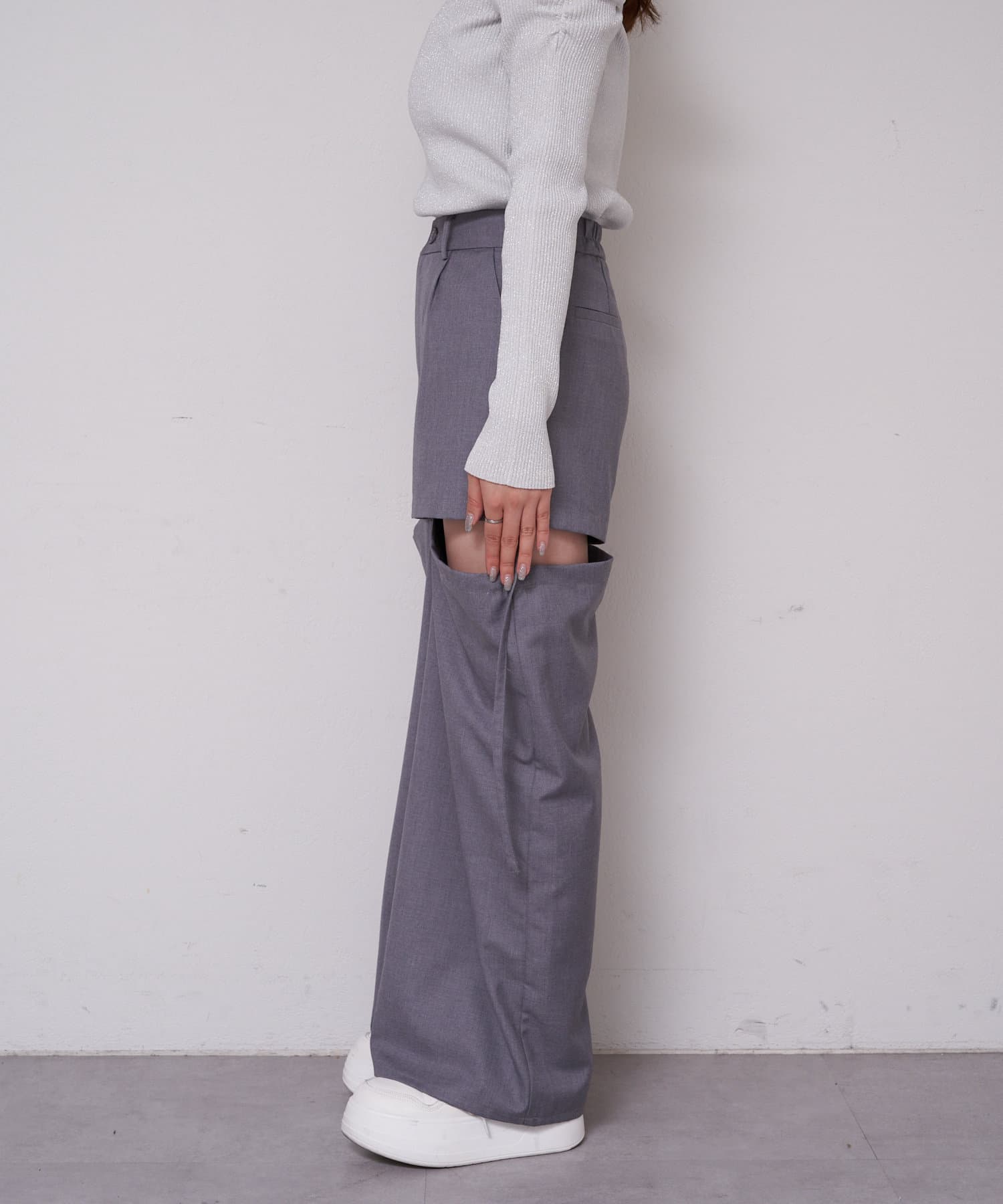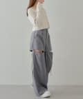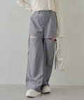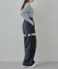 ・サイドのスリットデザインがスラックスでも女性らしく肌見せできるパンツ。