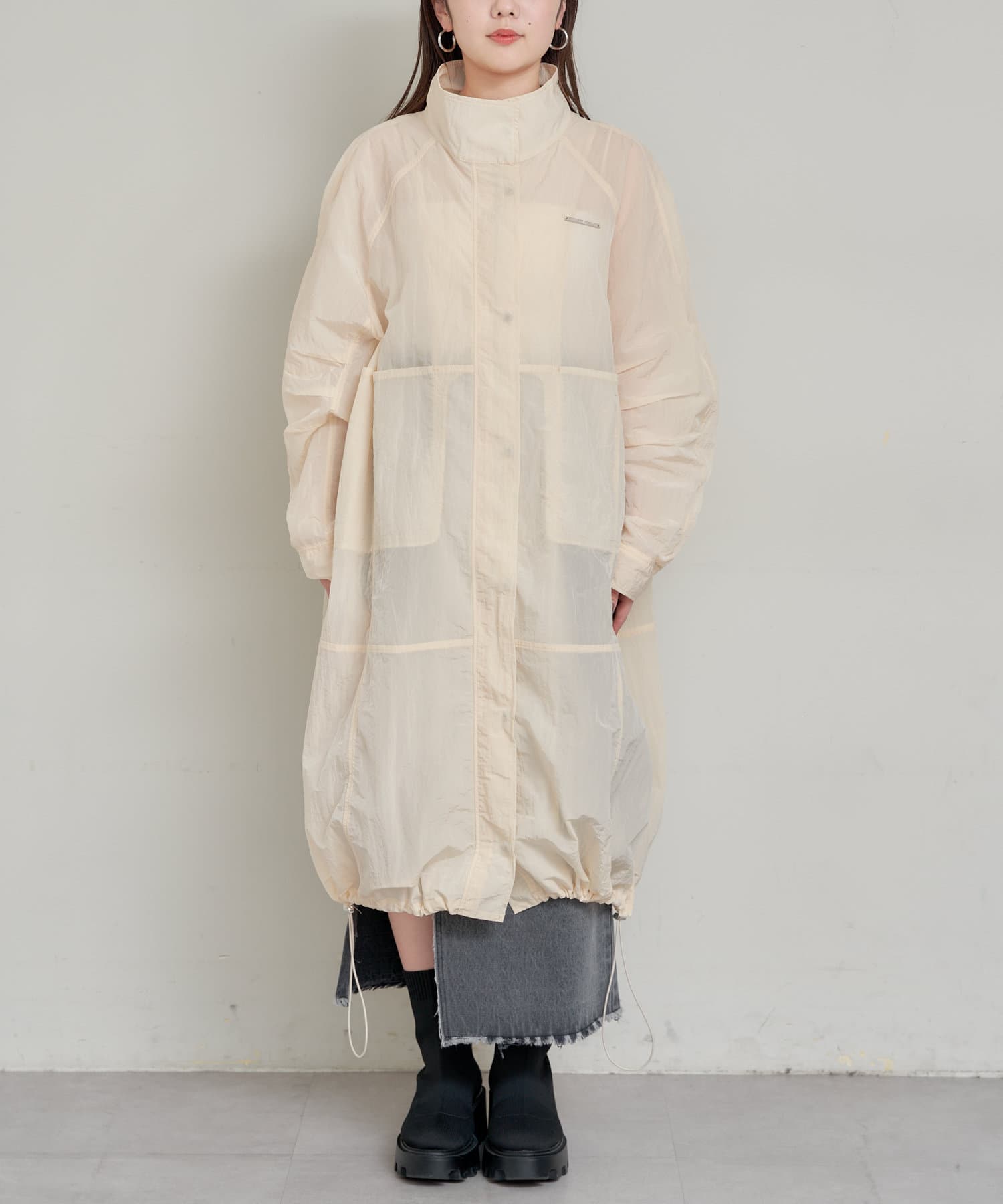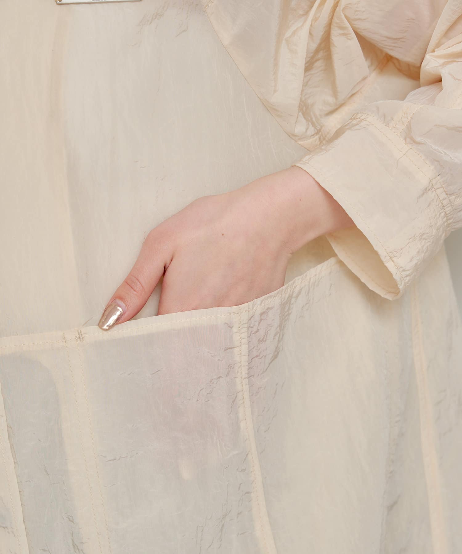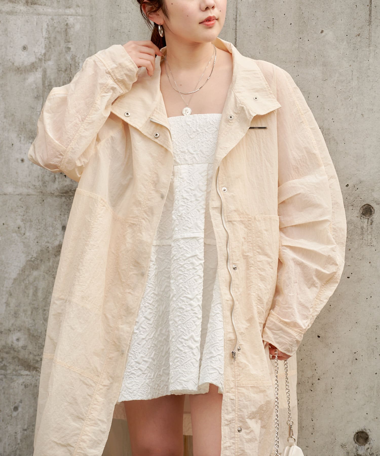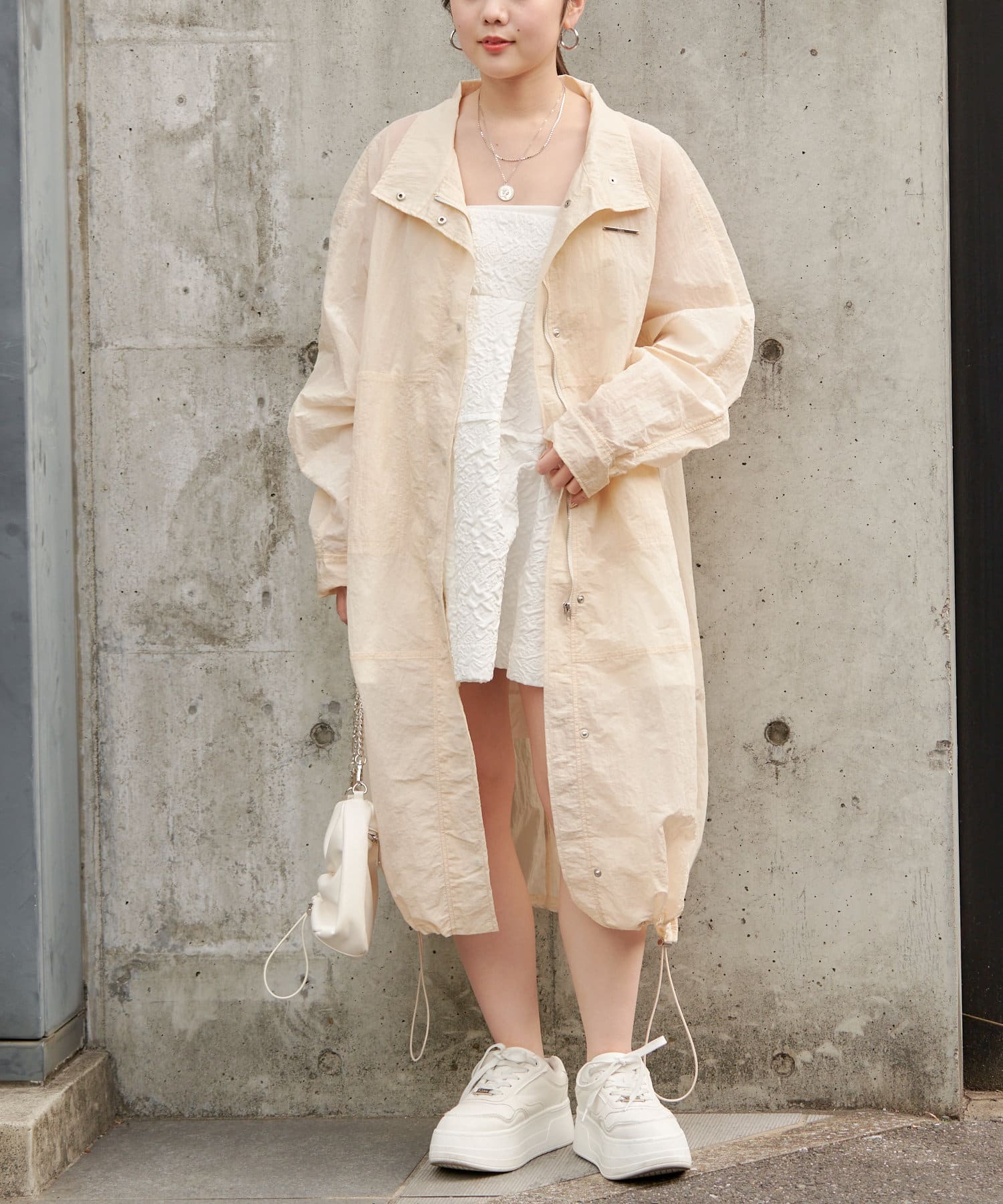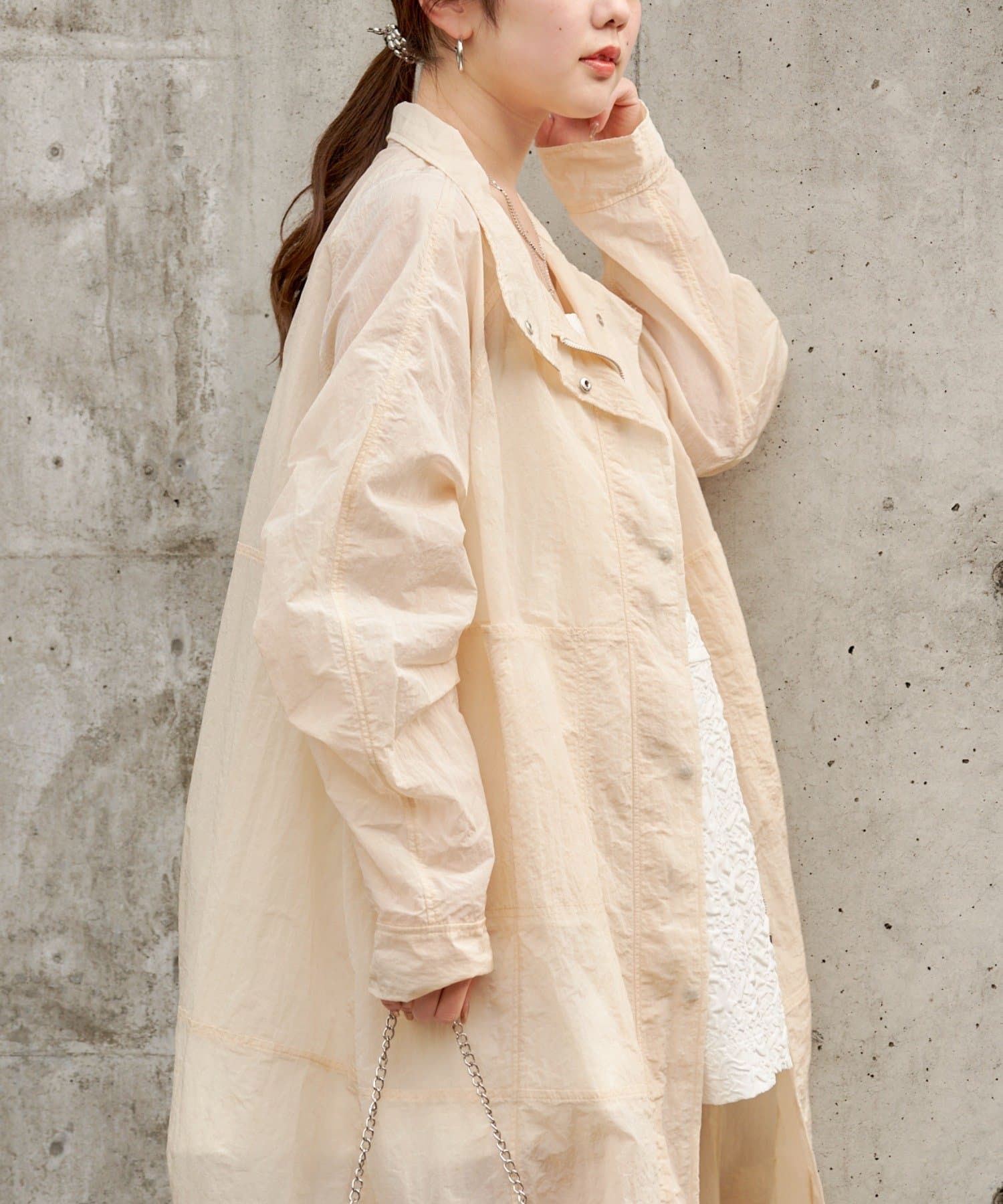 春らしいシアー素材のナイロンコート