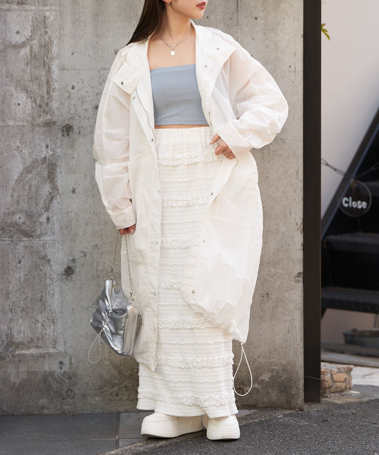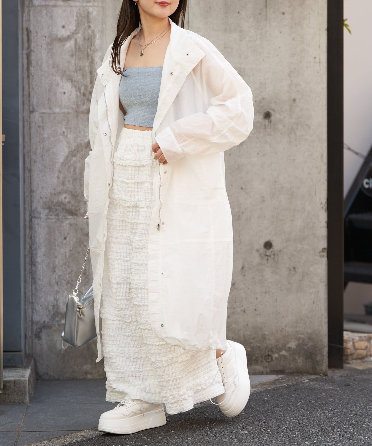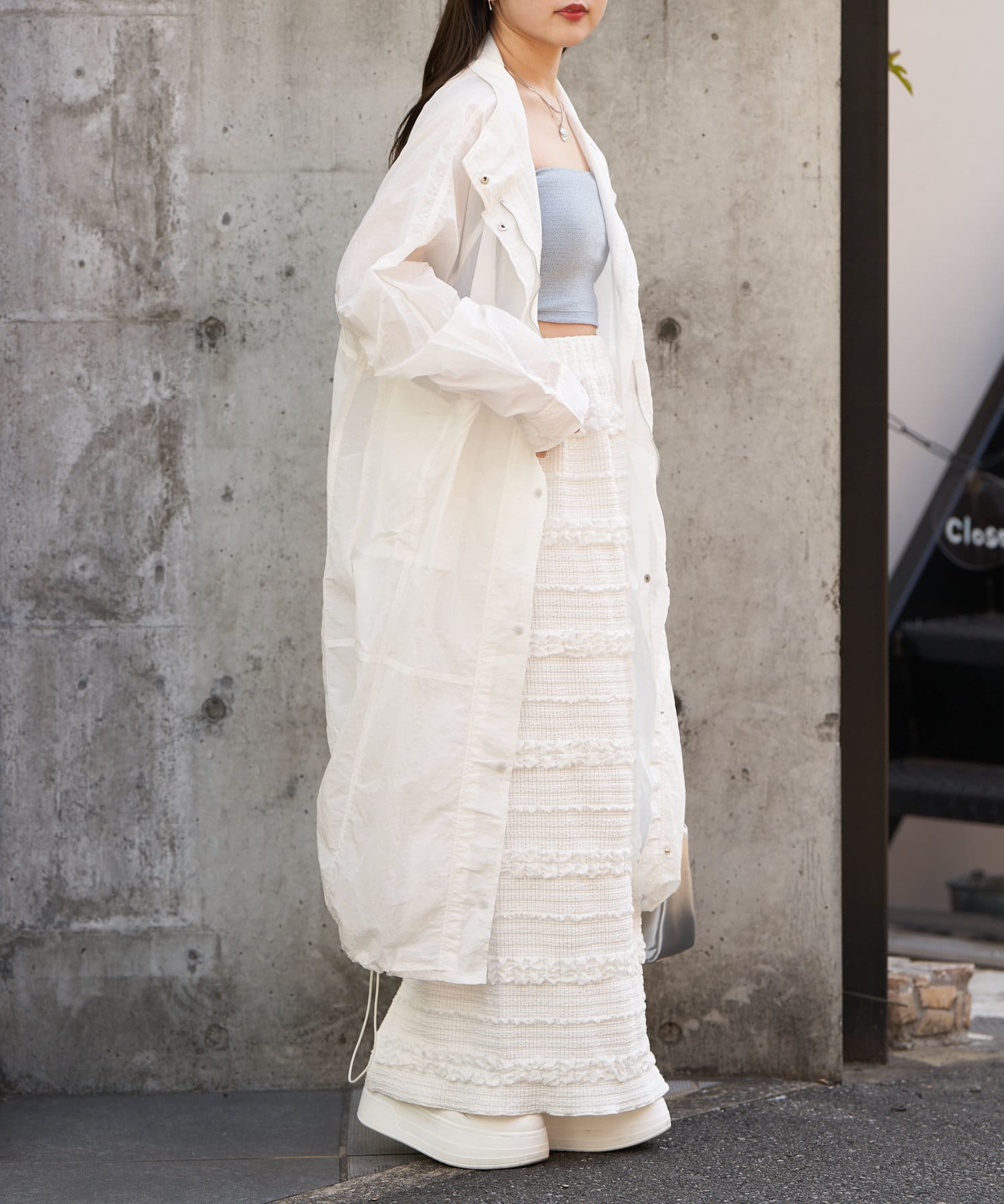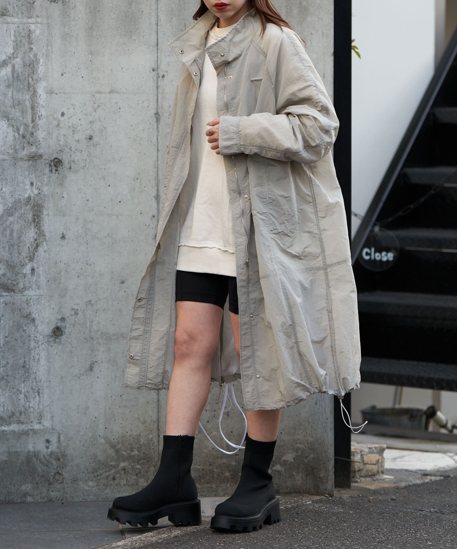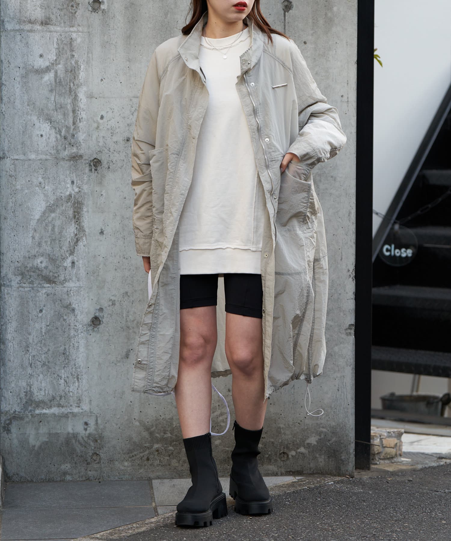 春らしいシアー素材のナイロンコート