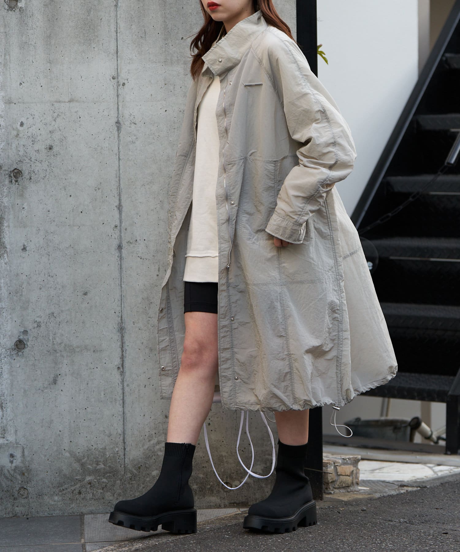 ・裾のドロストデザインでシルエットを変えていただくのもおすすめです。