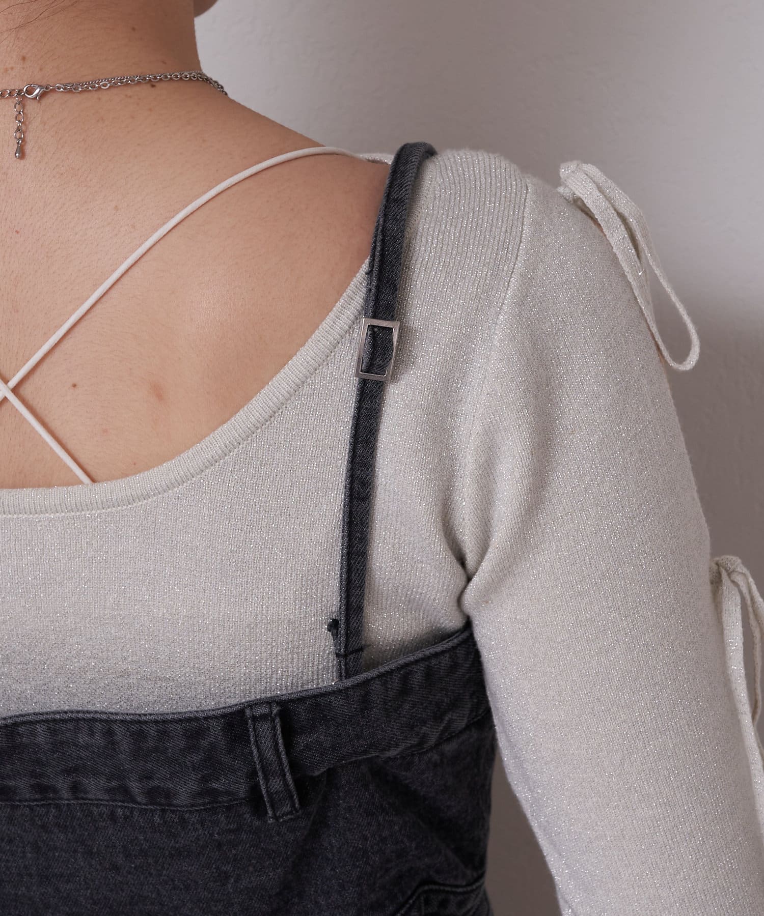 ▶おすすめアイテム:5分袖ピグメントオフショルリブT、5分袖ワンショルラメニット