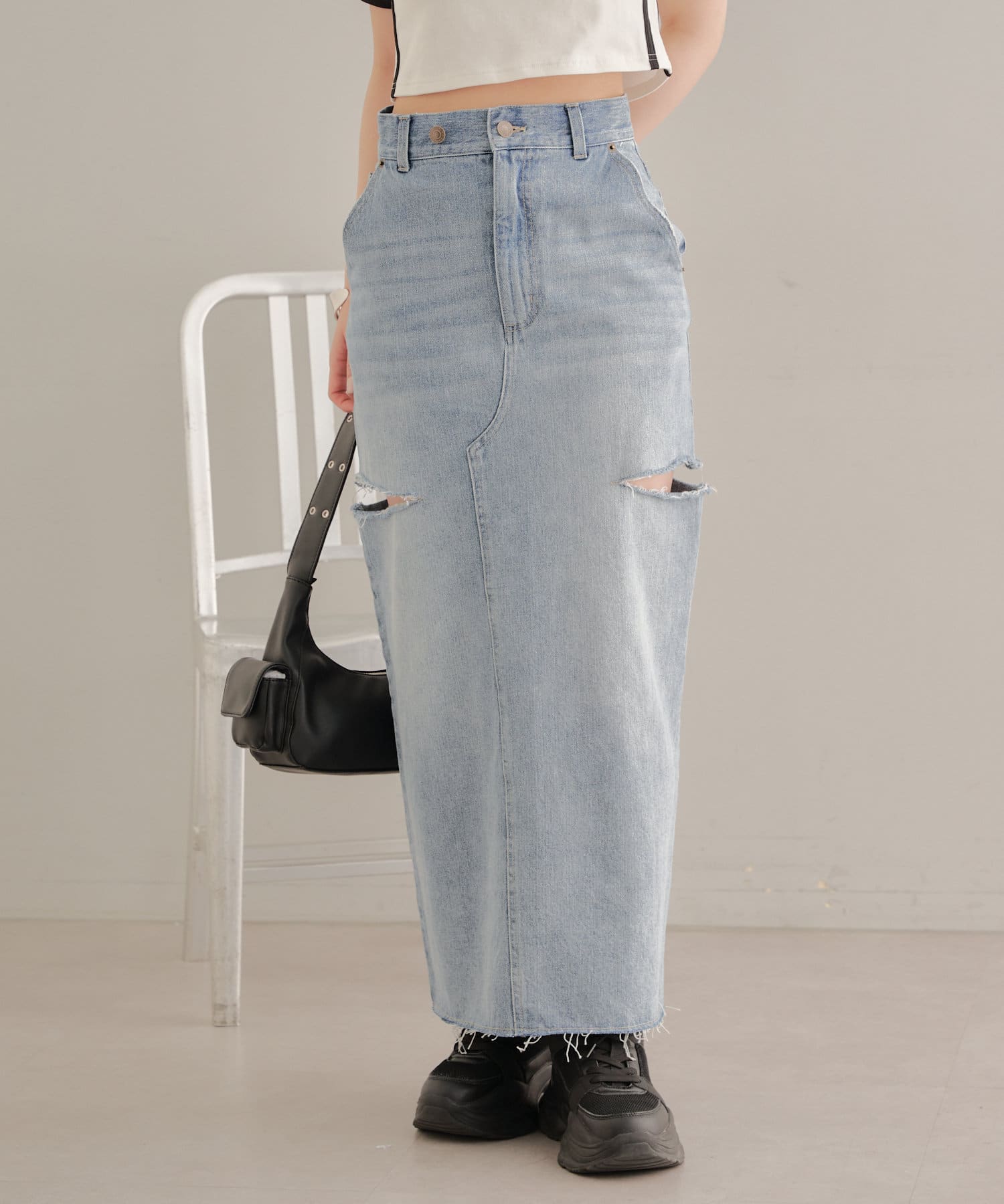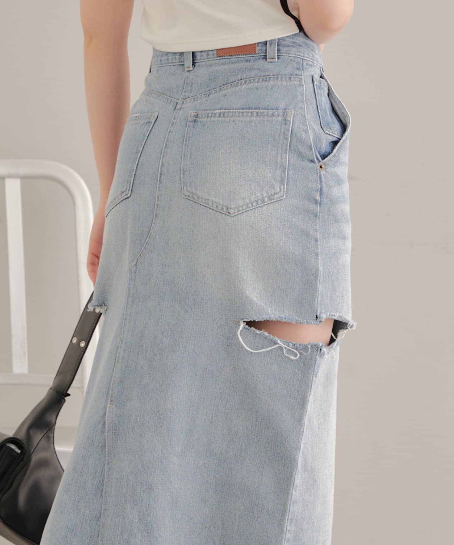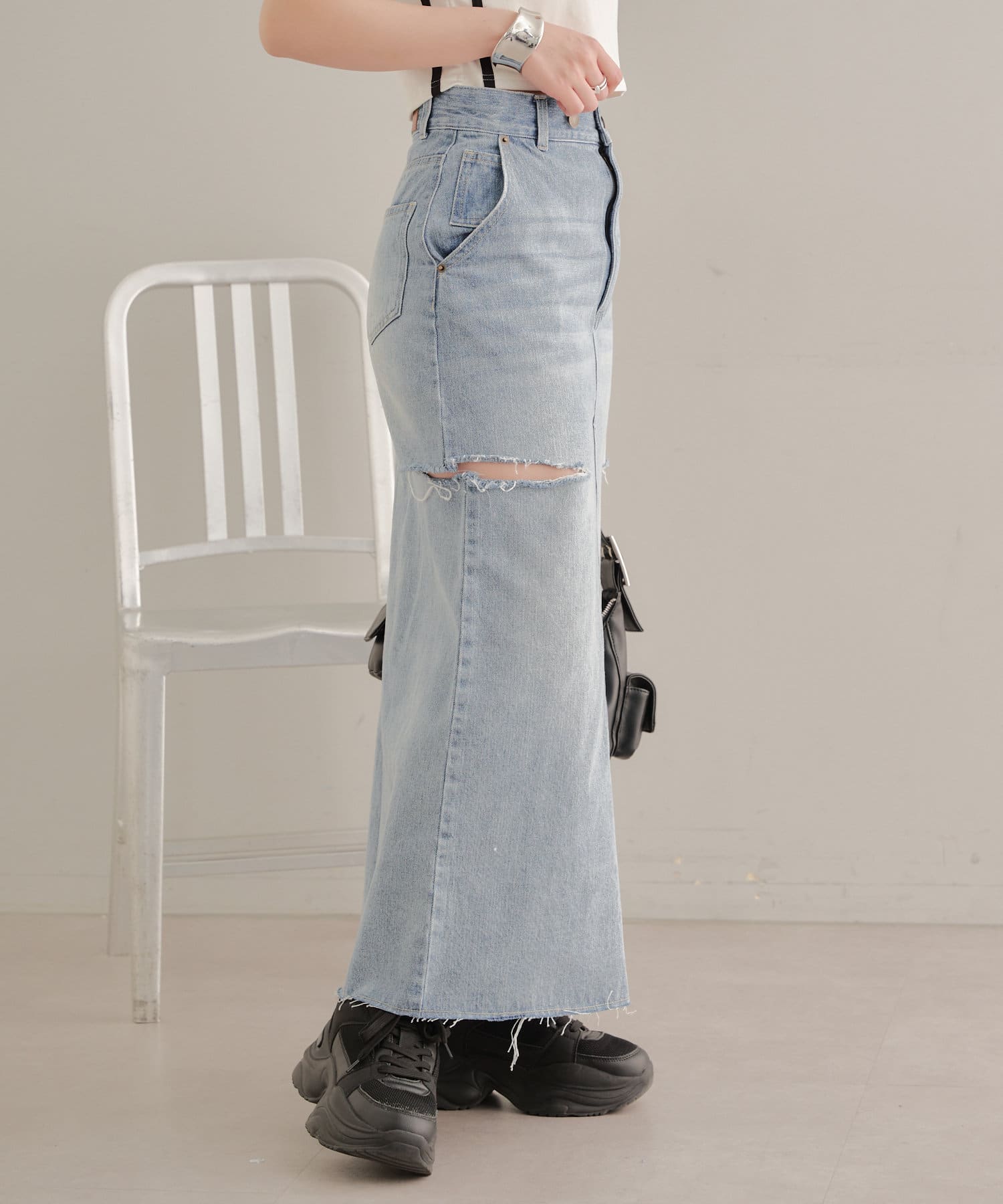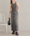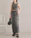 サイドスリットデザインが新鮮なデニムスカート