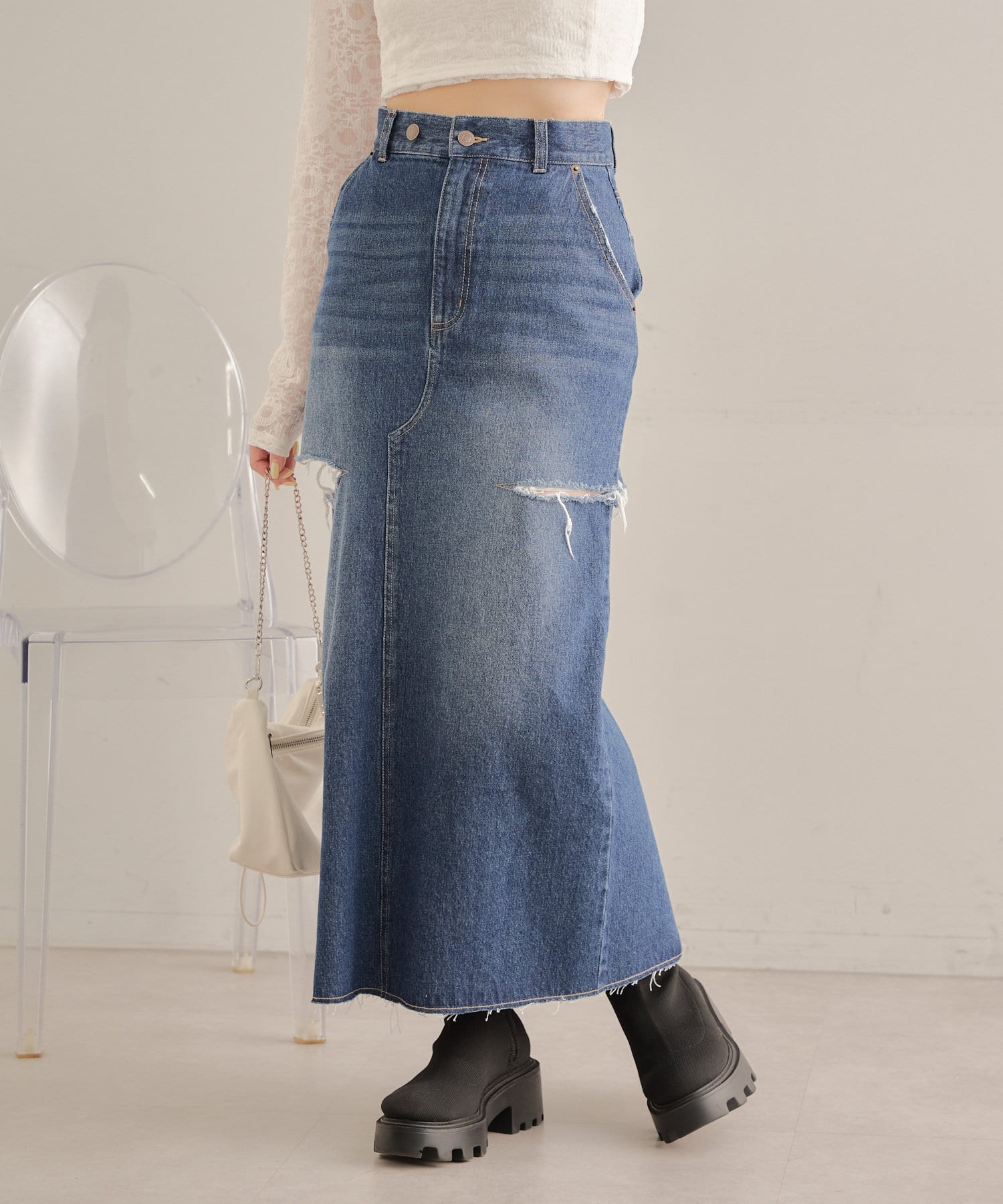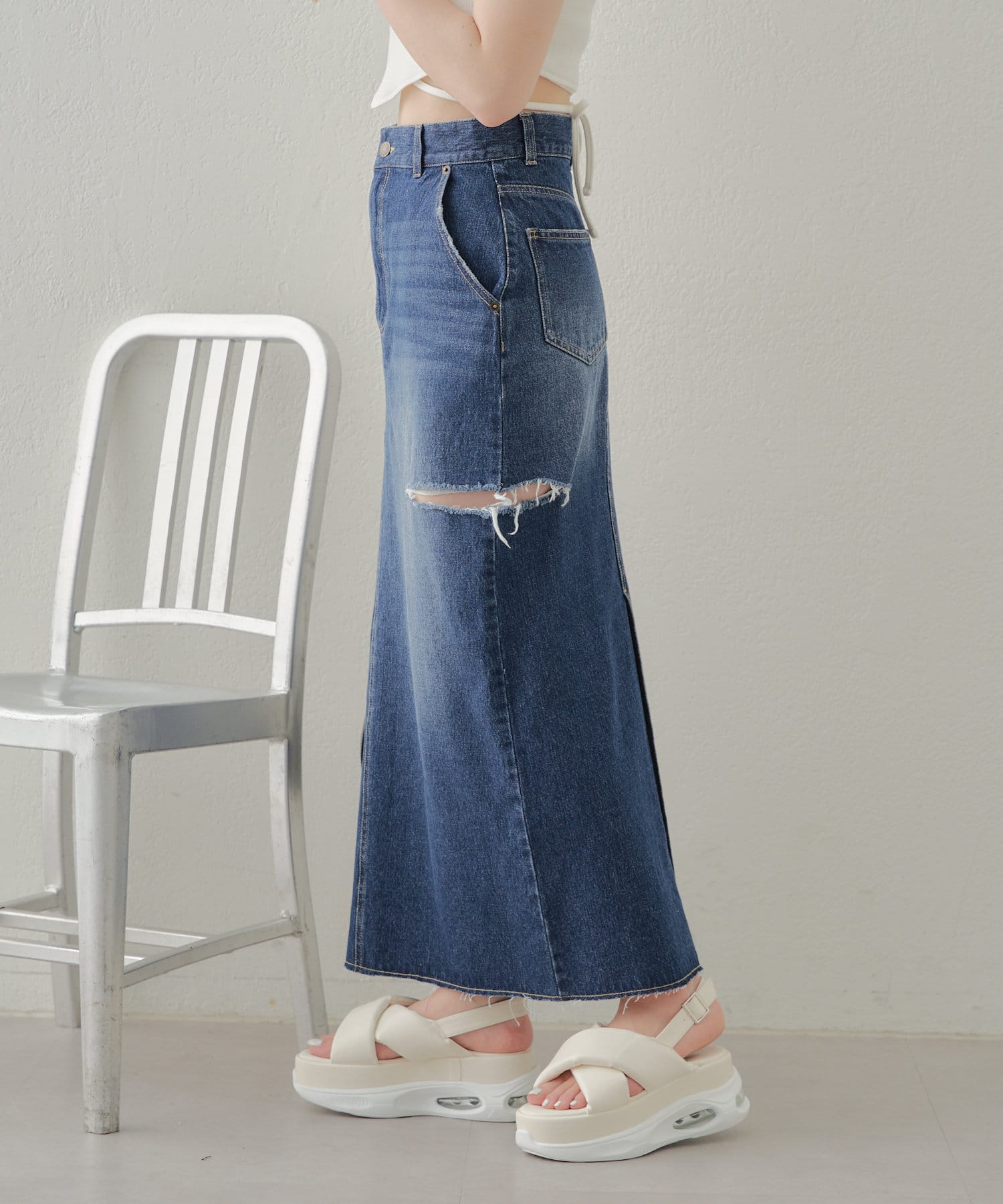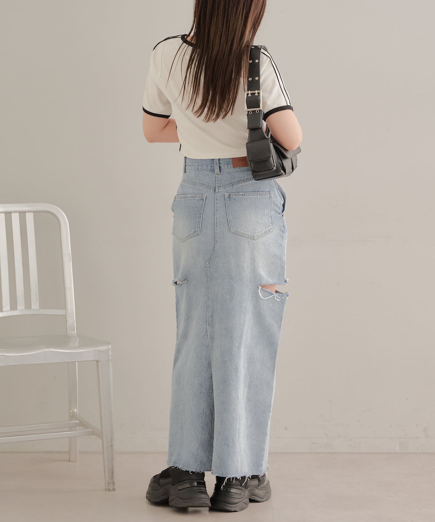 【Chico】サイドスリットデニムタイトスカート