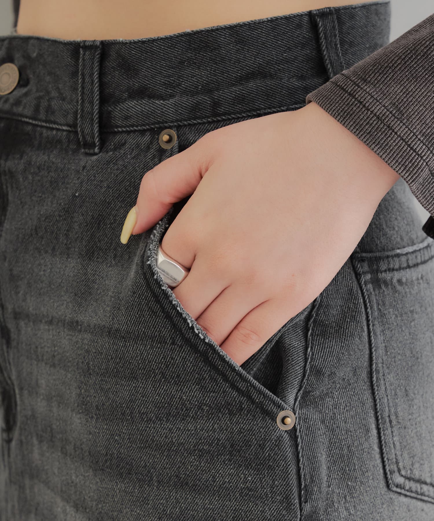 ・デニム生地なのでどんな素材とでも相性が良く着回し力抜群◎