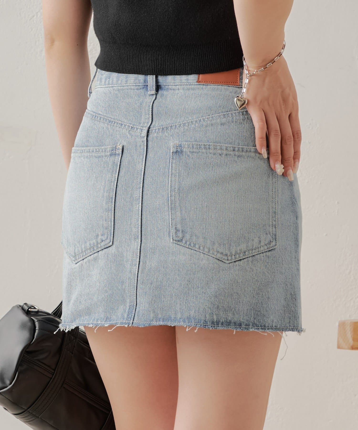 アシメデザインがおしゃれ見えするデニムミニスカート