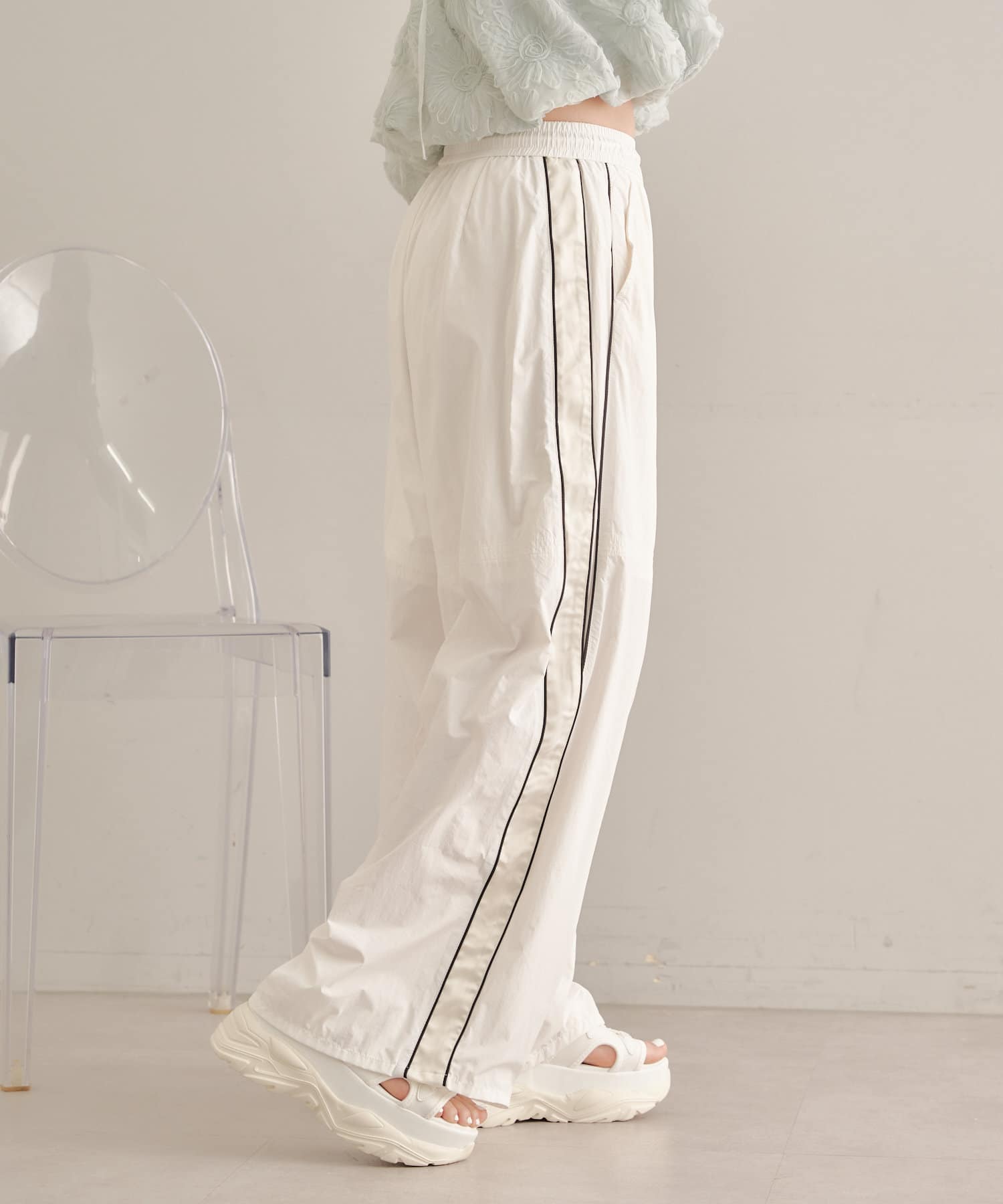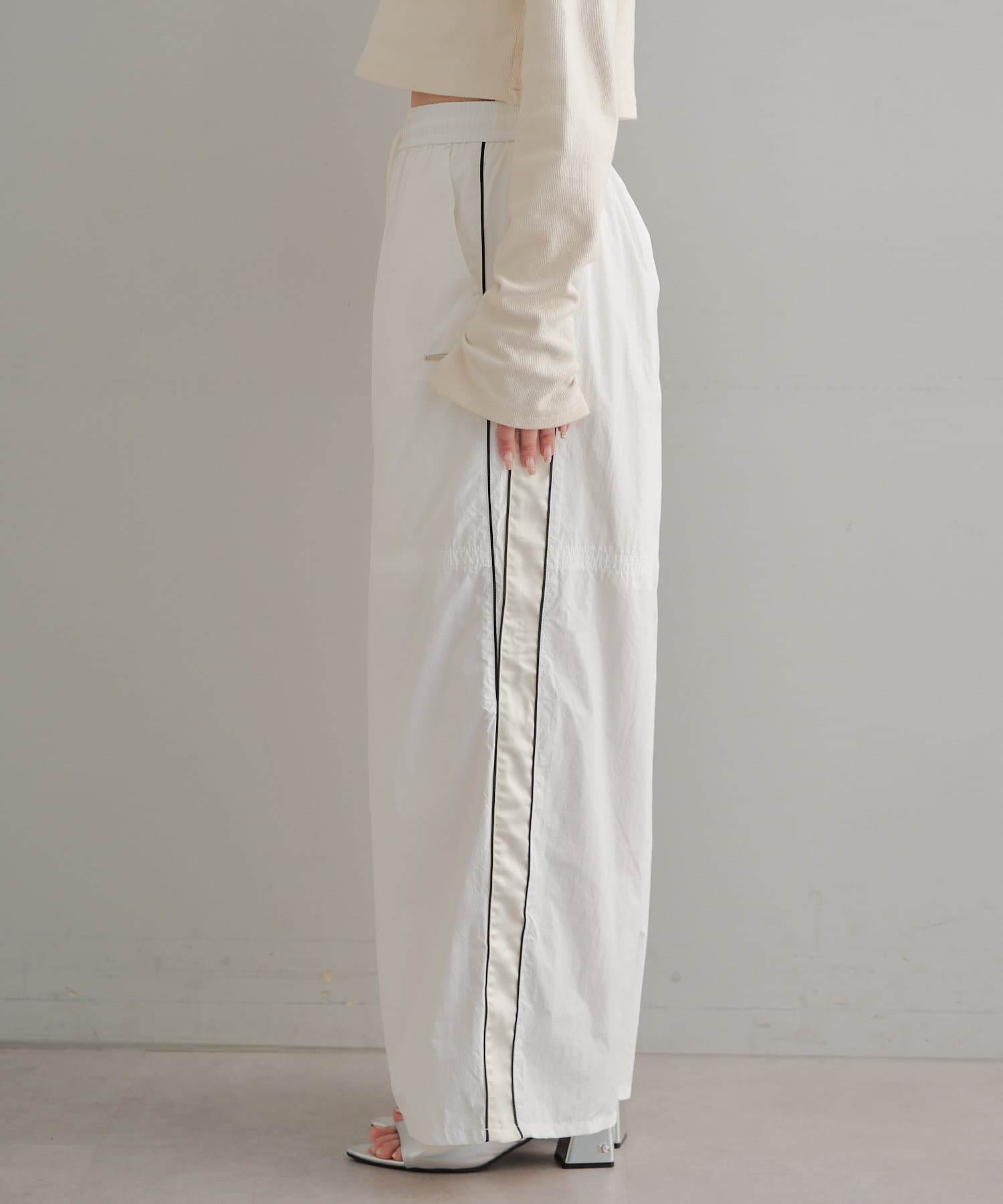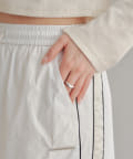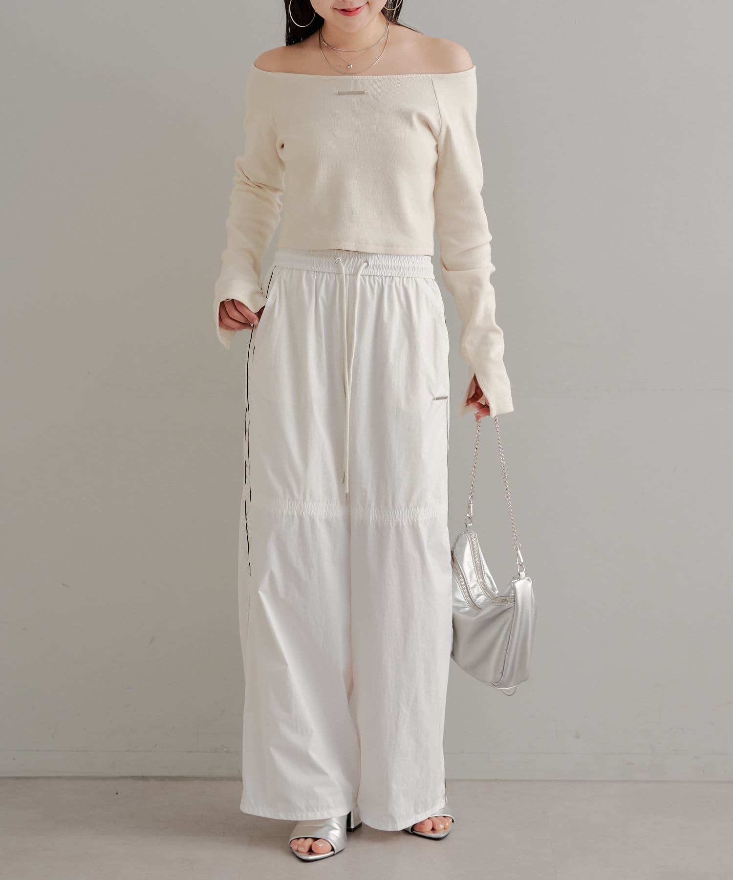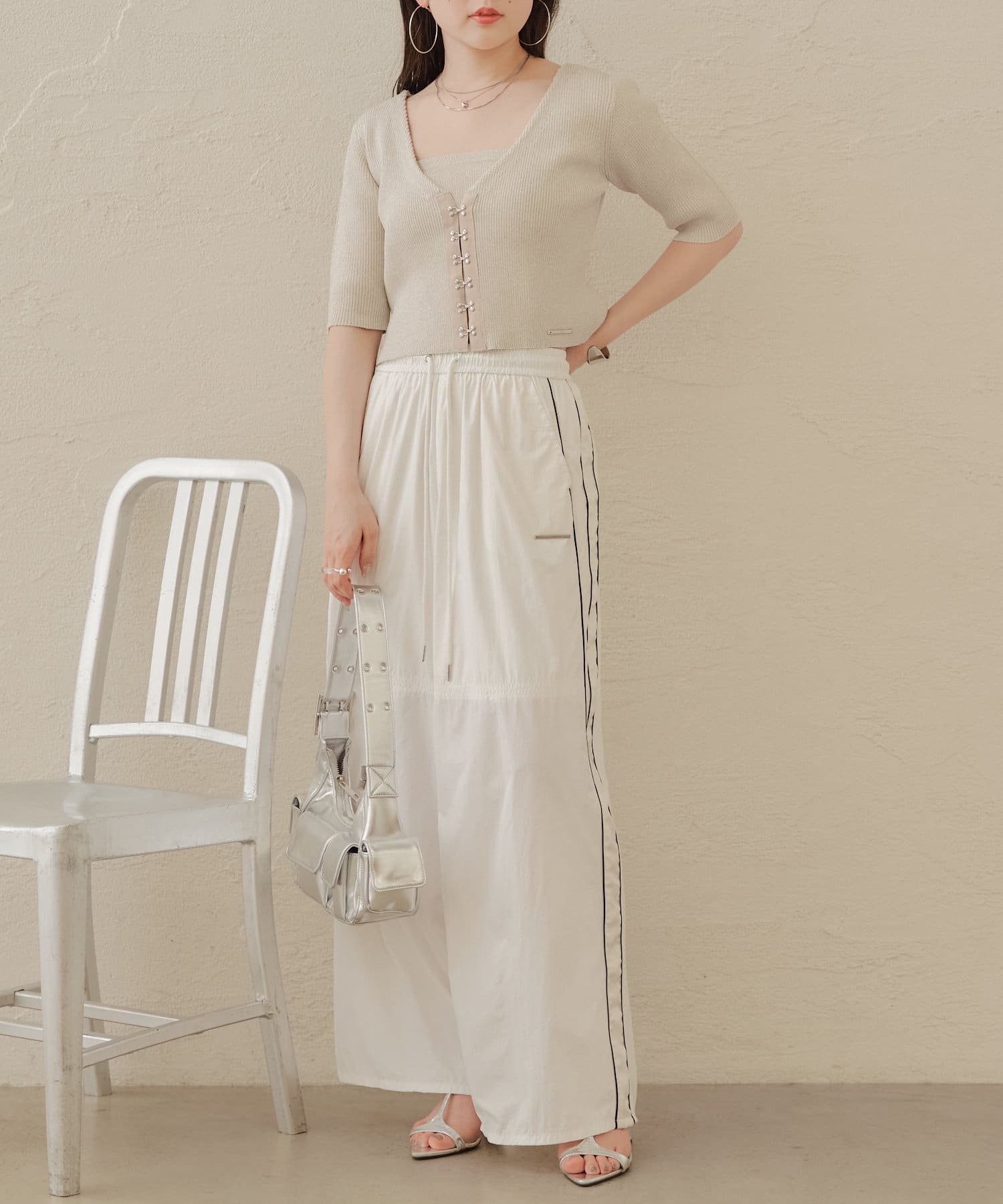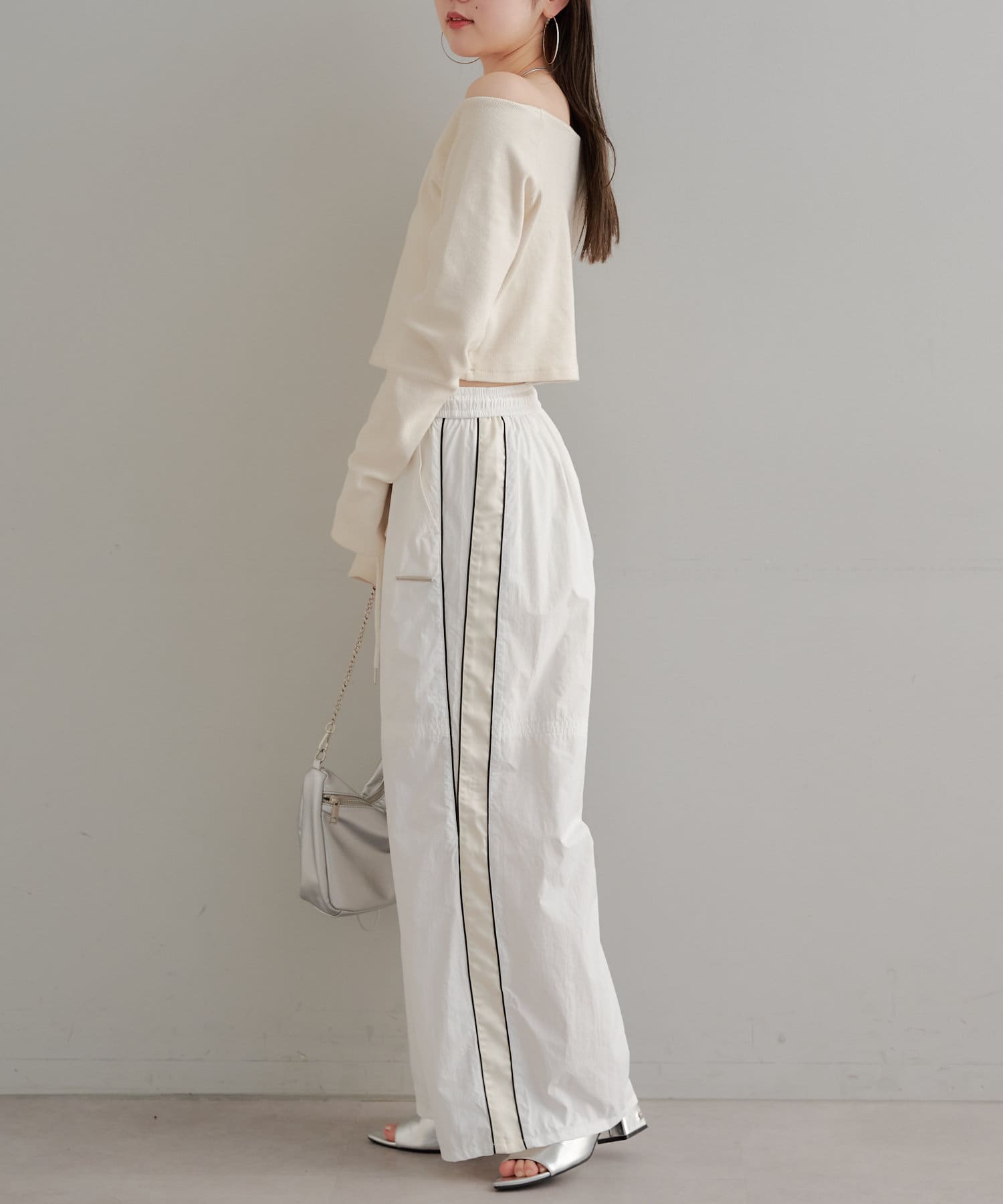・足元は厚底スニーカーでがっつりスポーティーに着るも良し、ヒール合わせで女ぽく仕上げても良し。