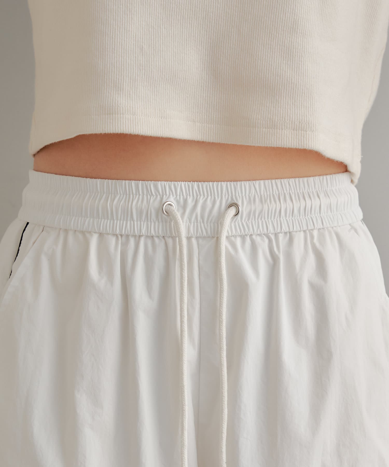 ・コンパクトトップスと合わせるとトレンドの韓国ぽコーデに。
