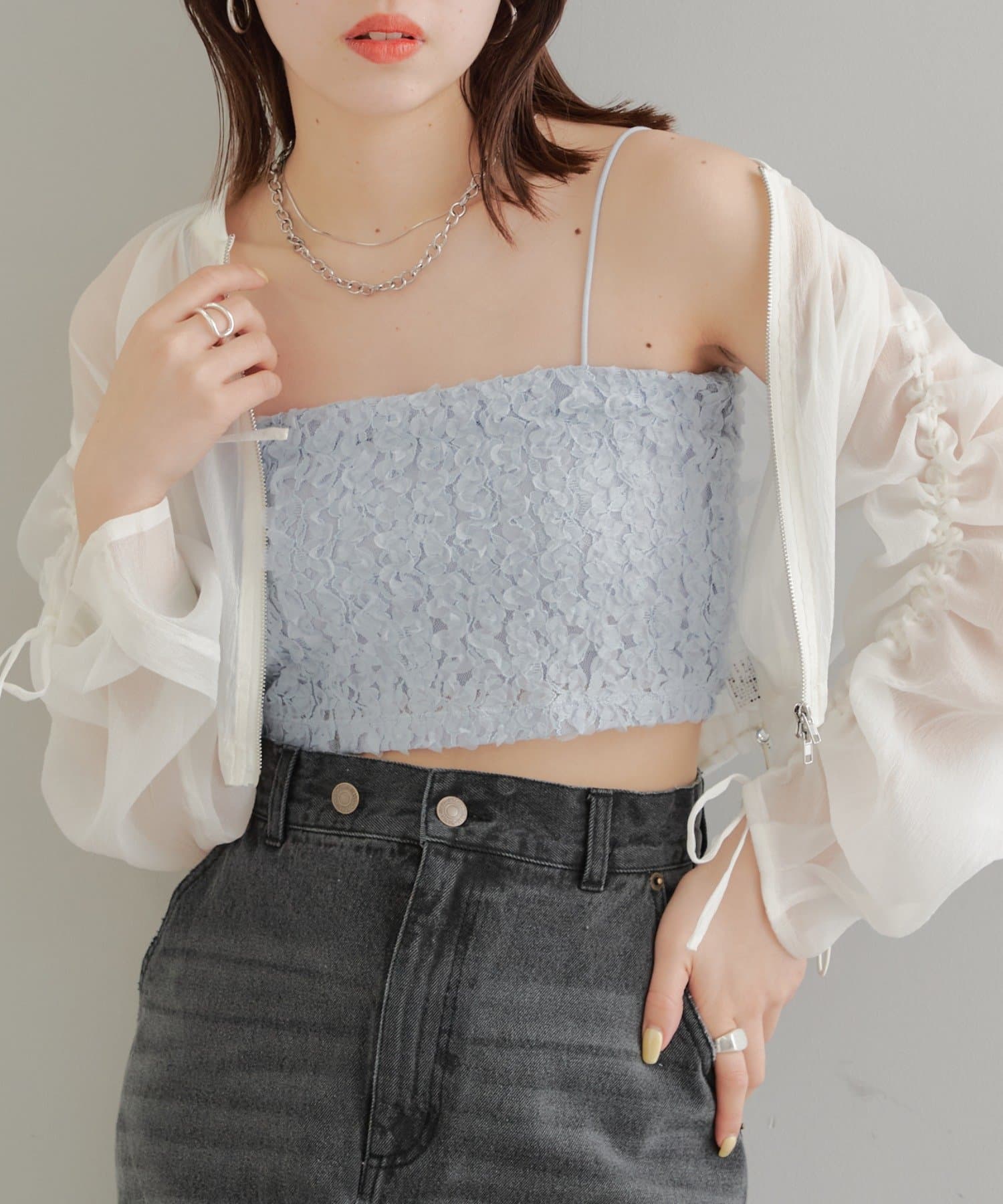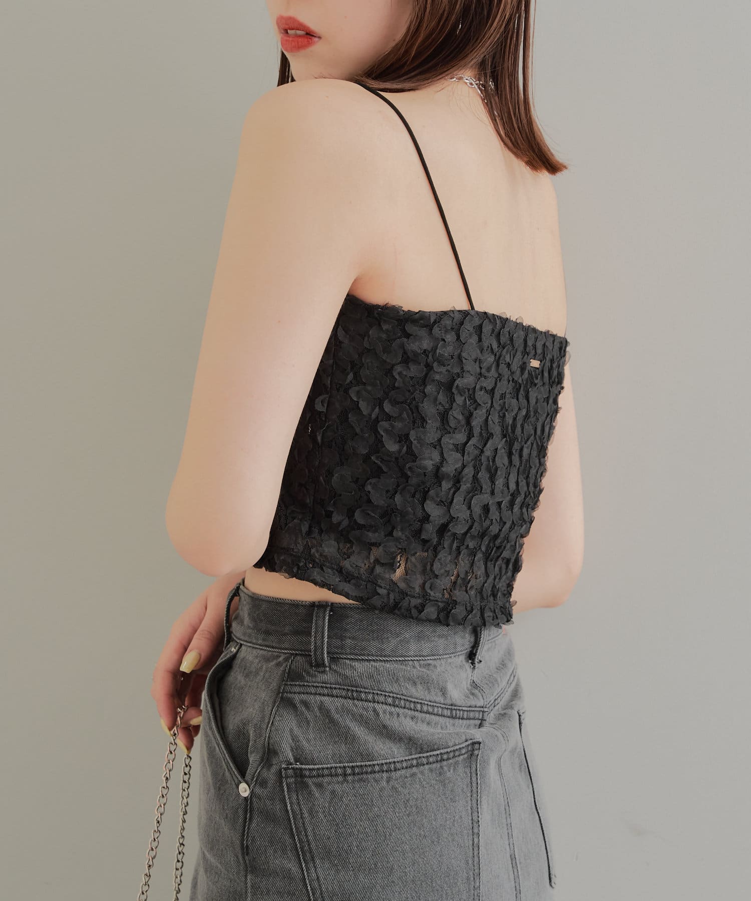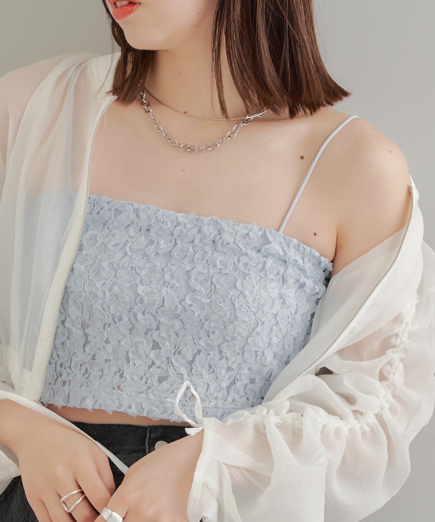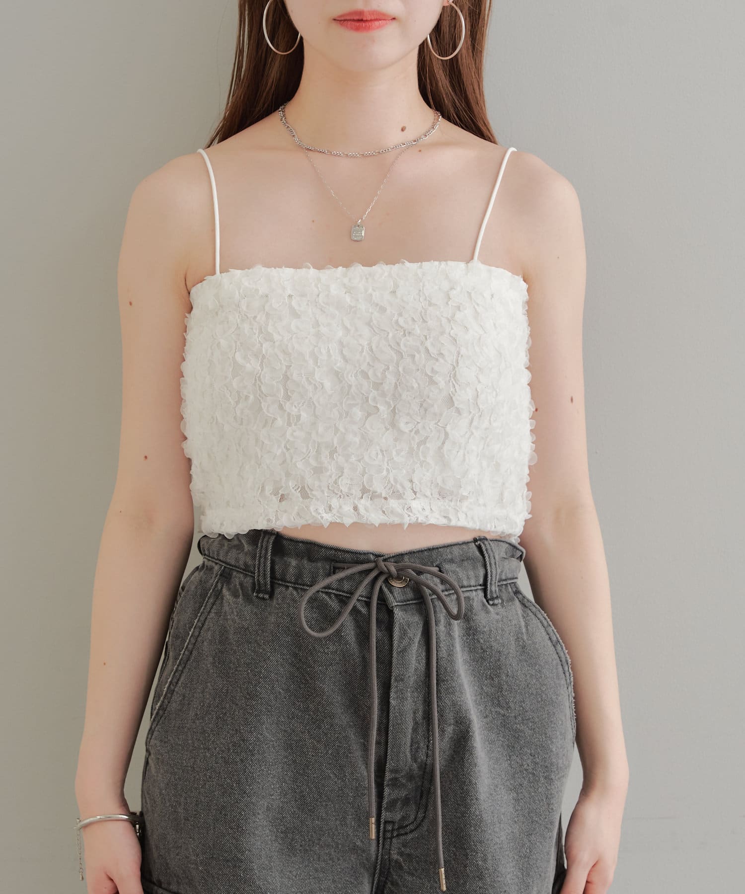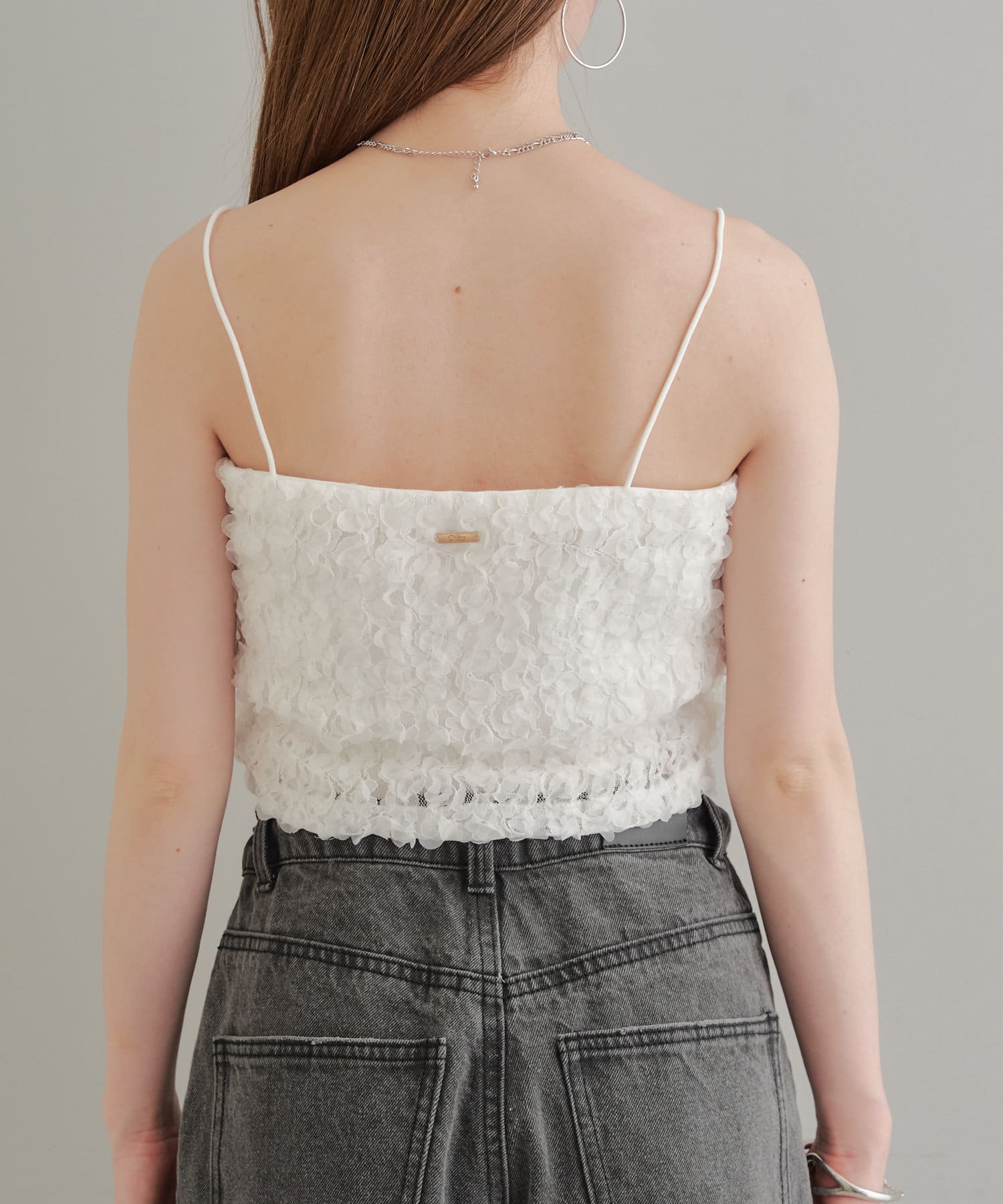 素材感が目を惹くレースビスチェ