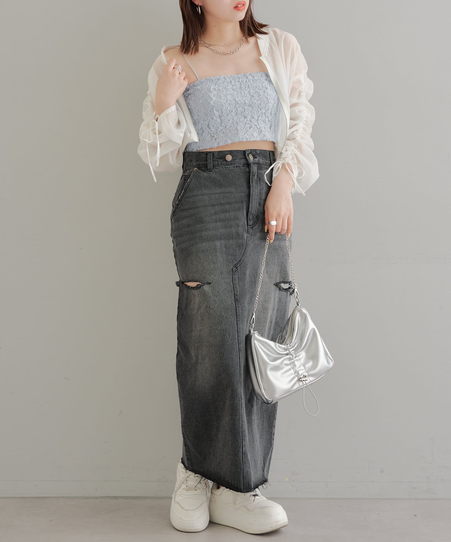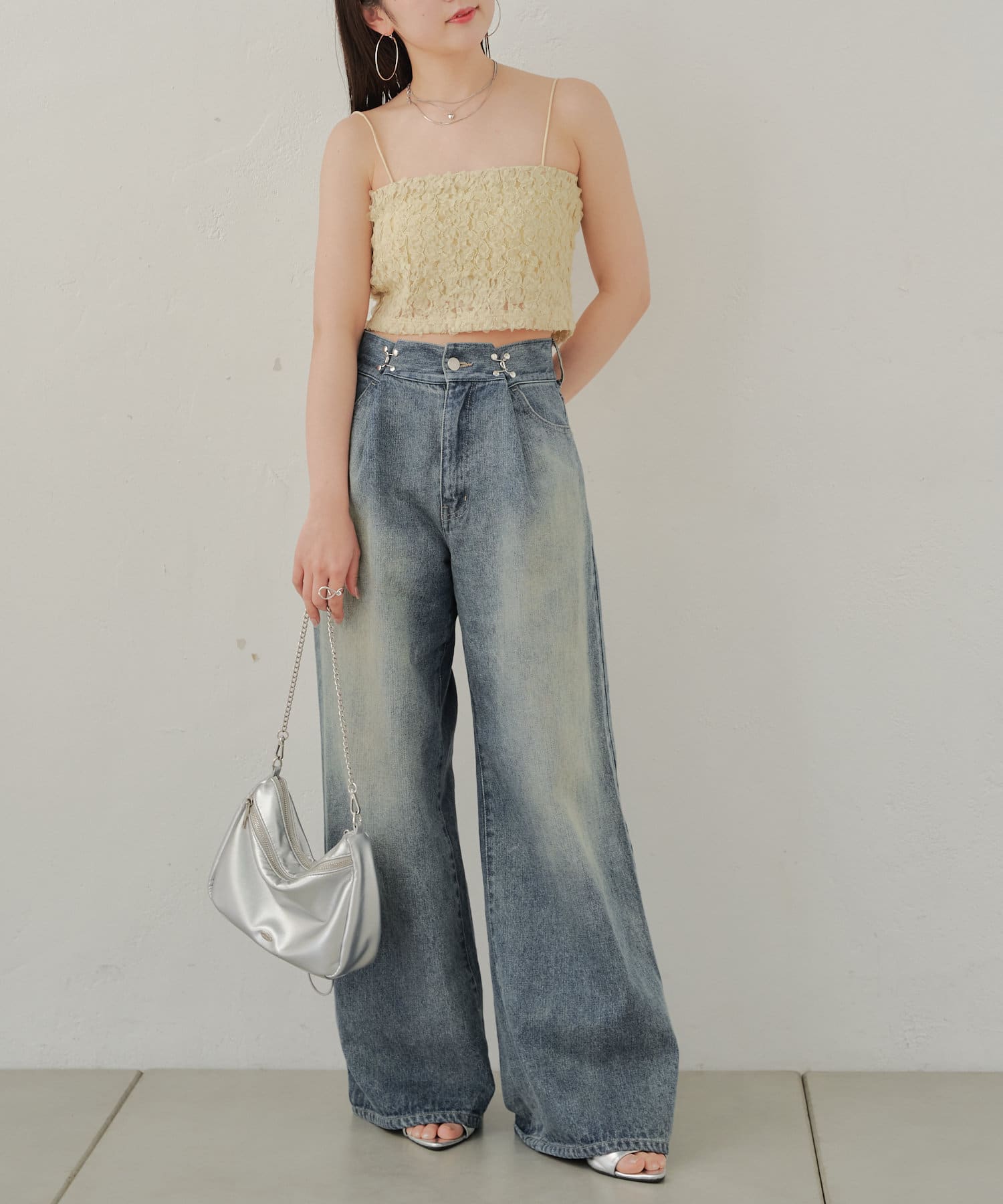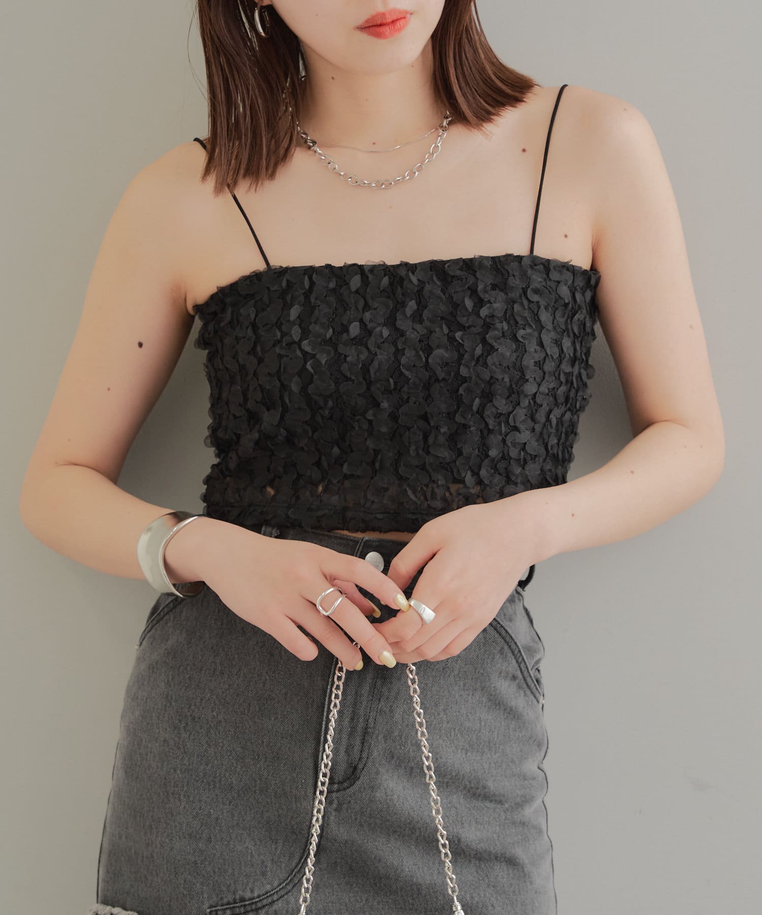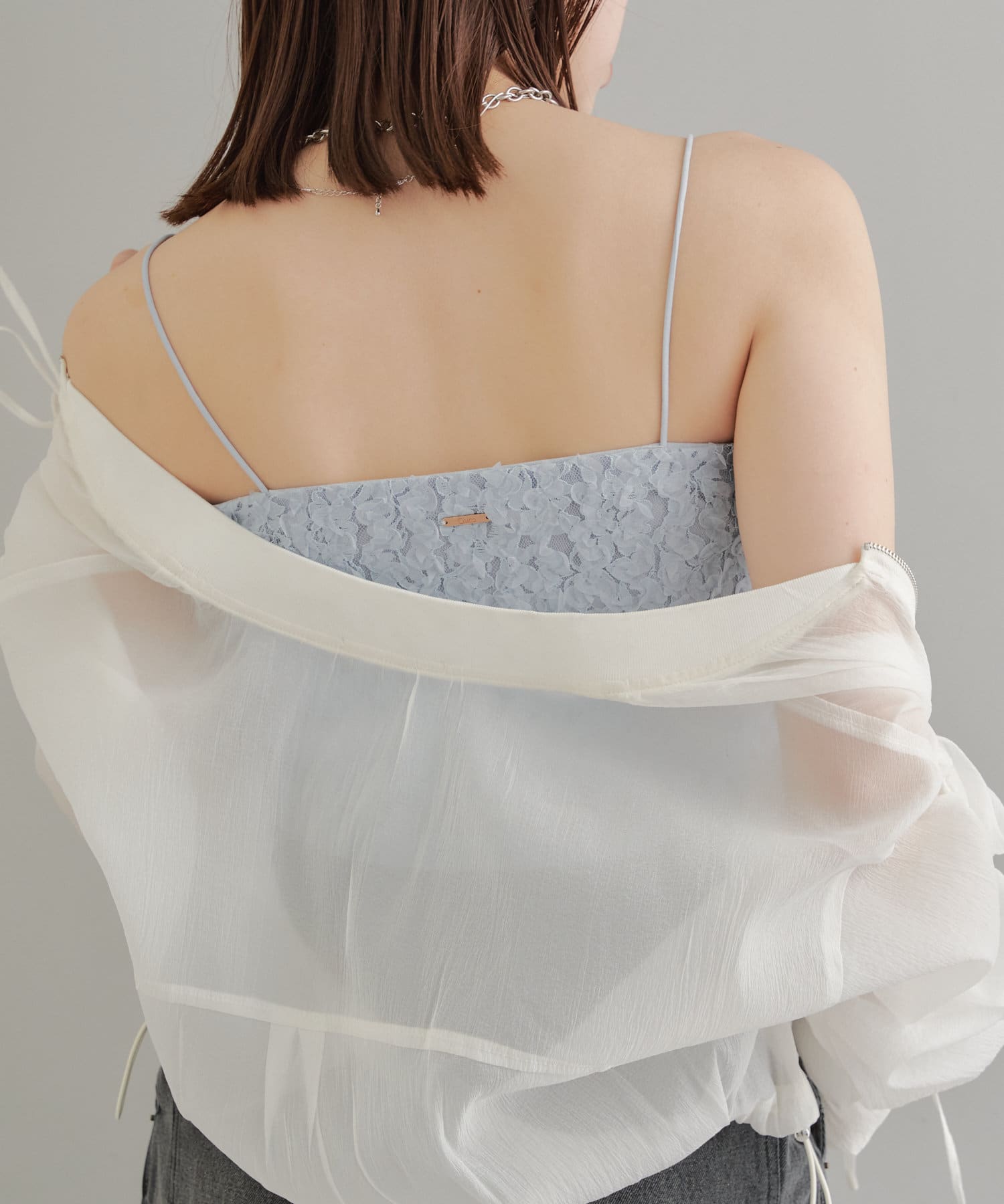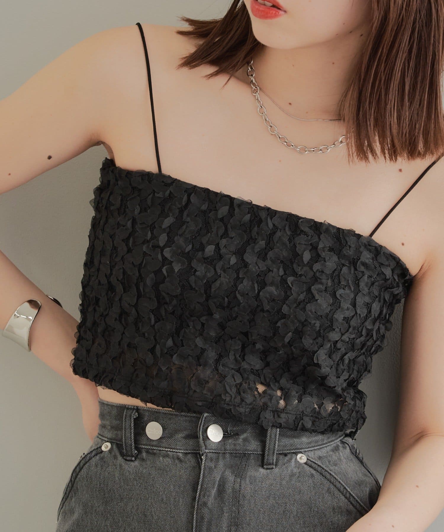 素材感が目を惹くレースビスチェ