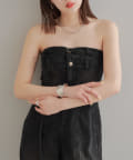 ・胸元が開くので存在感のあるピアスや2連などの存在感のあるネックレスをつけると顔周りが華やかに◎