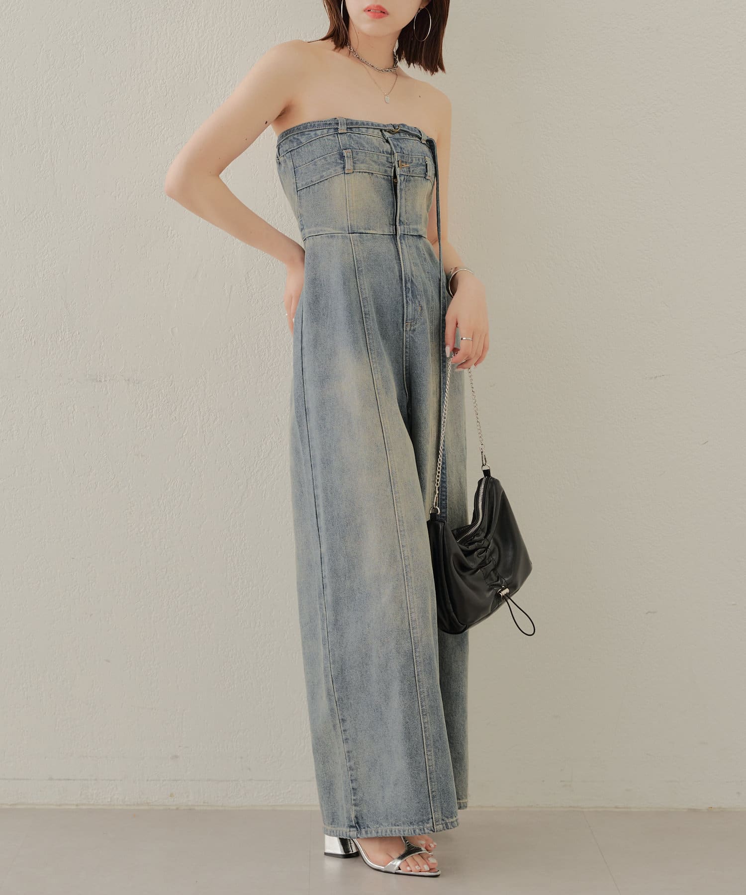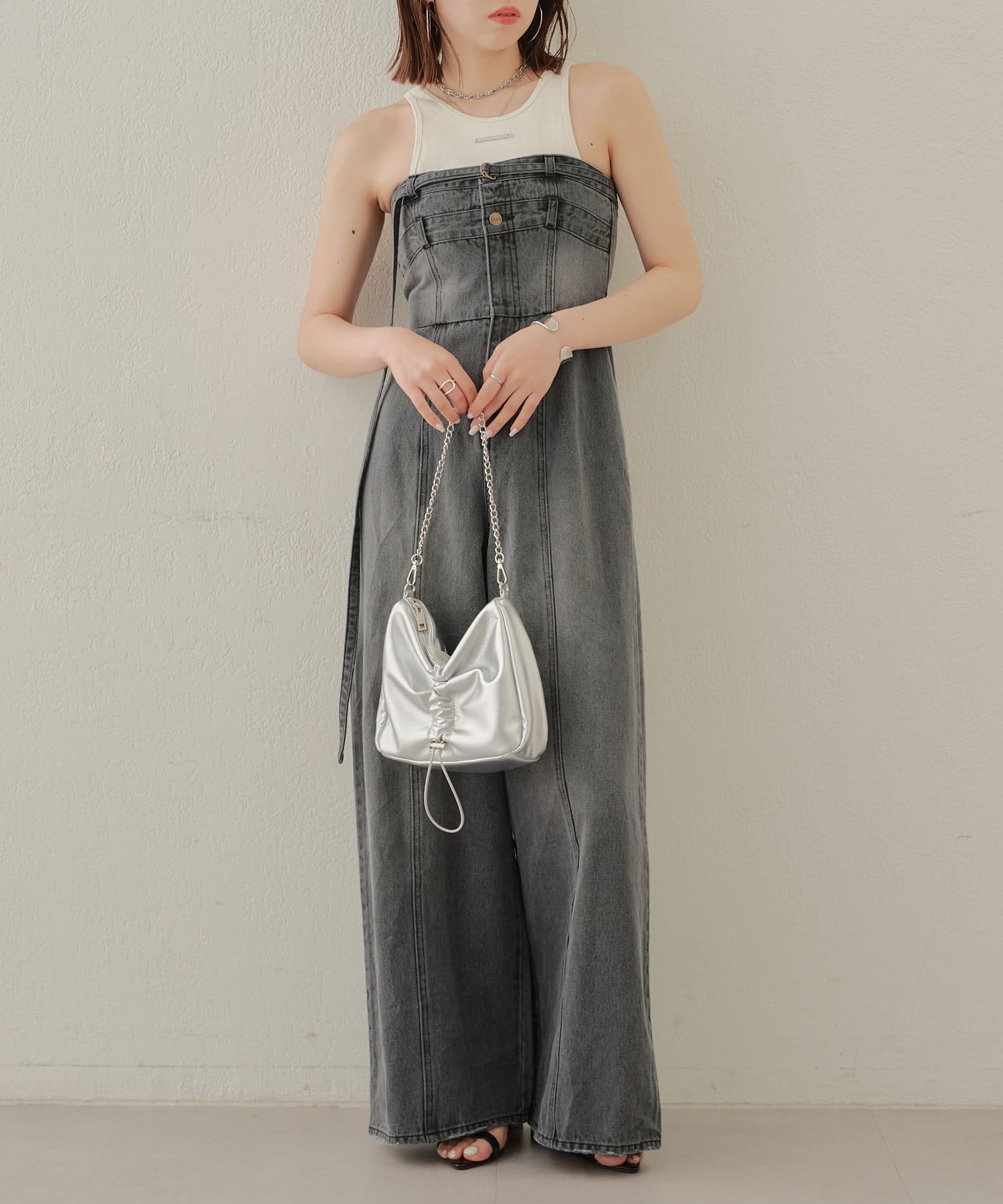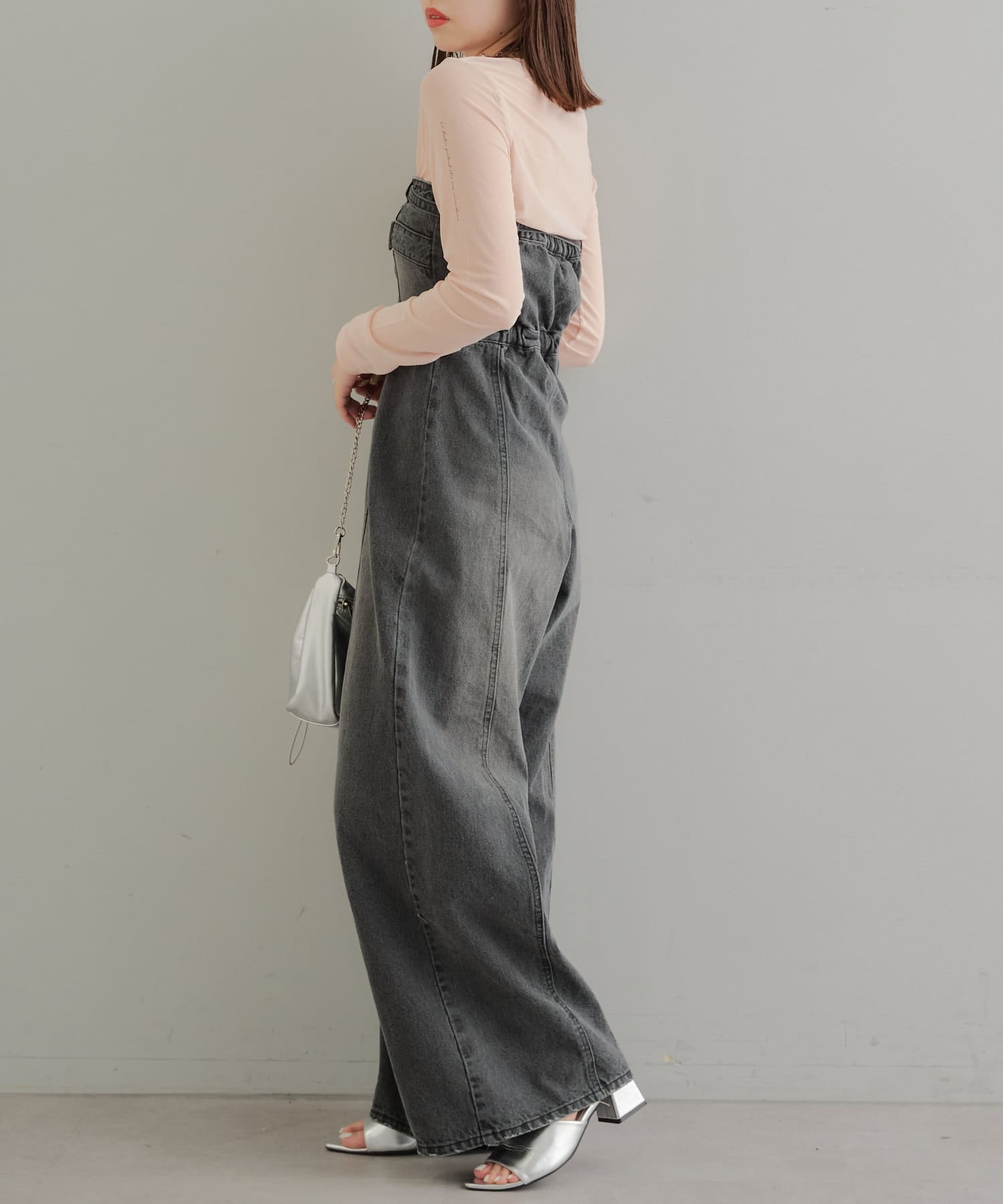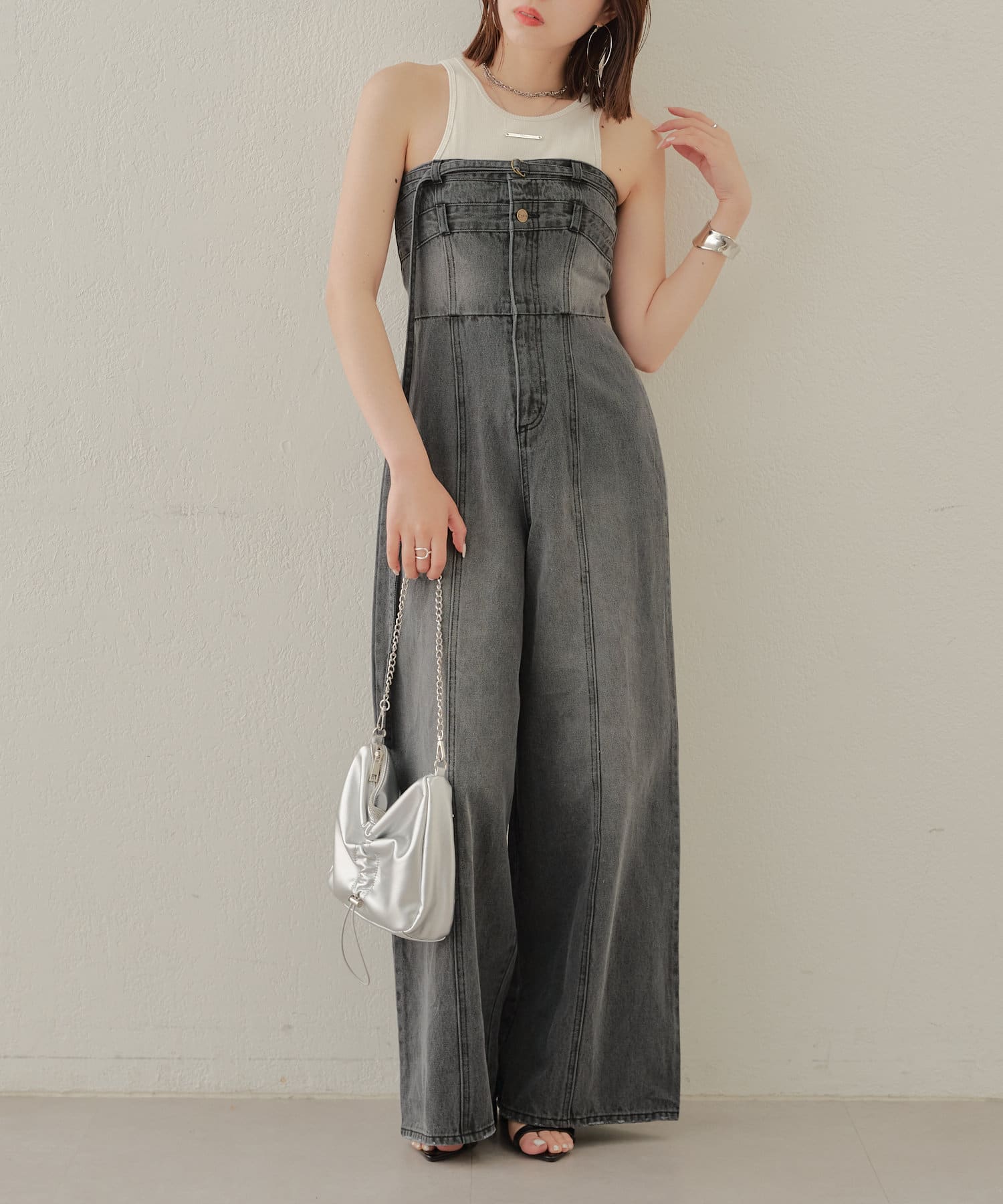 ・コンビネゾンは縦のシルエットが強調されてスタイル効果抜群。