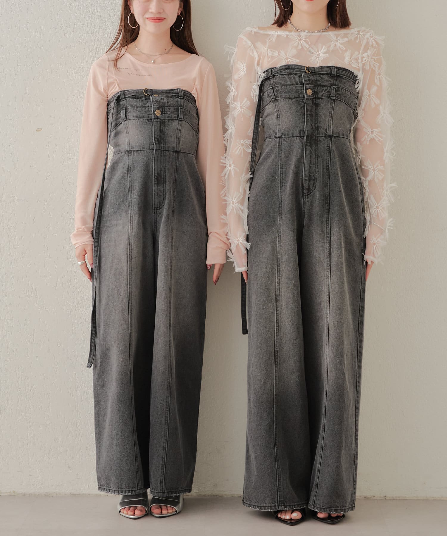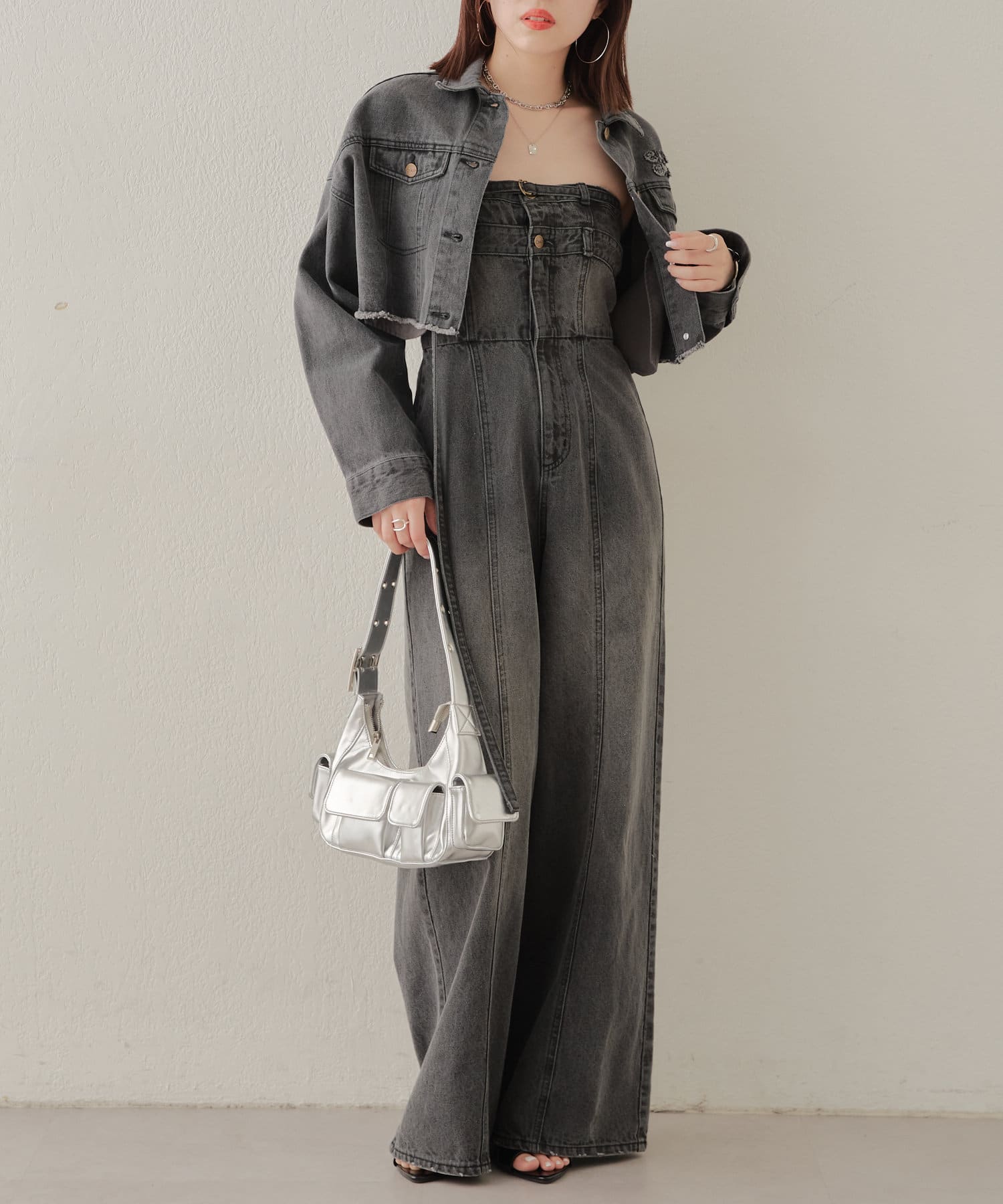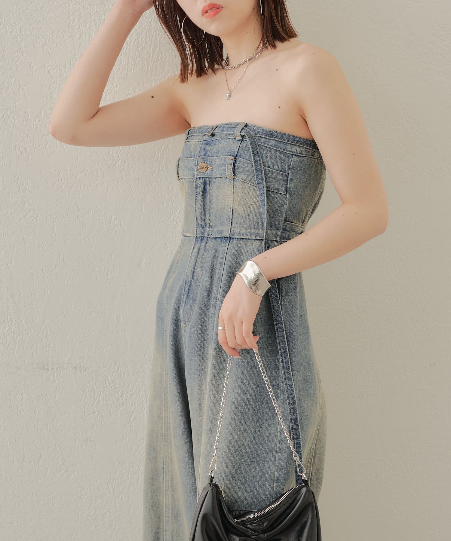 ・コンビネゾンは縦のシルエットが強調されてスタイル効果抜群。