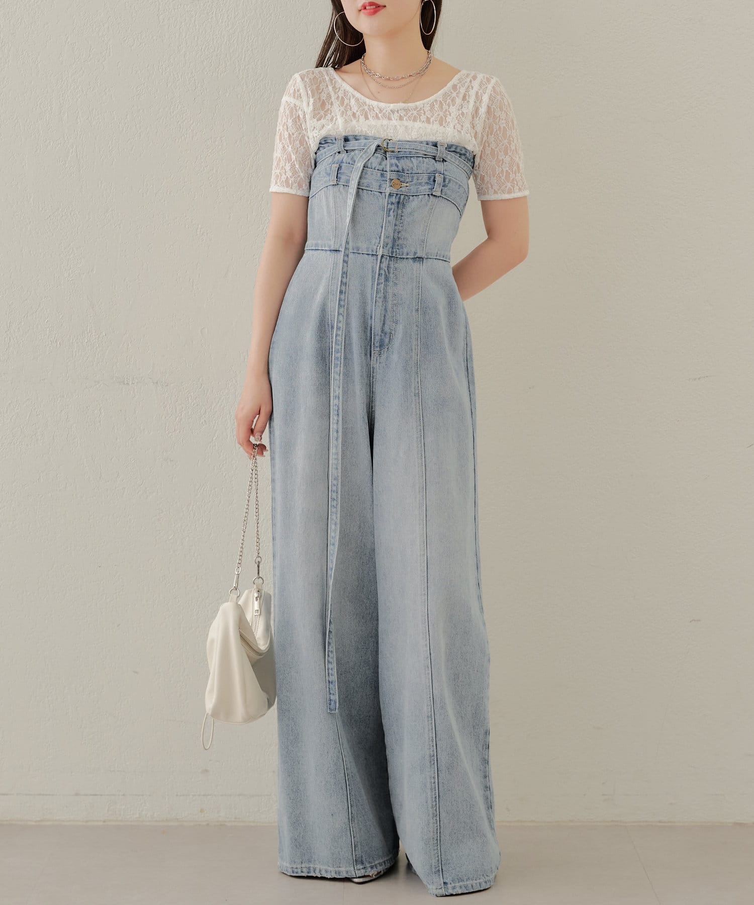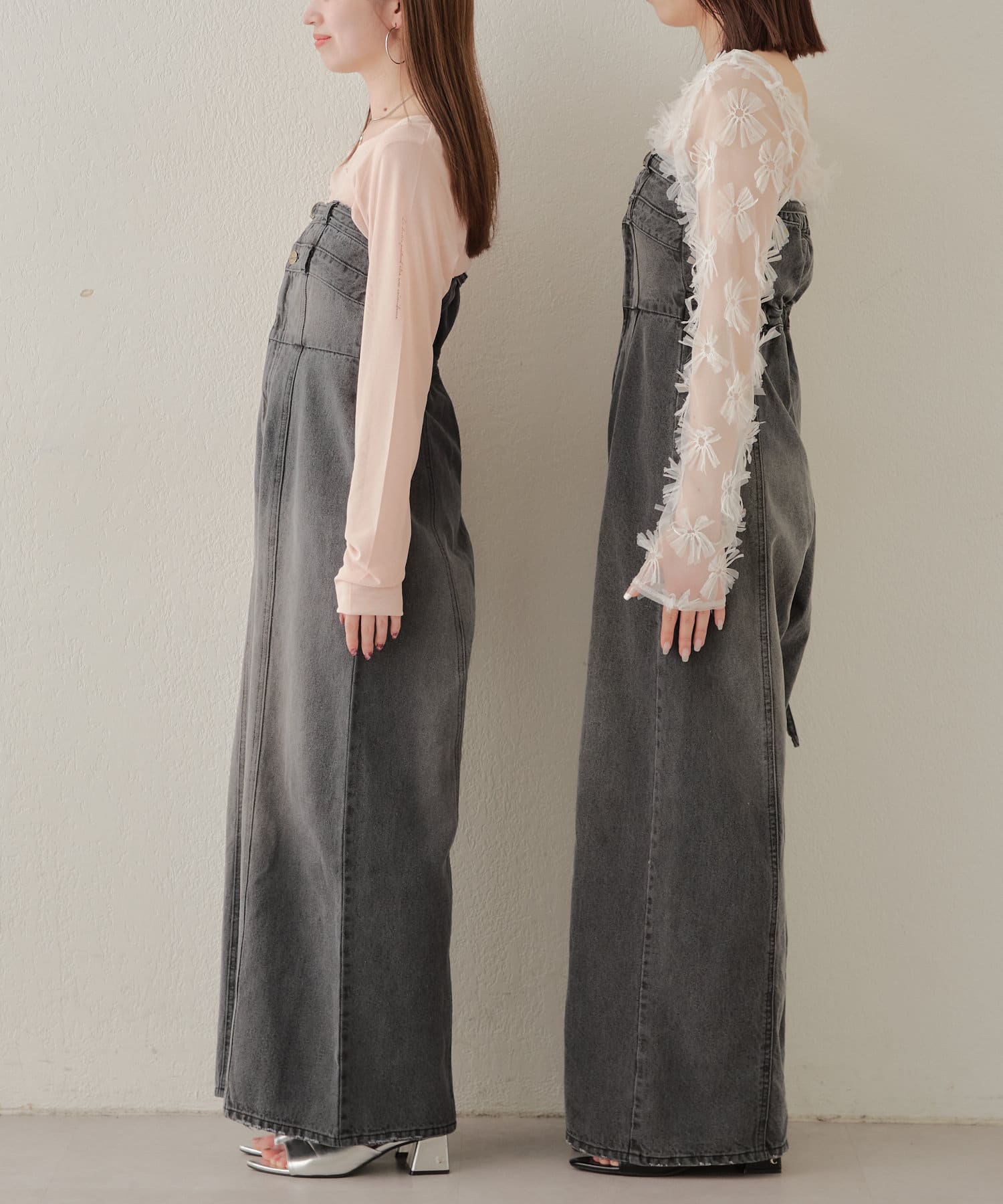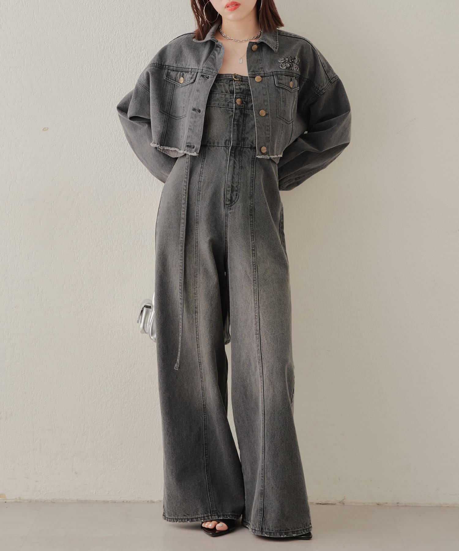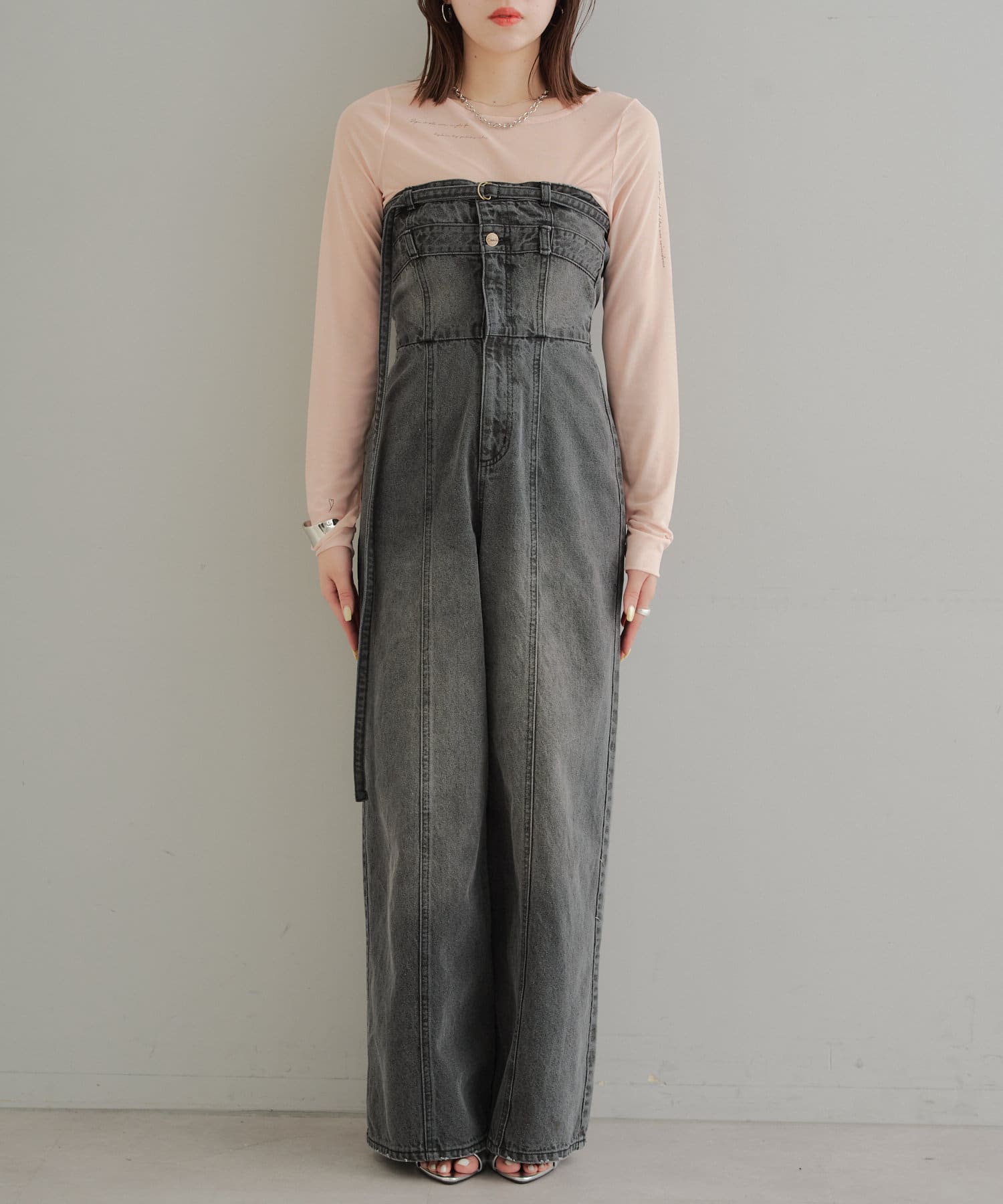 ・コンビネゾンは縦のシルエットが強調されてスタイル効果抜群。