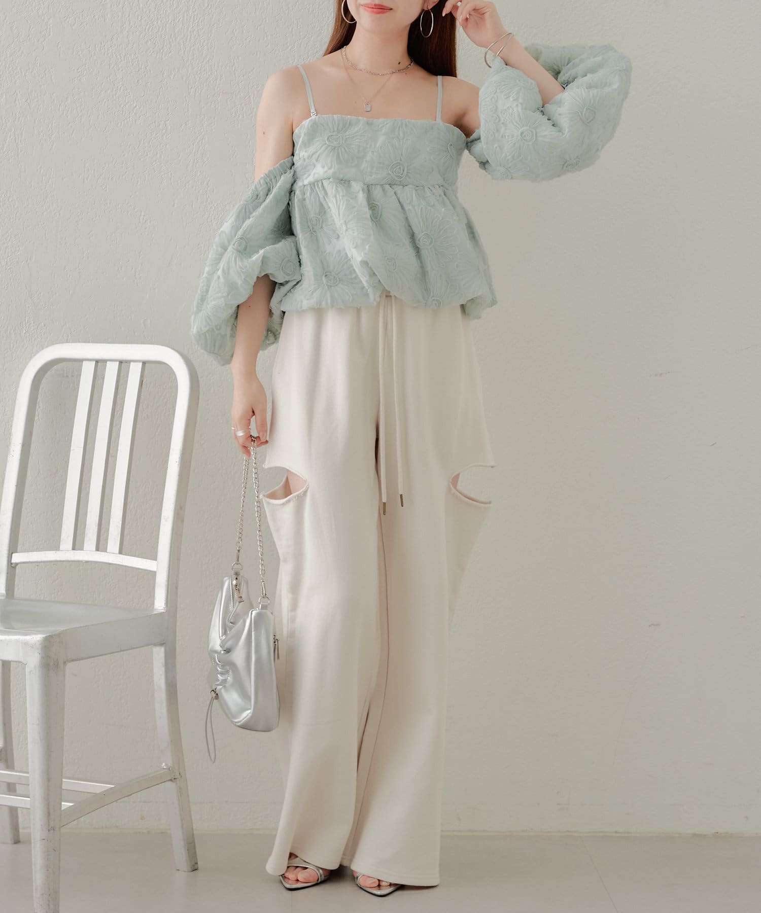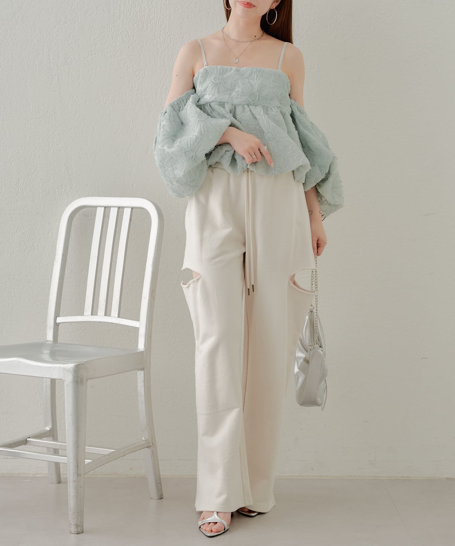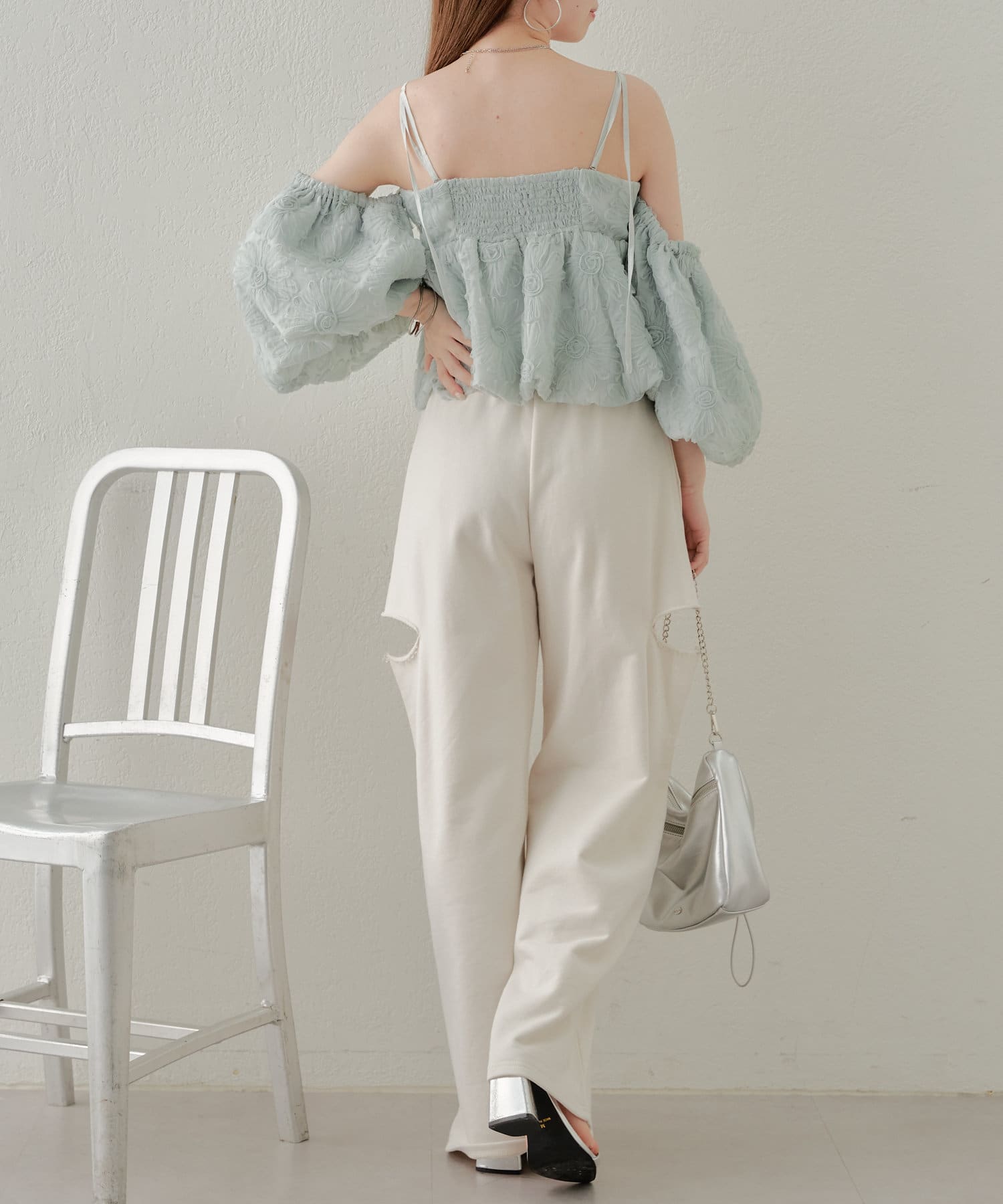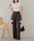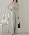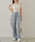 ・パンツがカジュアルなので甘めなブラウスや短丈トップスが好相性