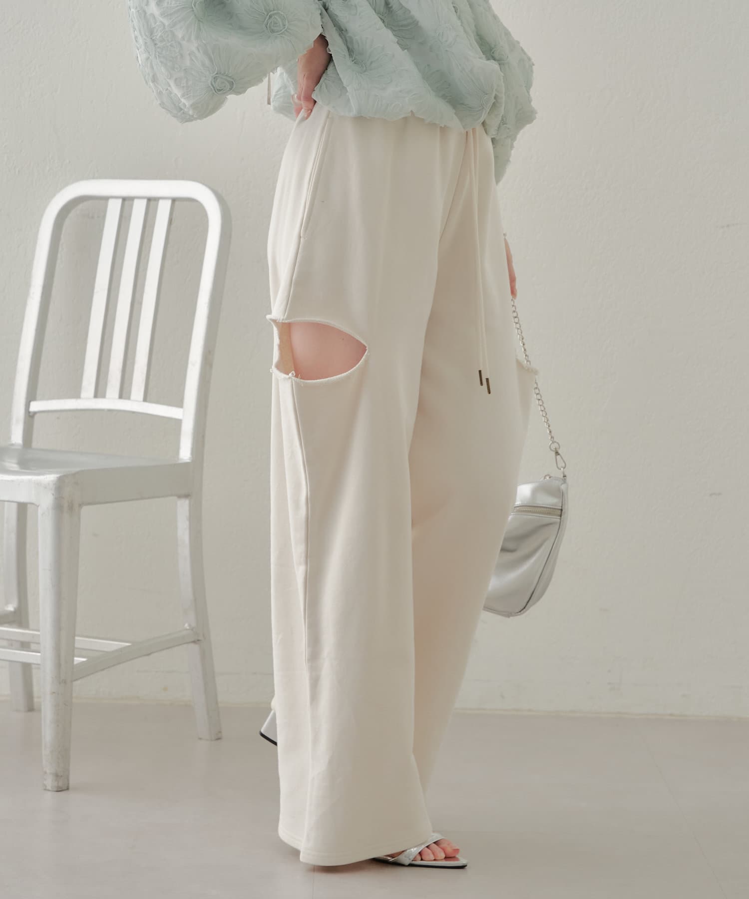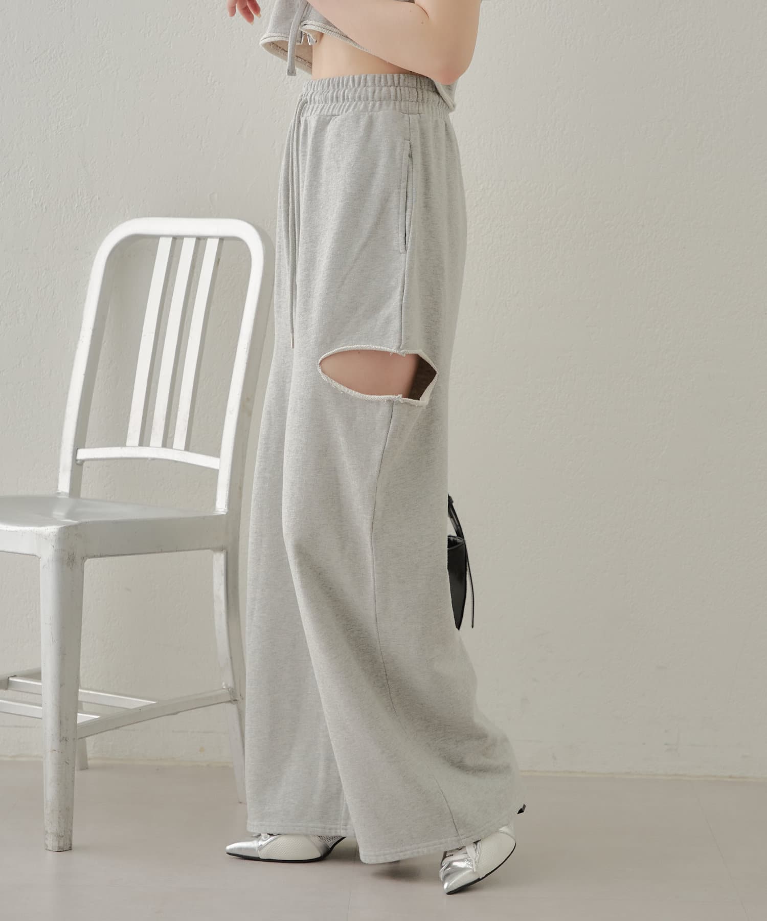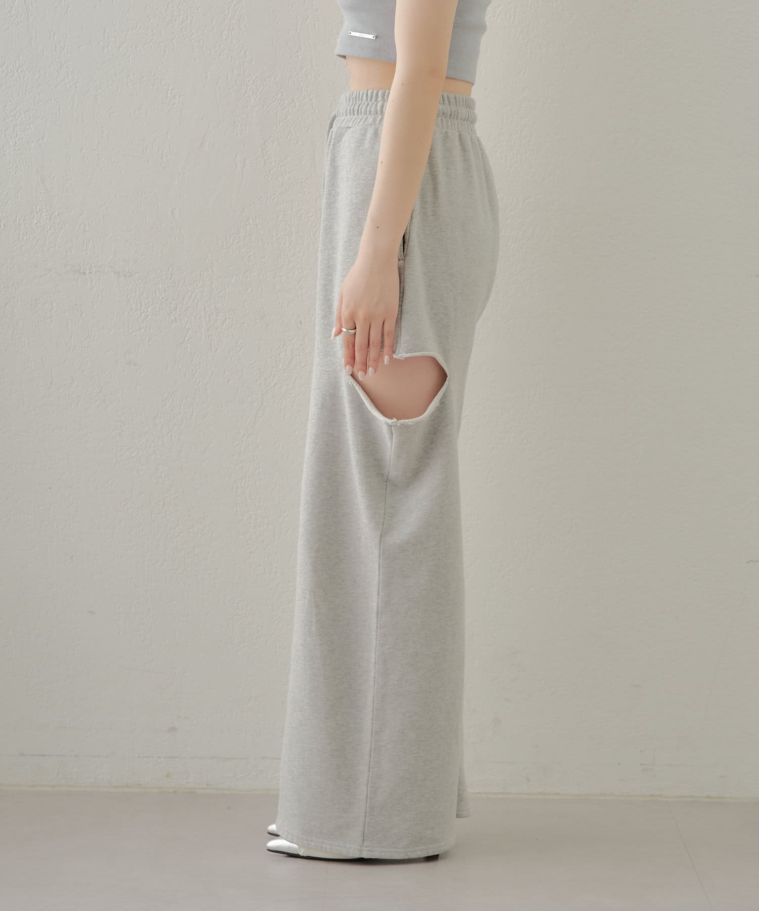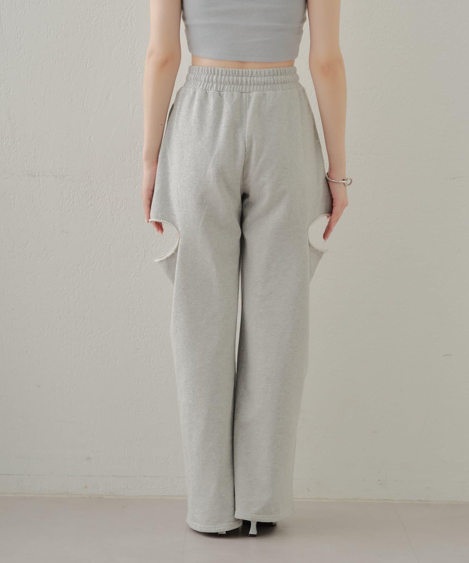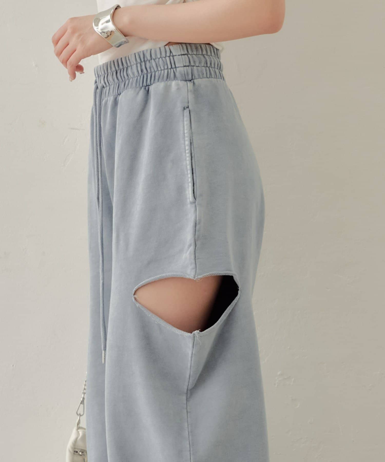 ・カット部分の肌見せで女性らしく履けるスウェットパンツが登場