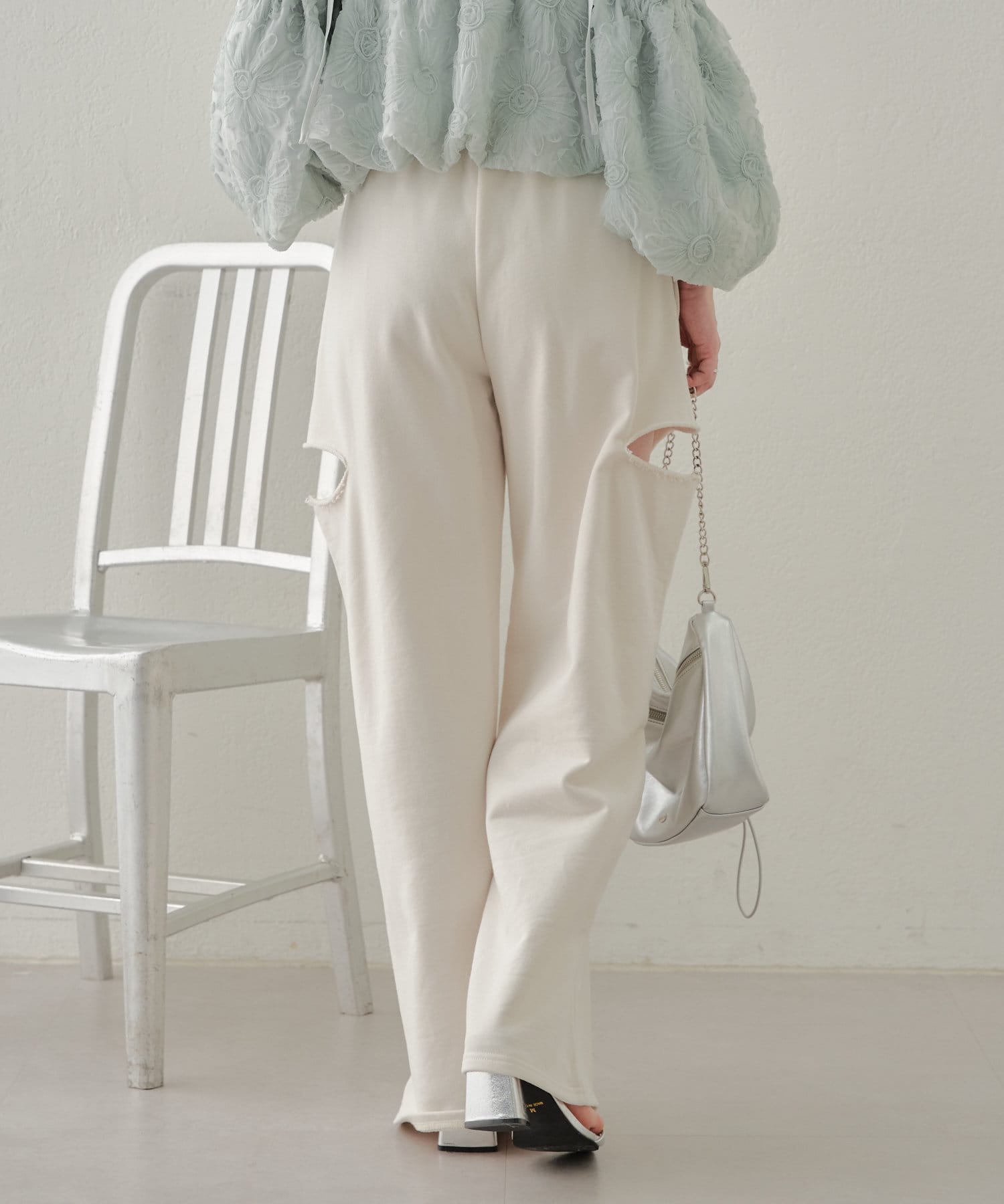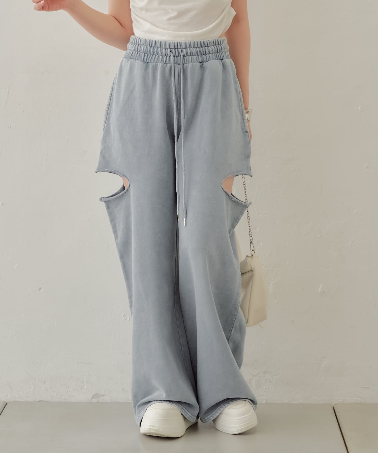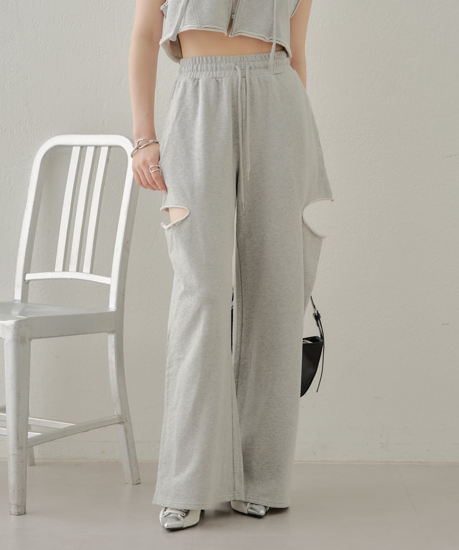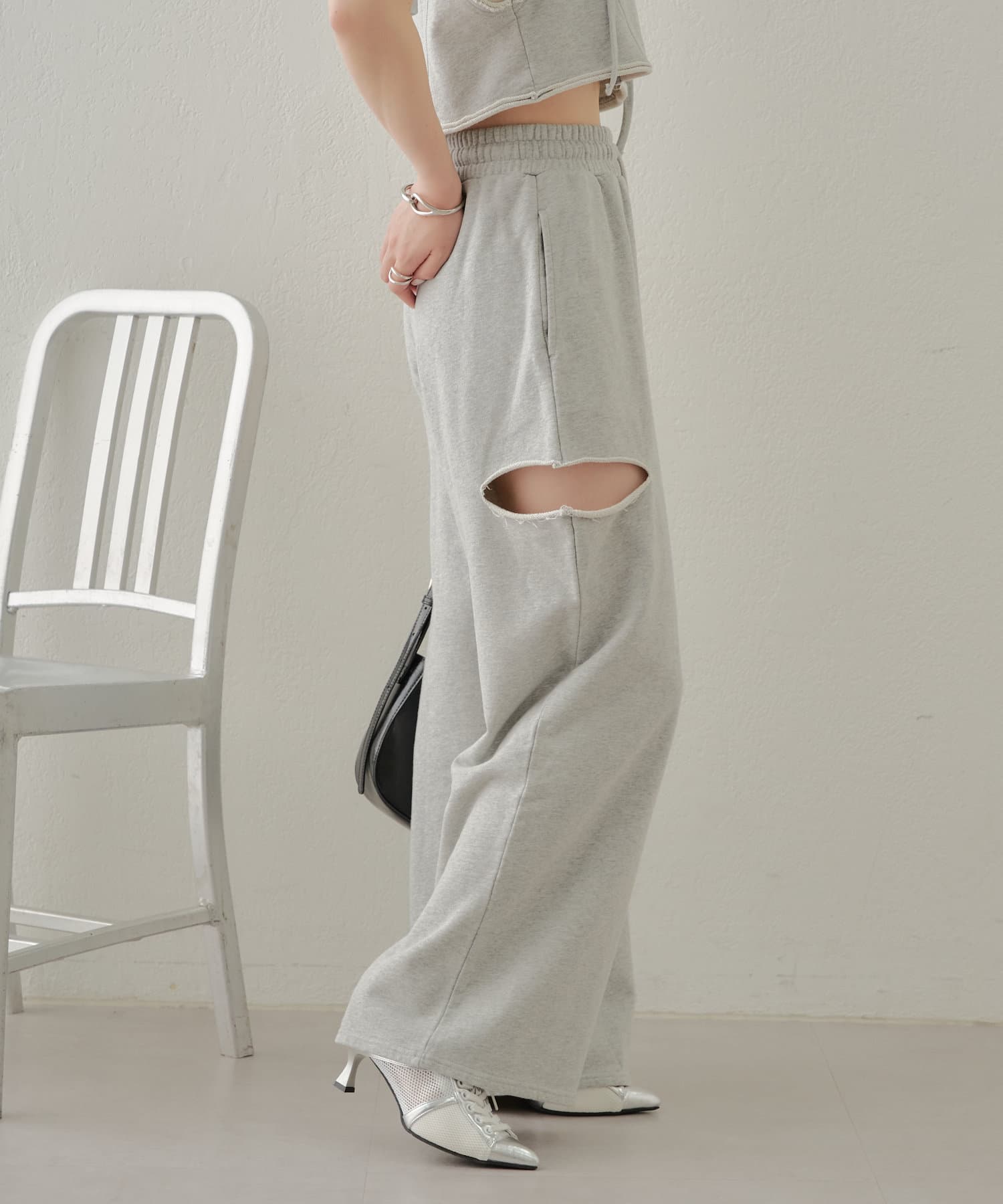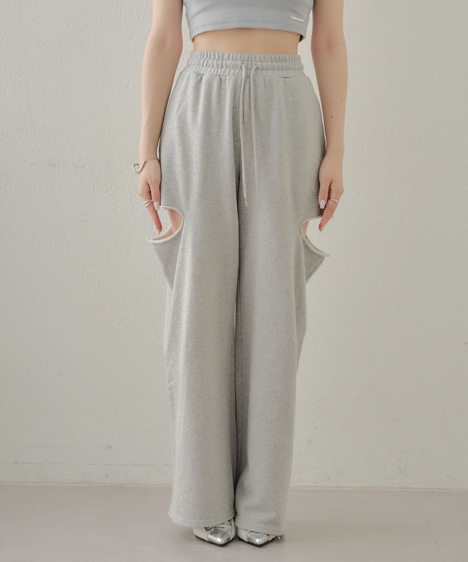 ・カット部分の肌見せで女性らしく履けるスウェットパンツが登場