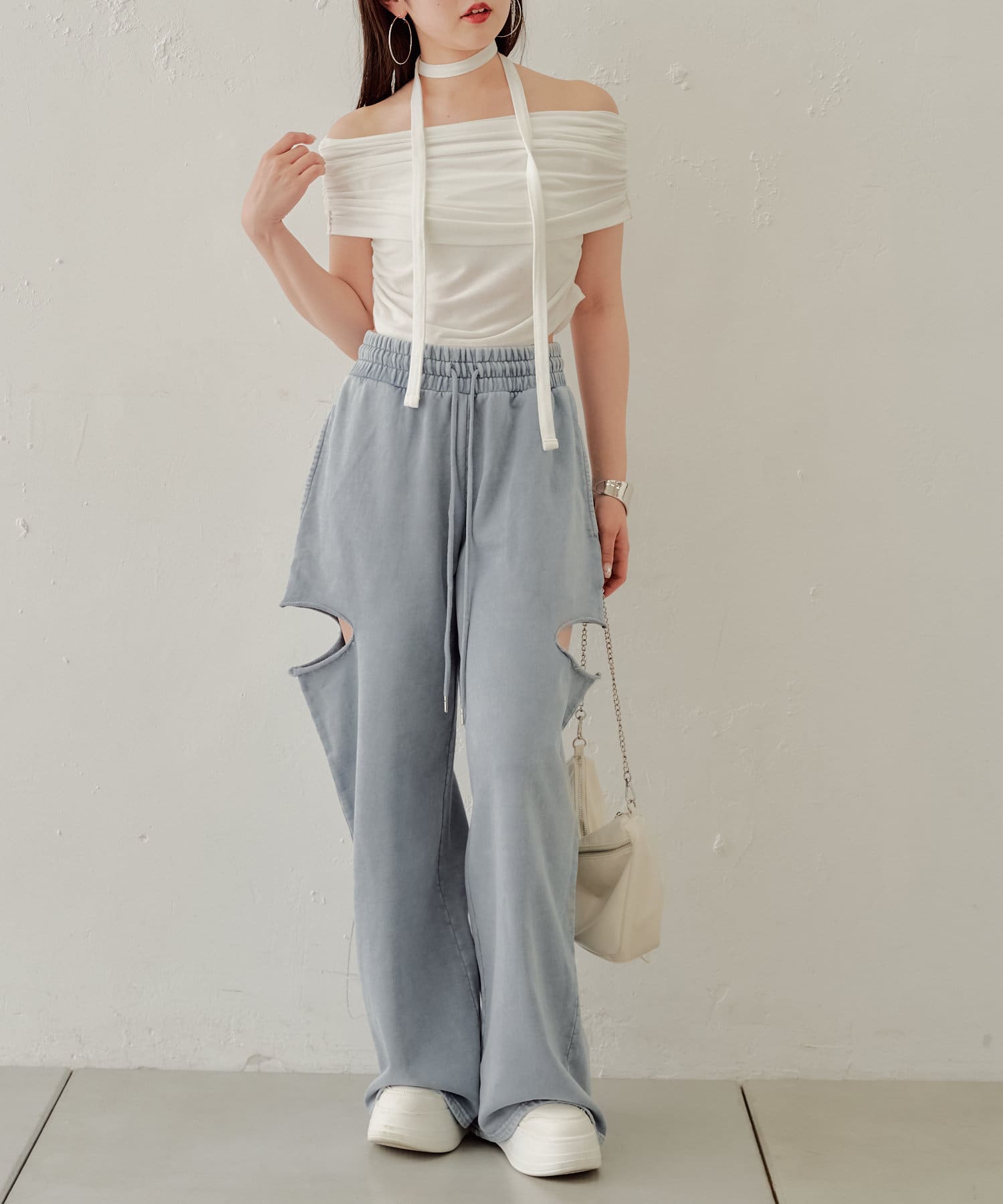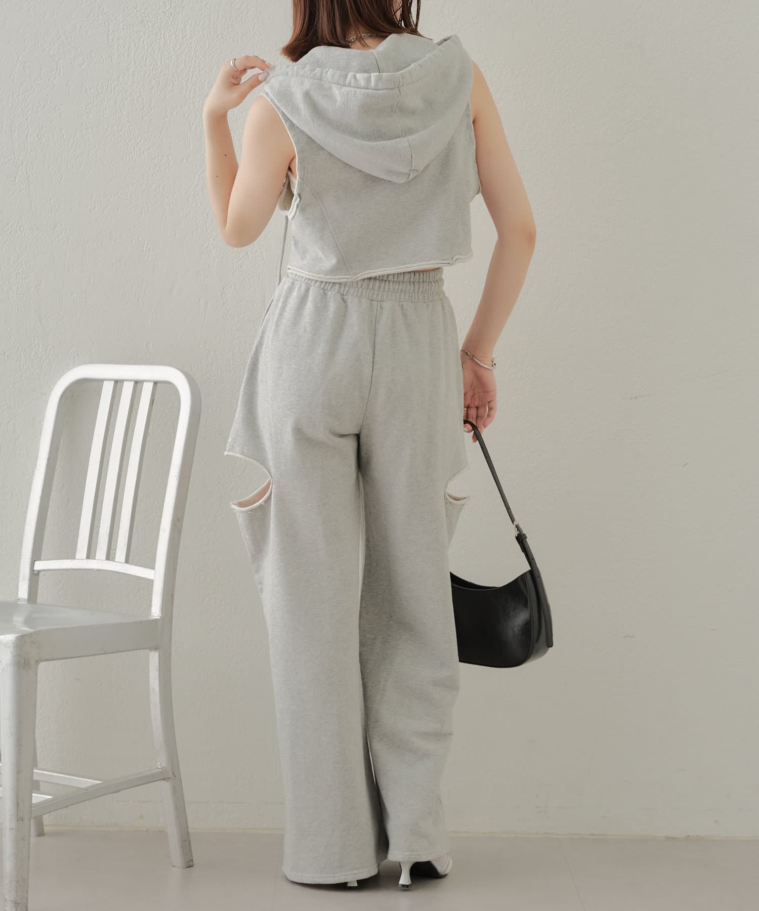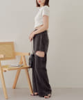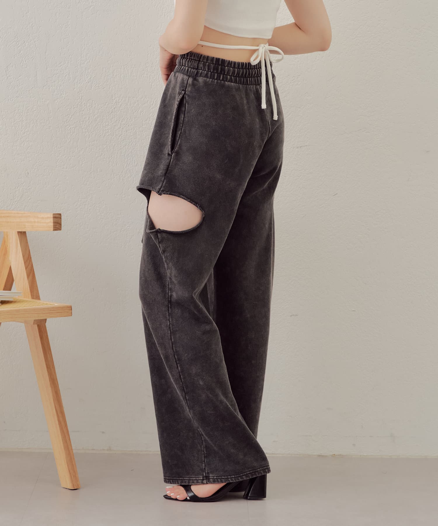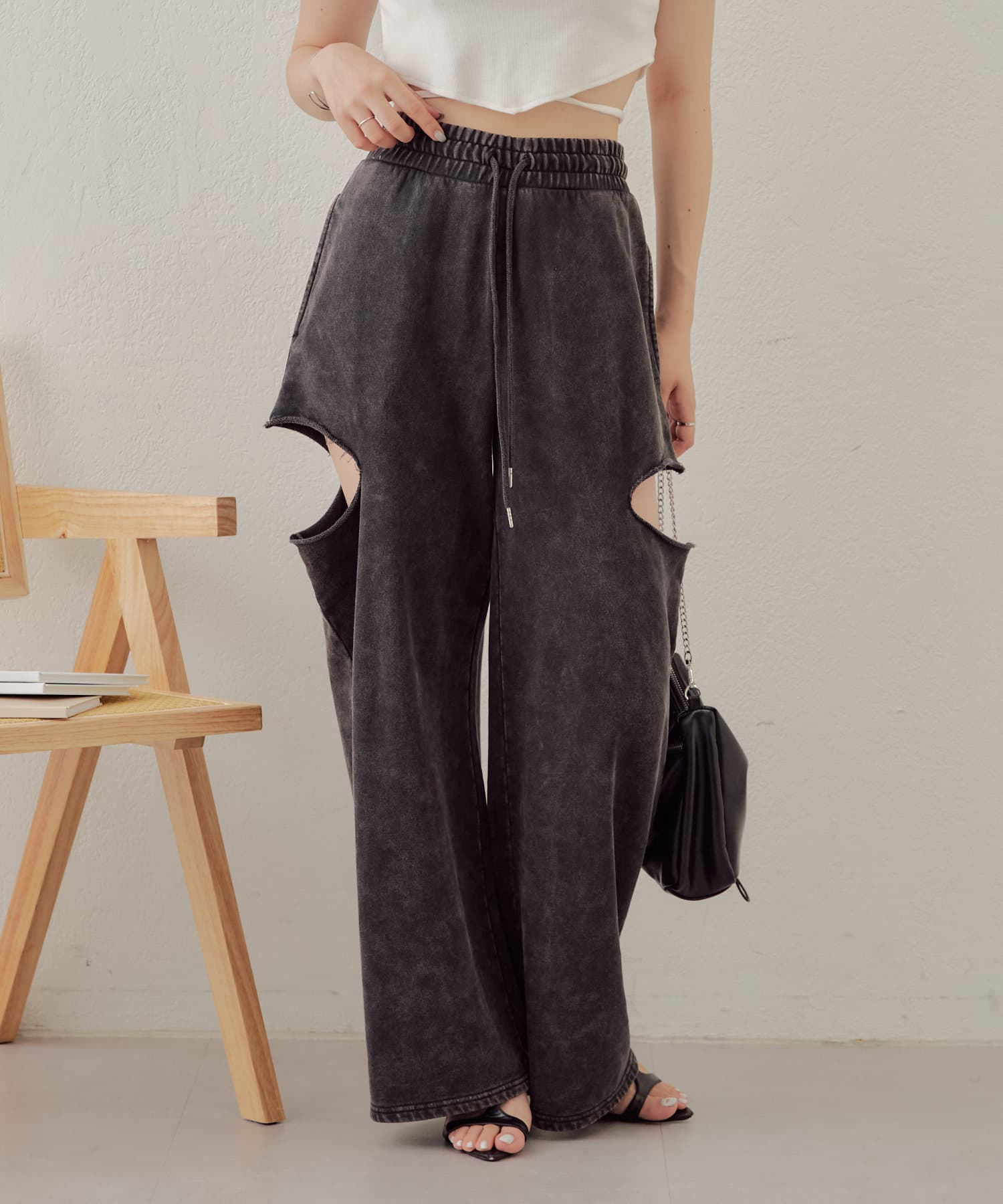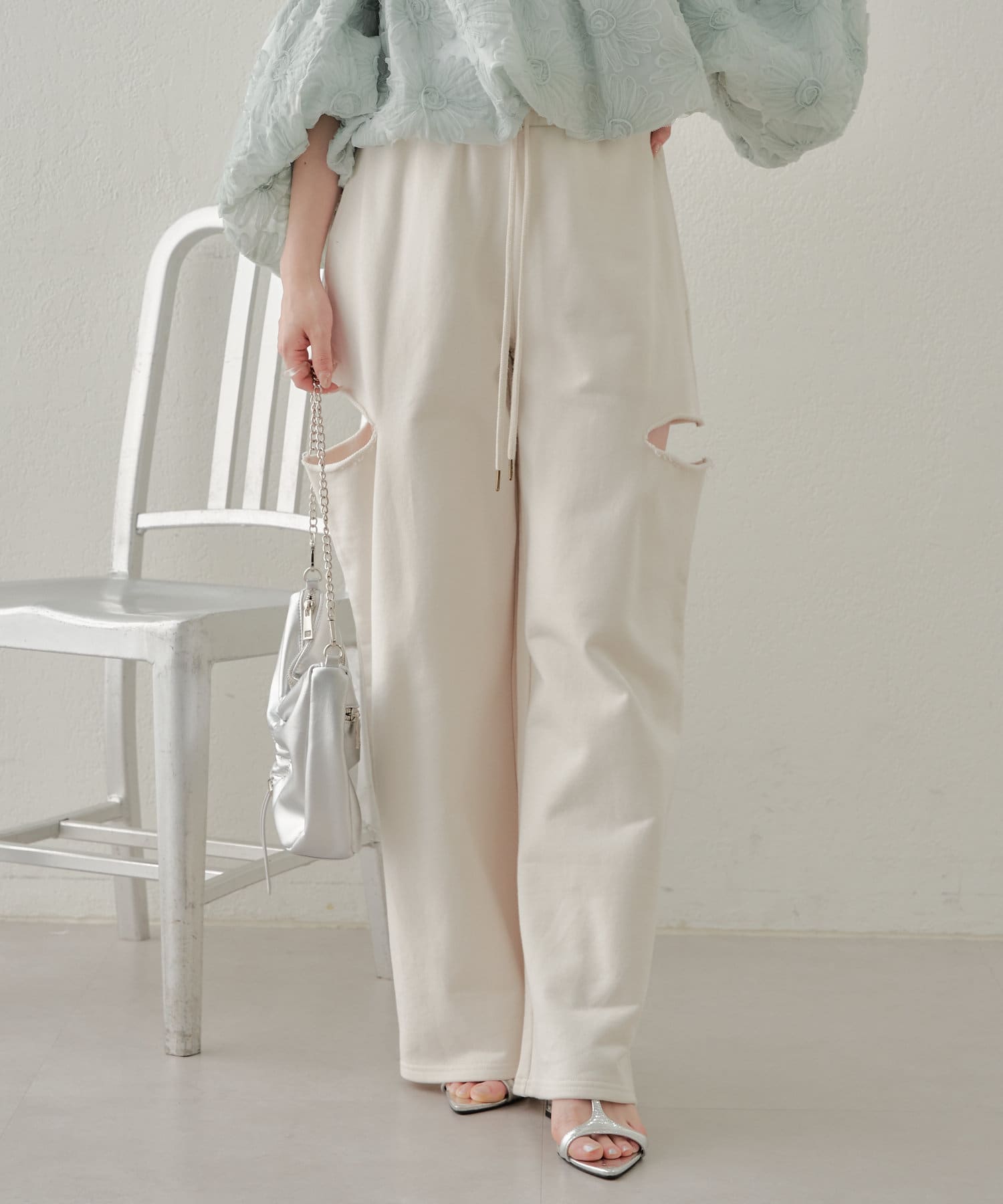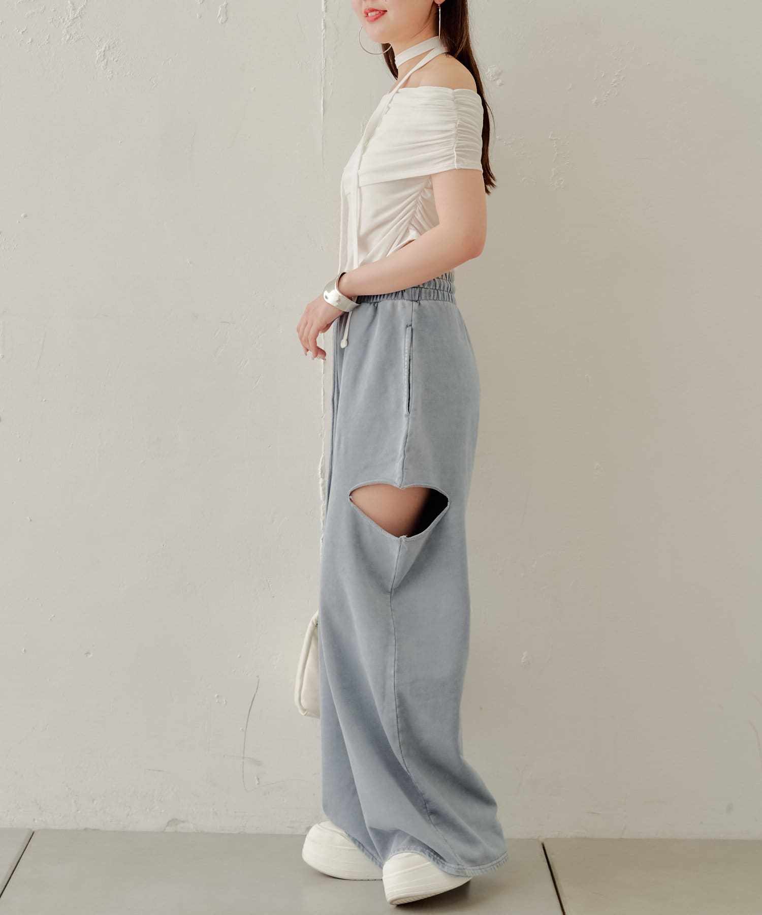 ・カット部分の肌見せで女性らしく履けるスウェットパンツが登場
