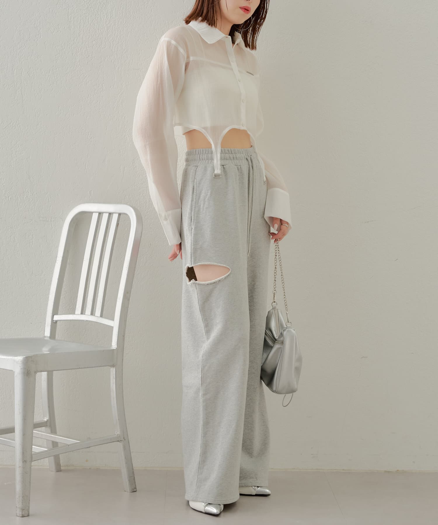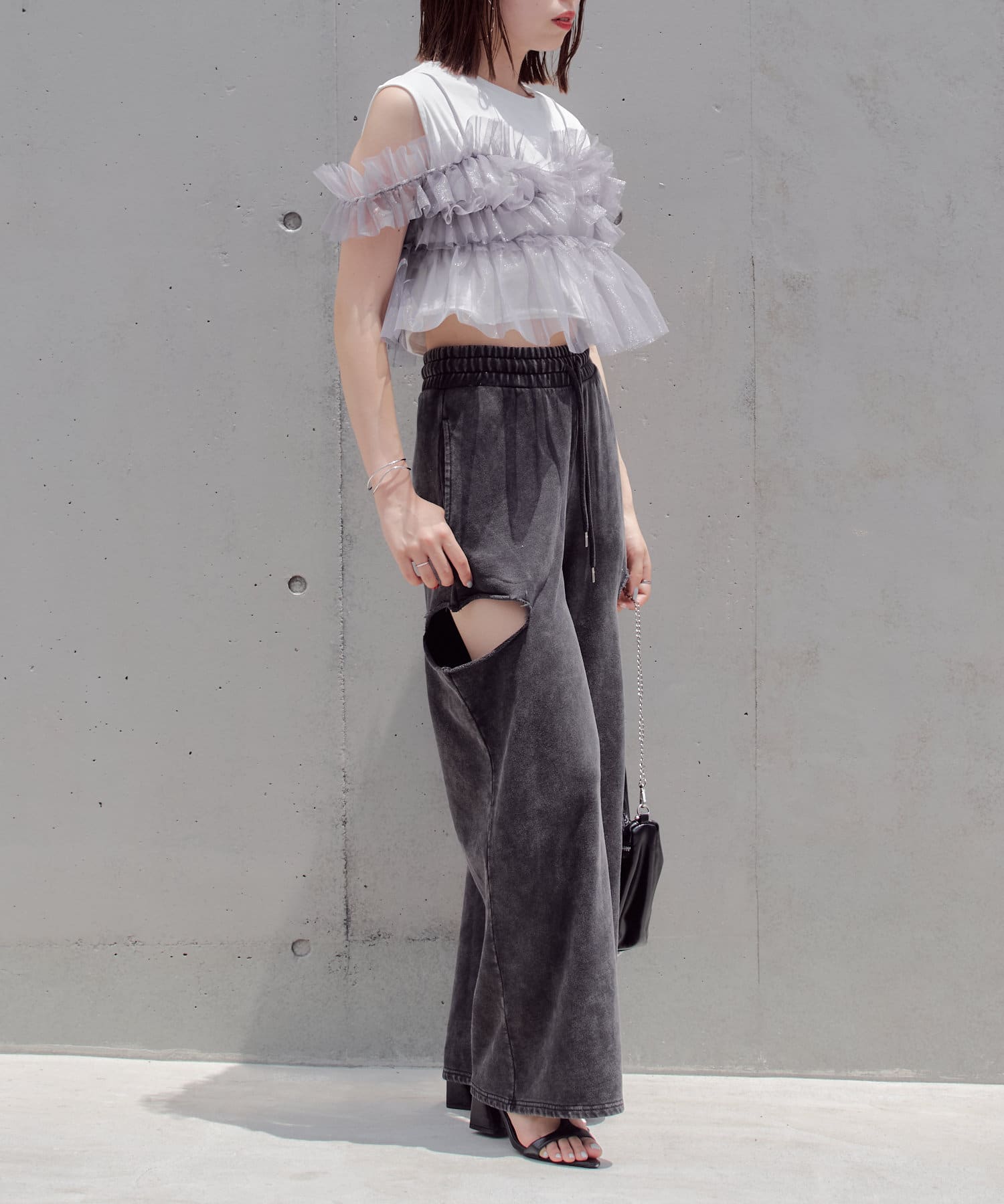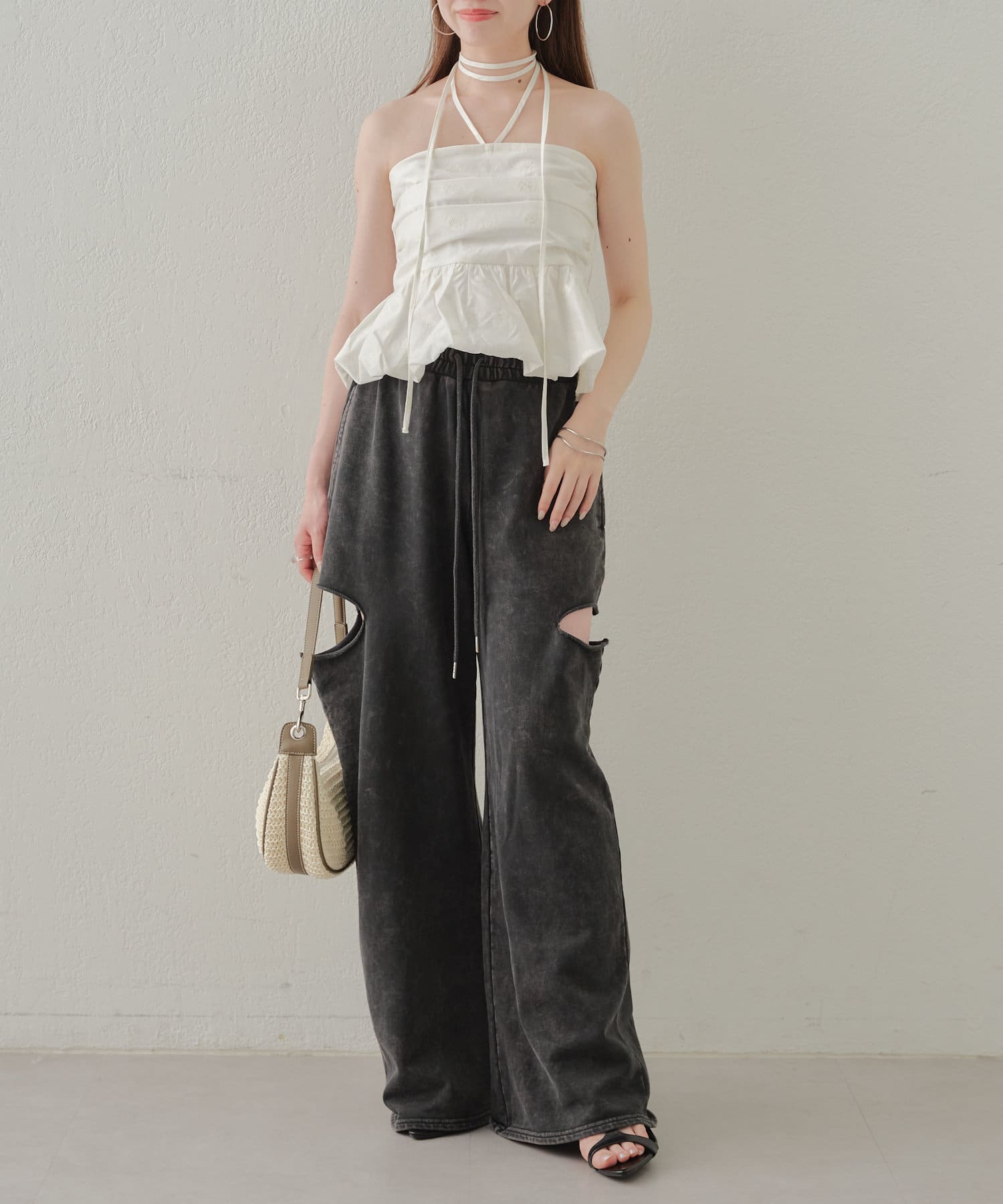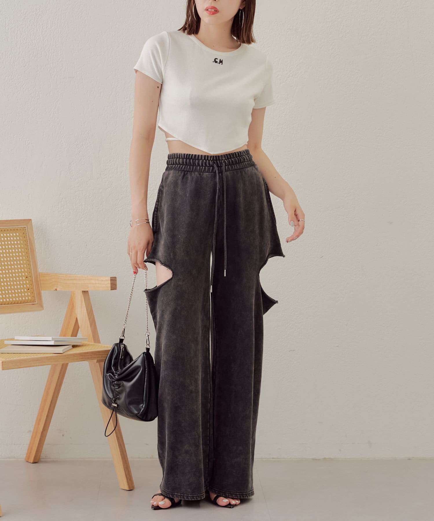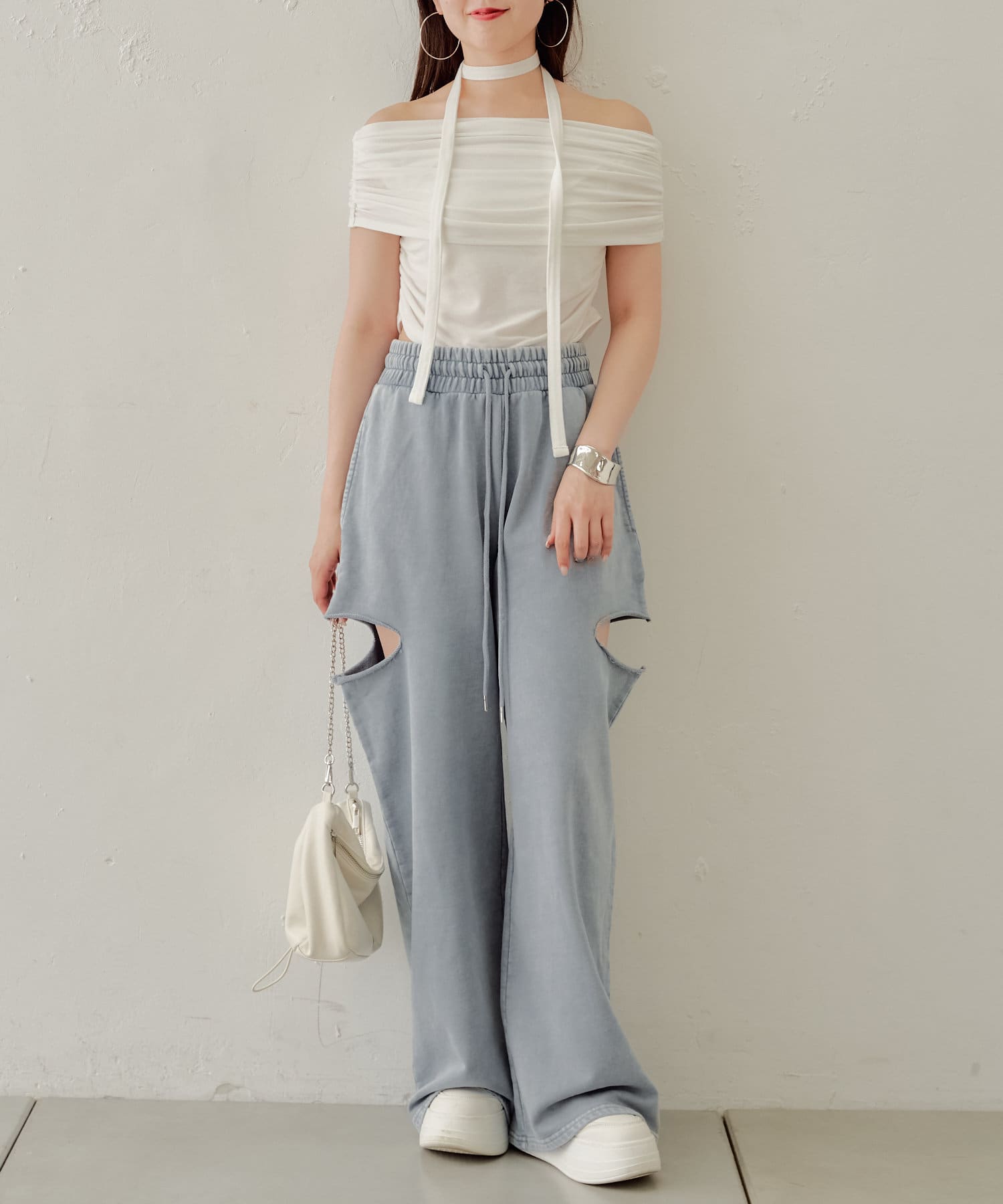 ・カット部分の肌見せで女性らしく履けるスウェットパンツが登場