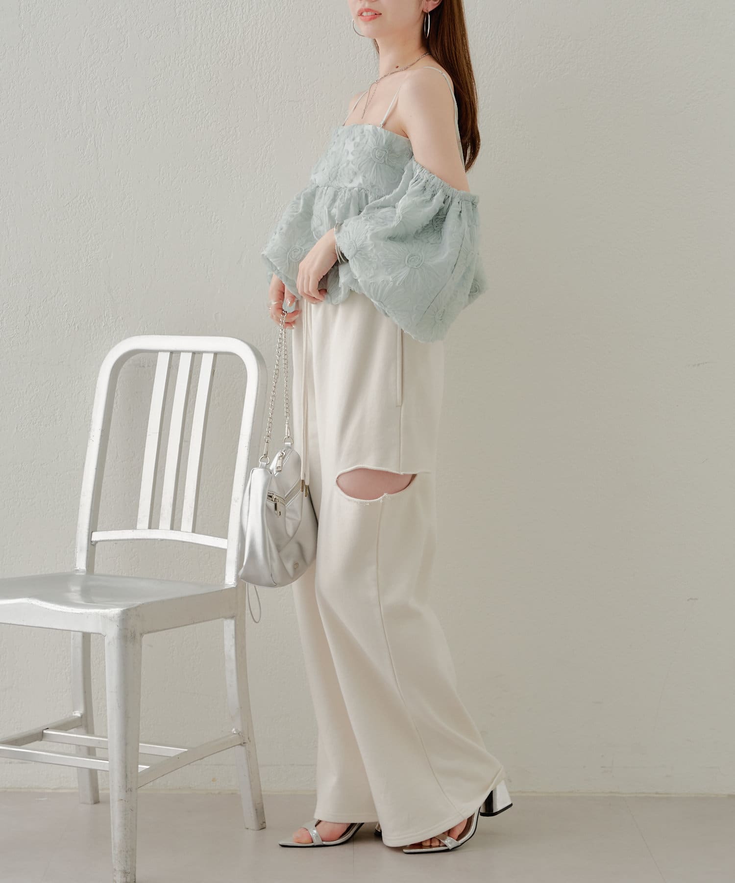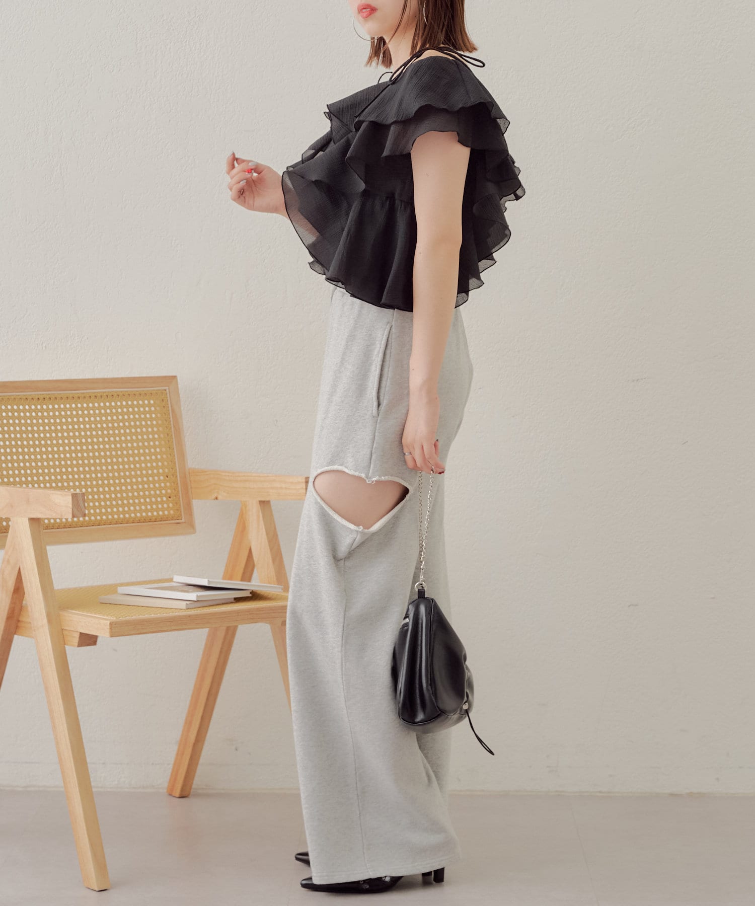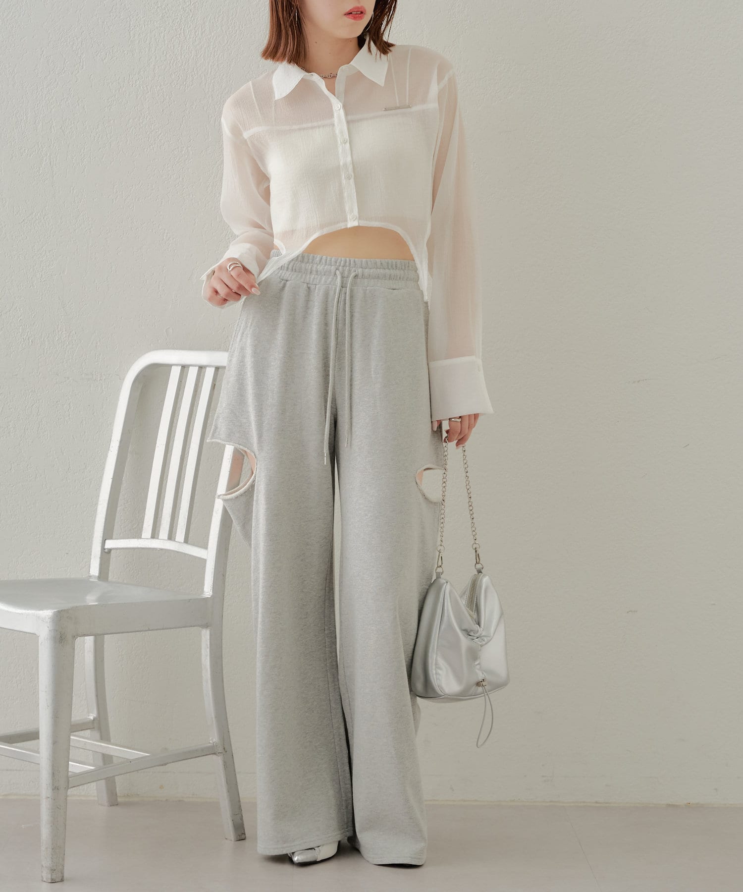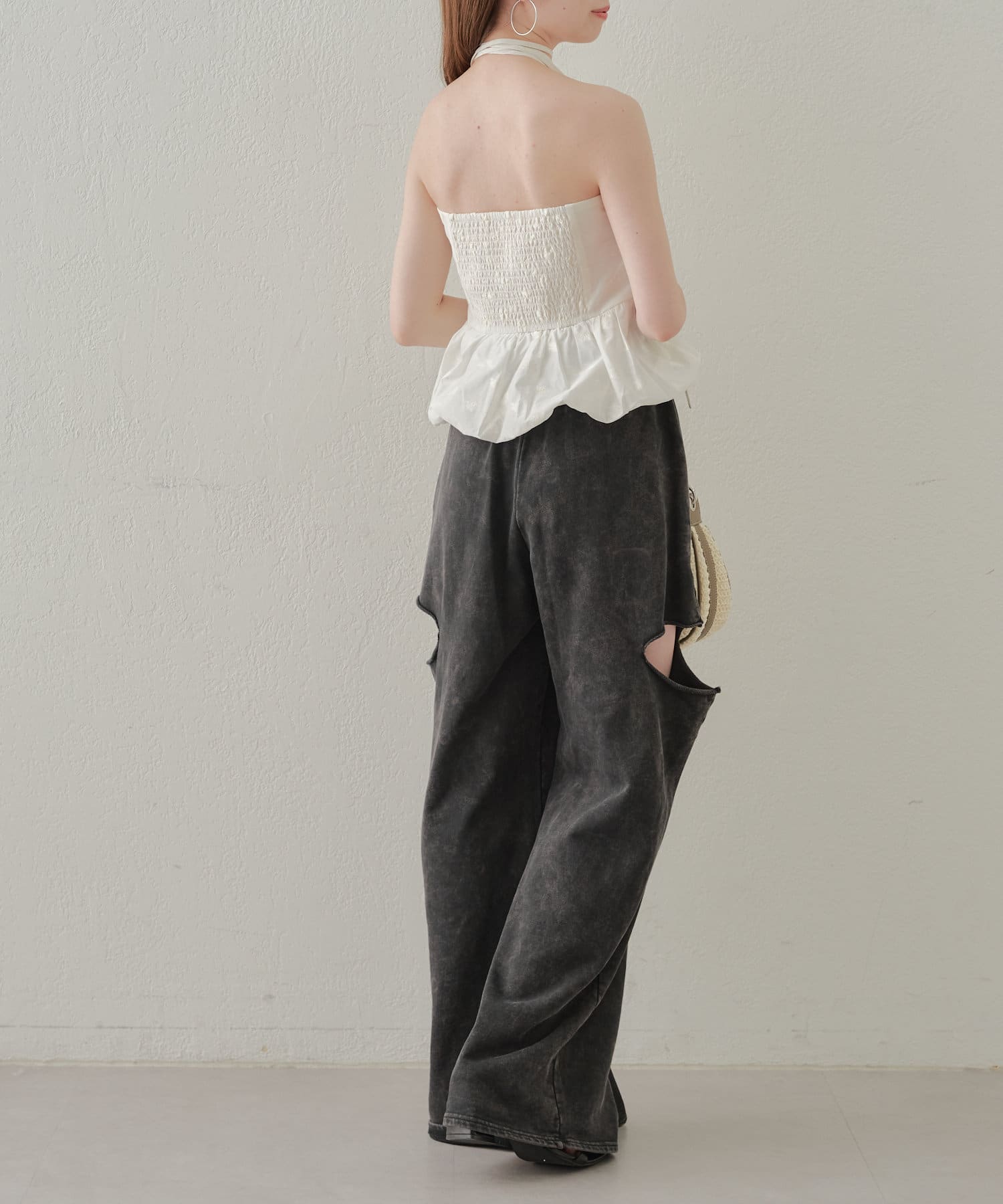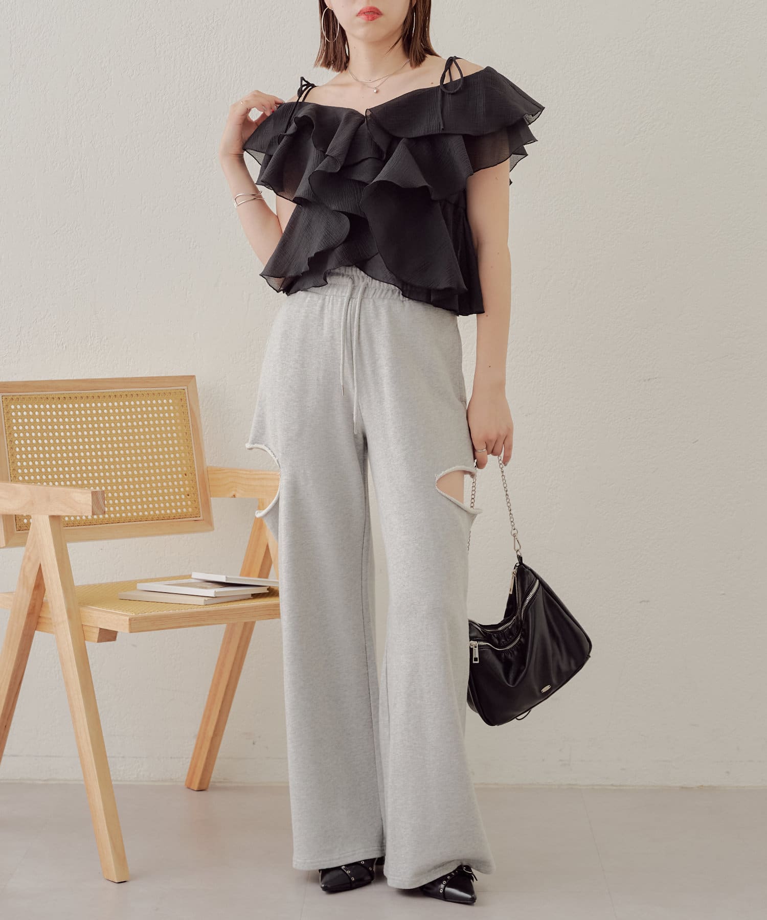 ・カット部分の肌見せで女性らしく履けるスウェットパンツが登場