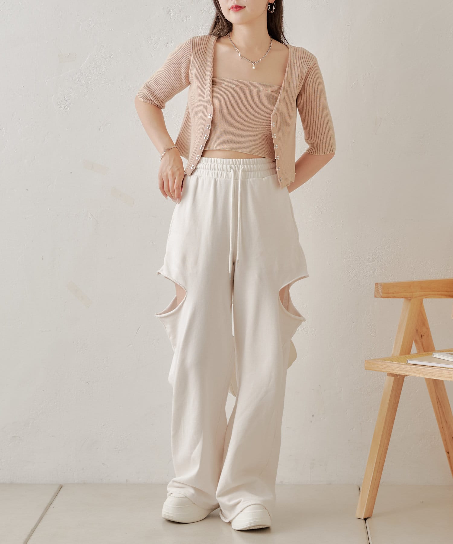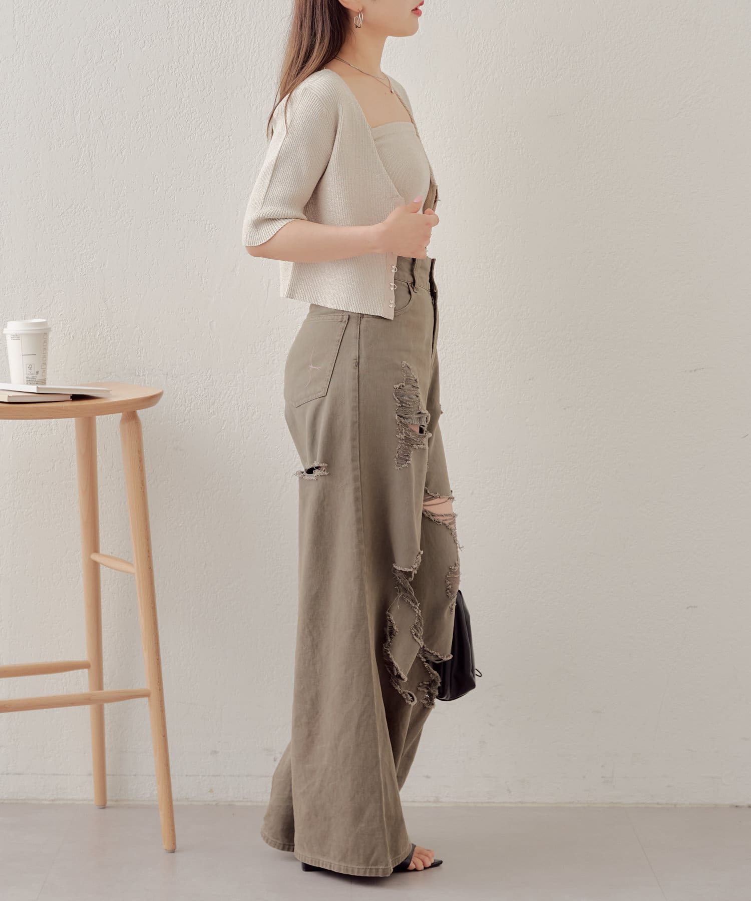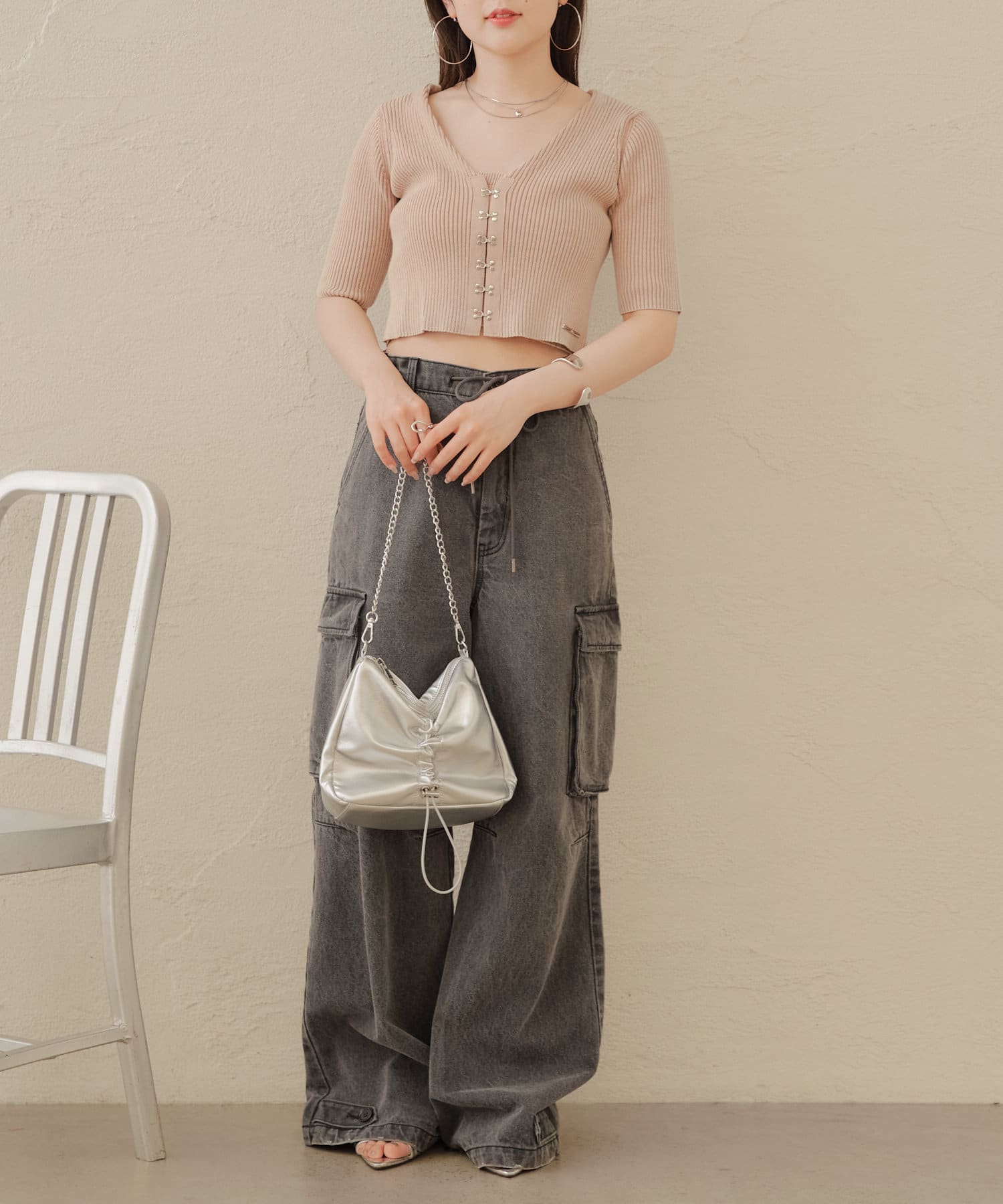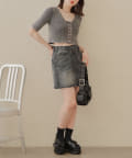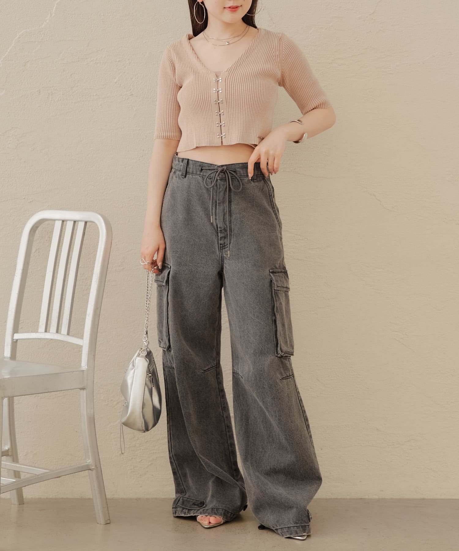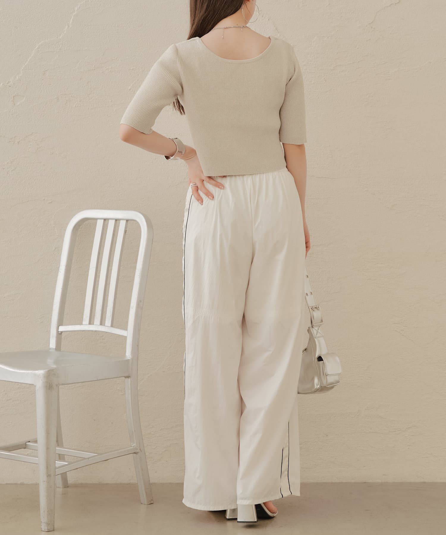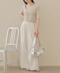 ・コンパクトなトップスなのでボリュームのあるボトム合わせがおすすめ。