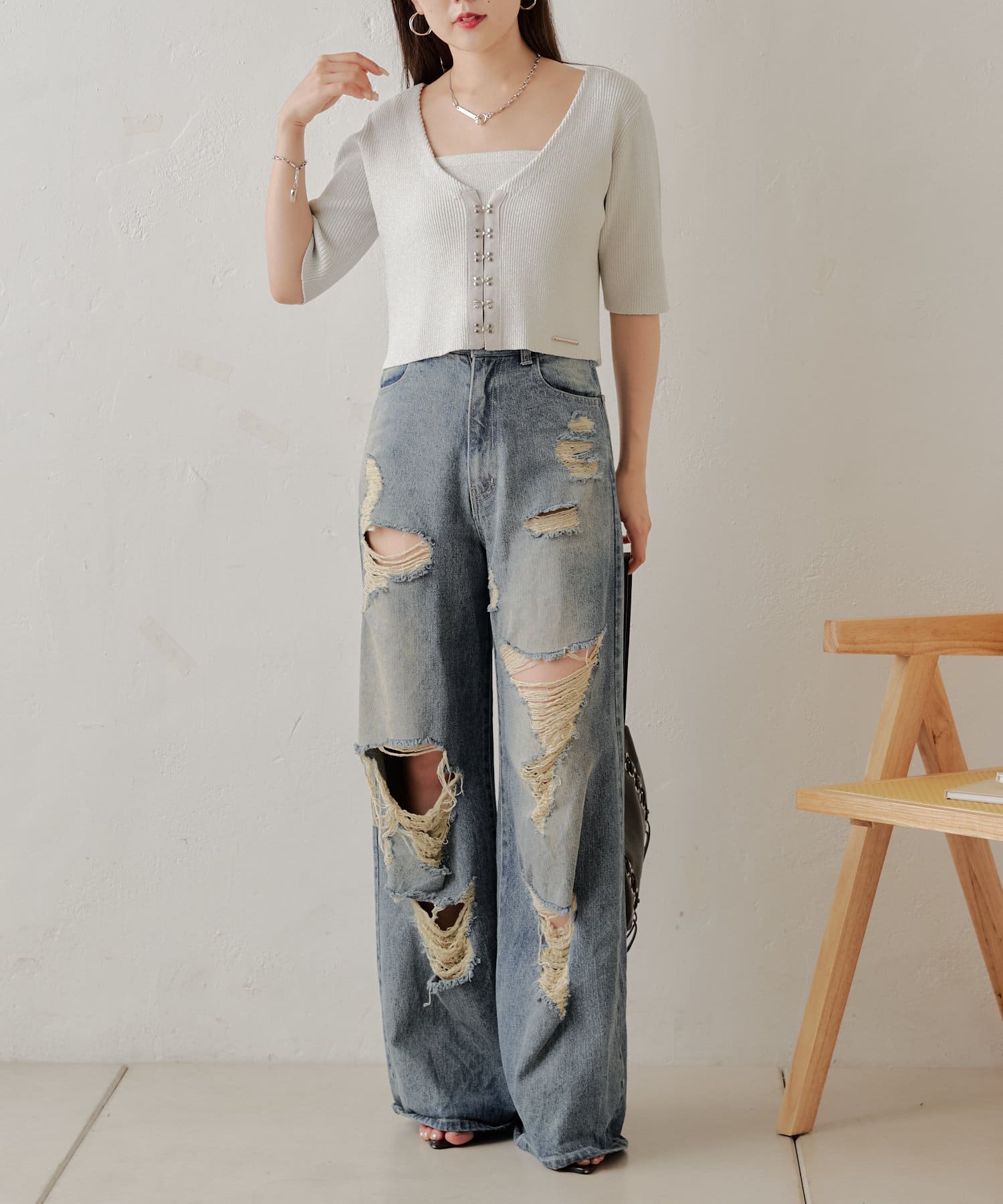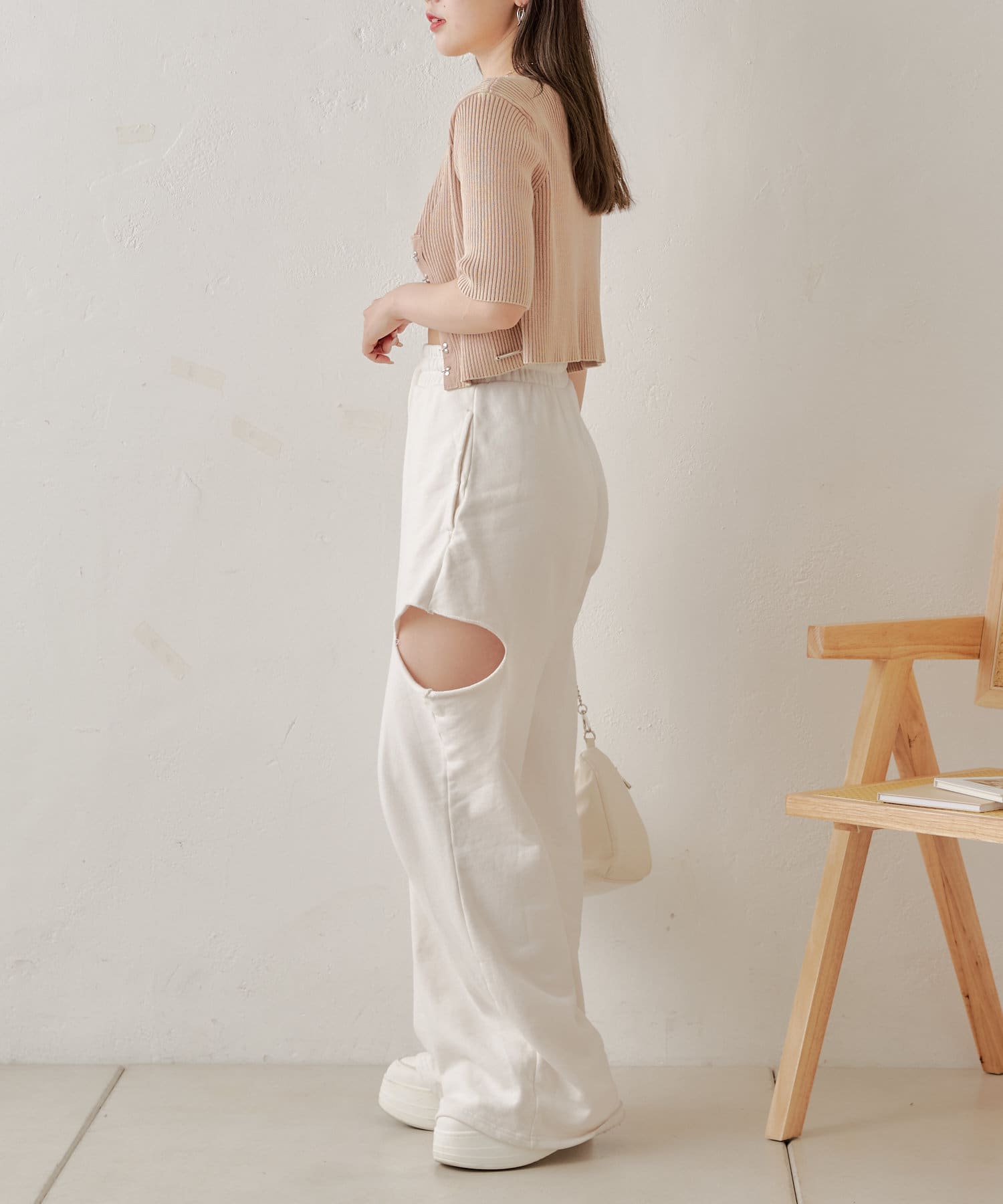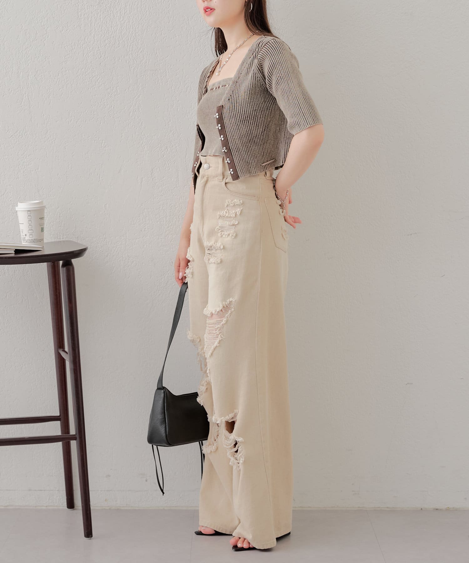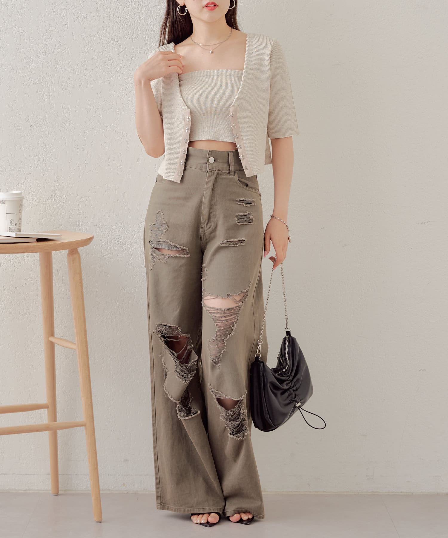 ・コンパクトなトップスなのでボリュームのあるボトム合わせがおすすめ。