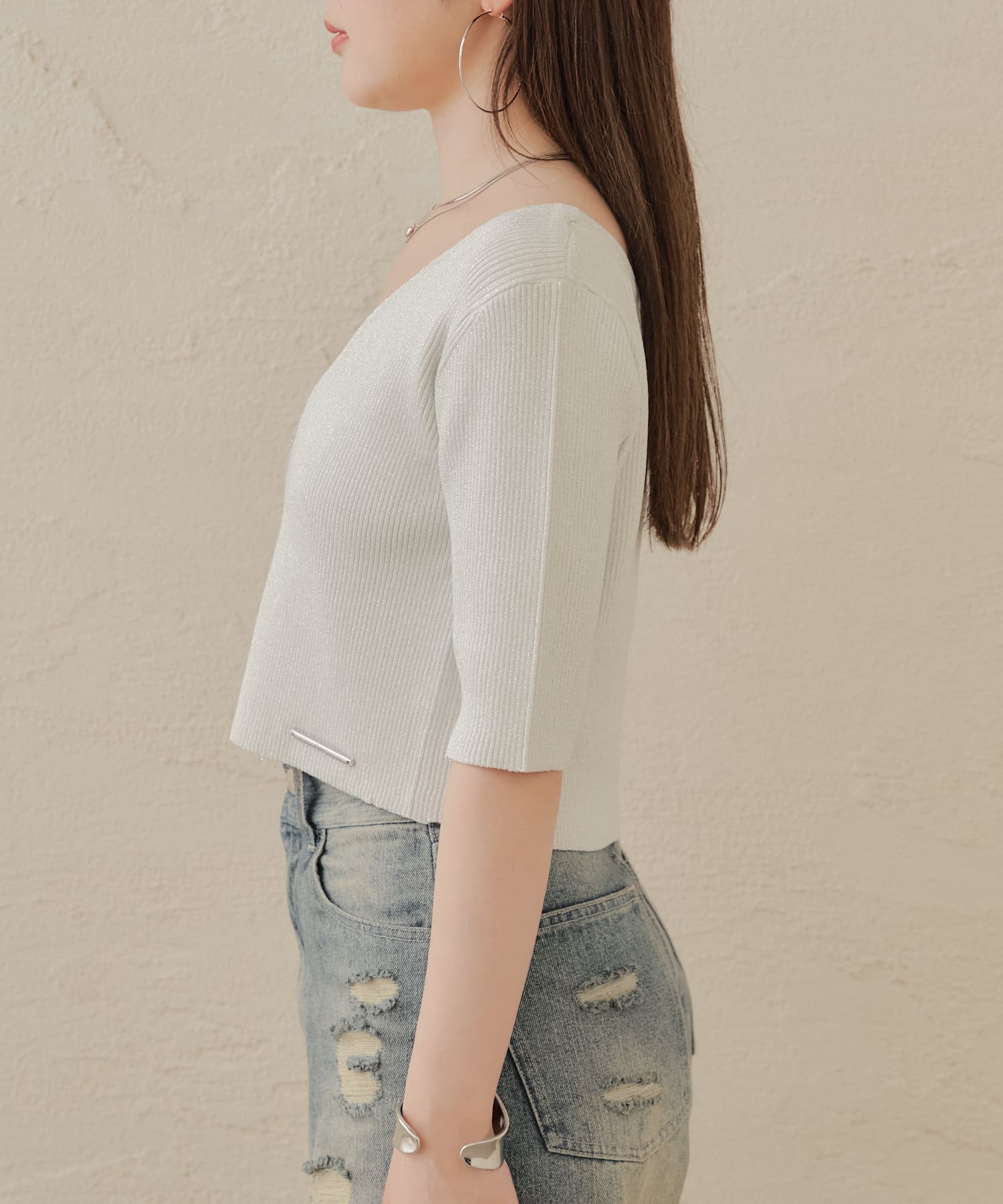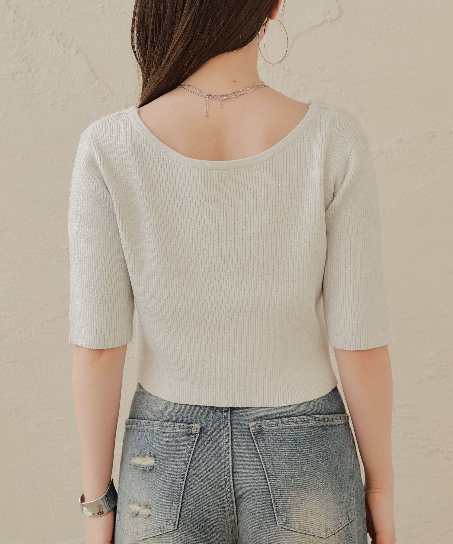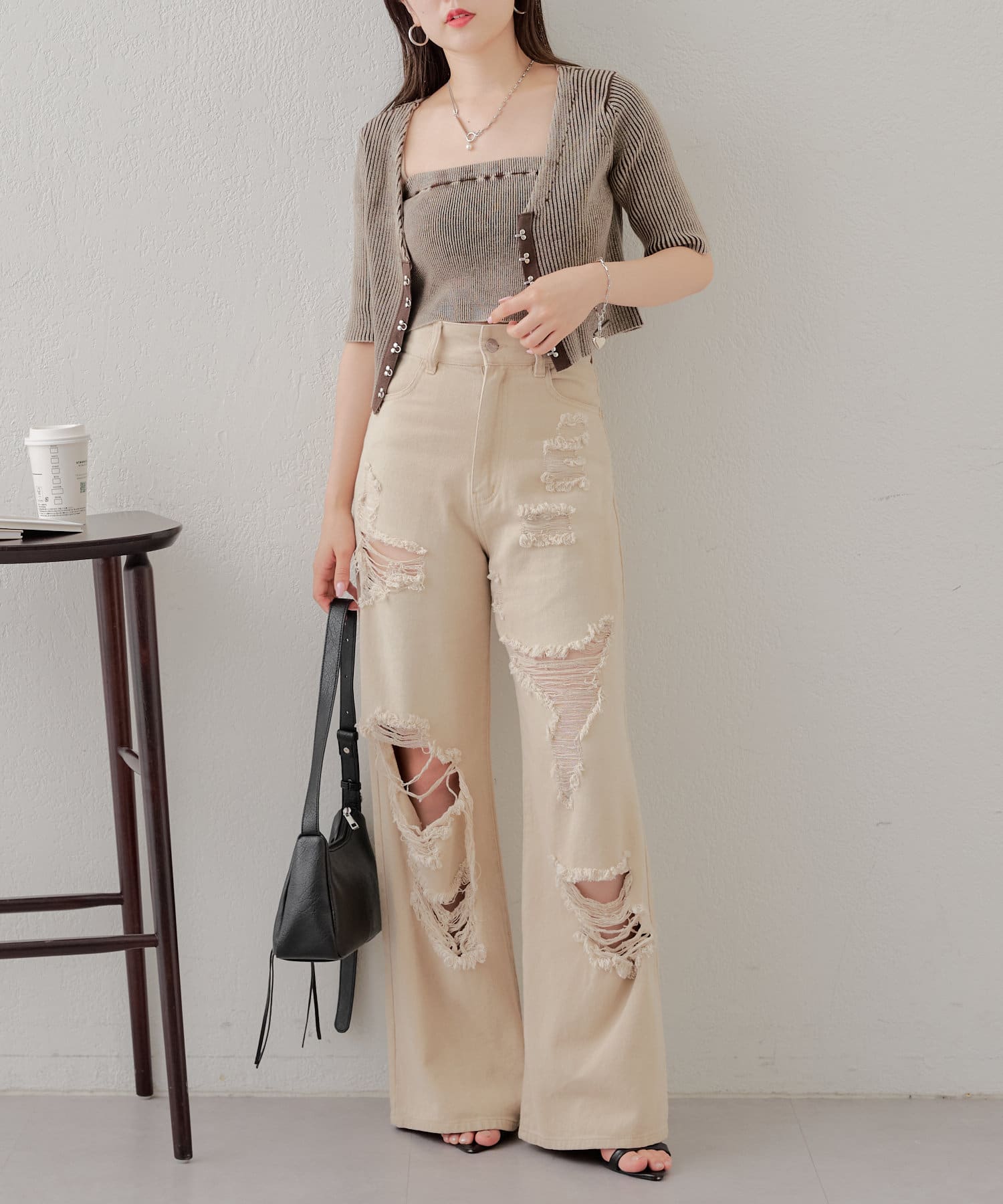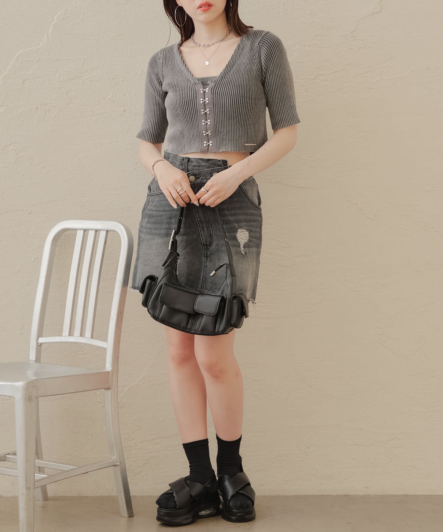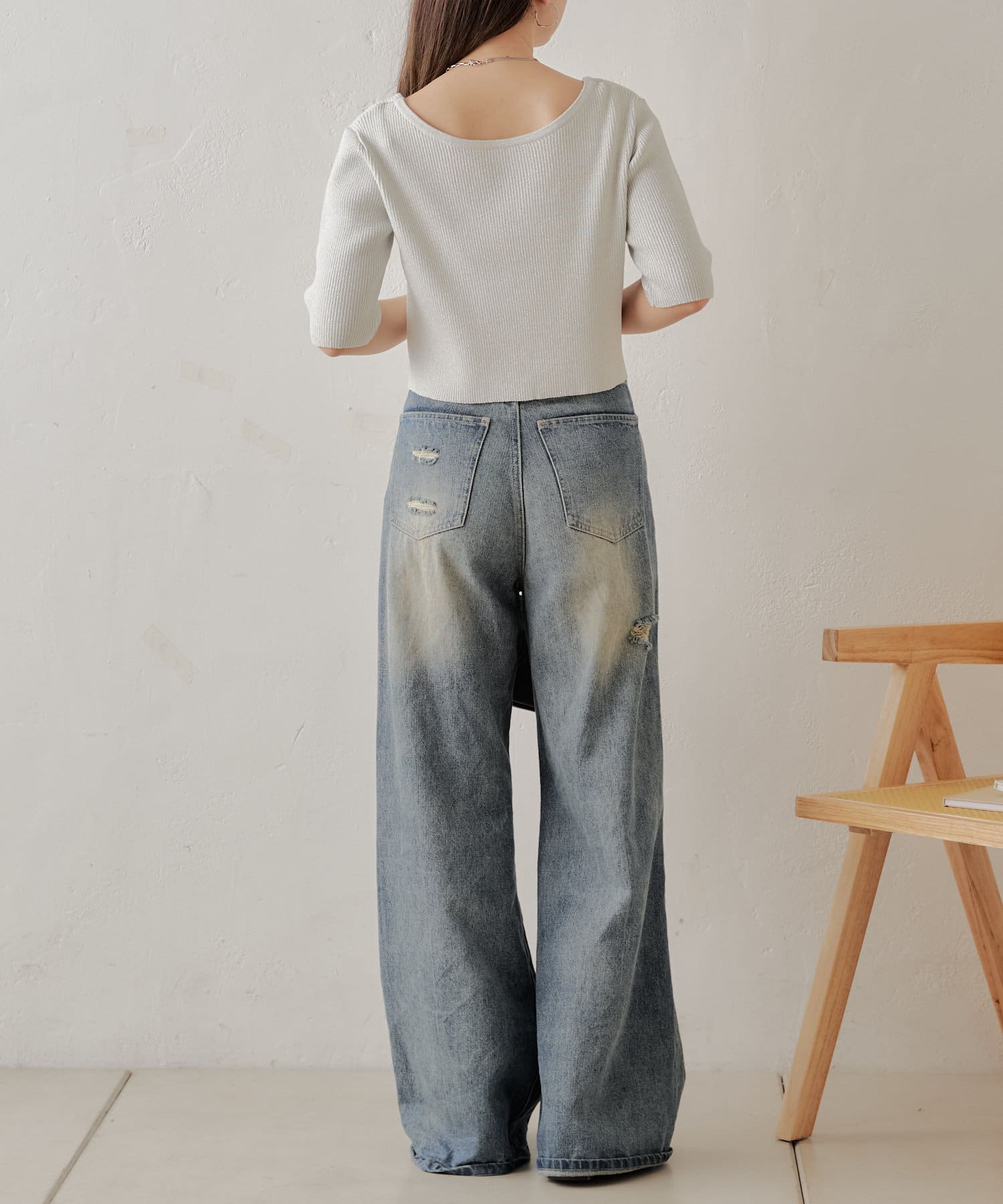 ・コンパクトなトップスなのでボリュームのあるボトム合わせがおすすめ。