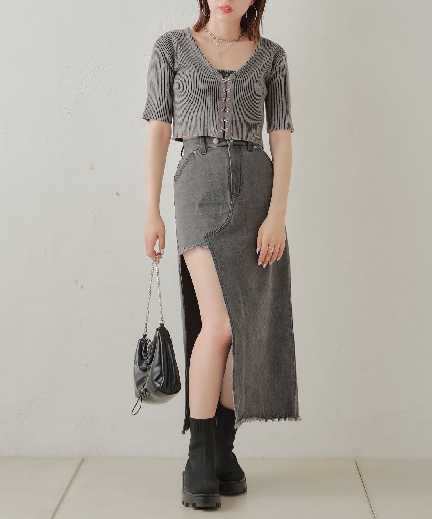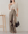 ・リブのキャミはトップスの上から重ねてビスチェとして着ても旬なコーデになります。
