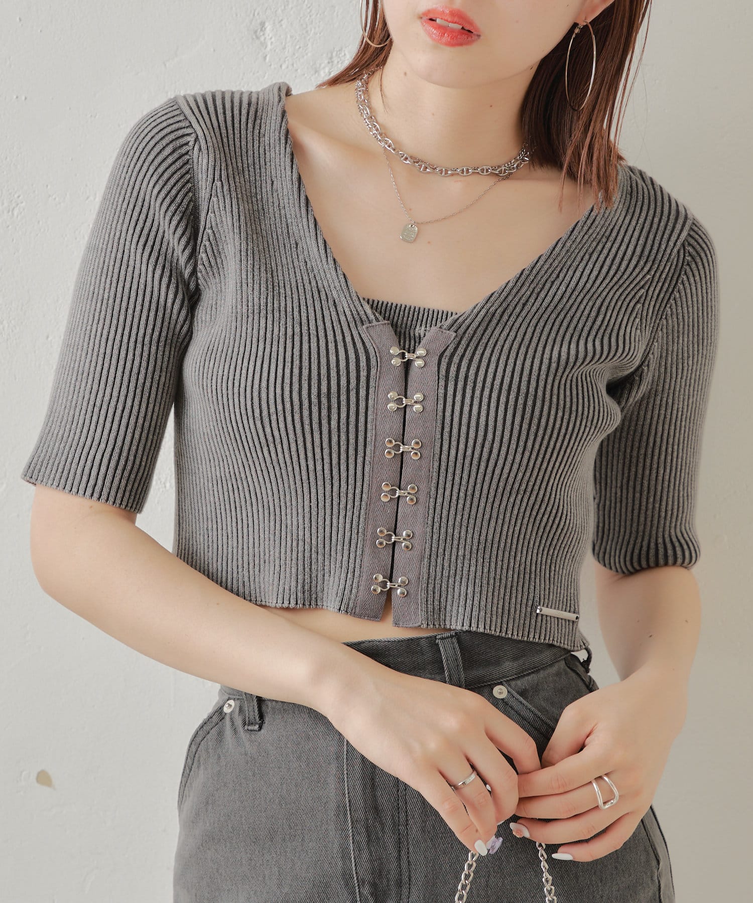 ・ホックデザインがアクセントなカーディガン