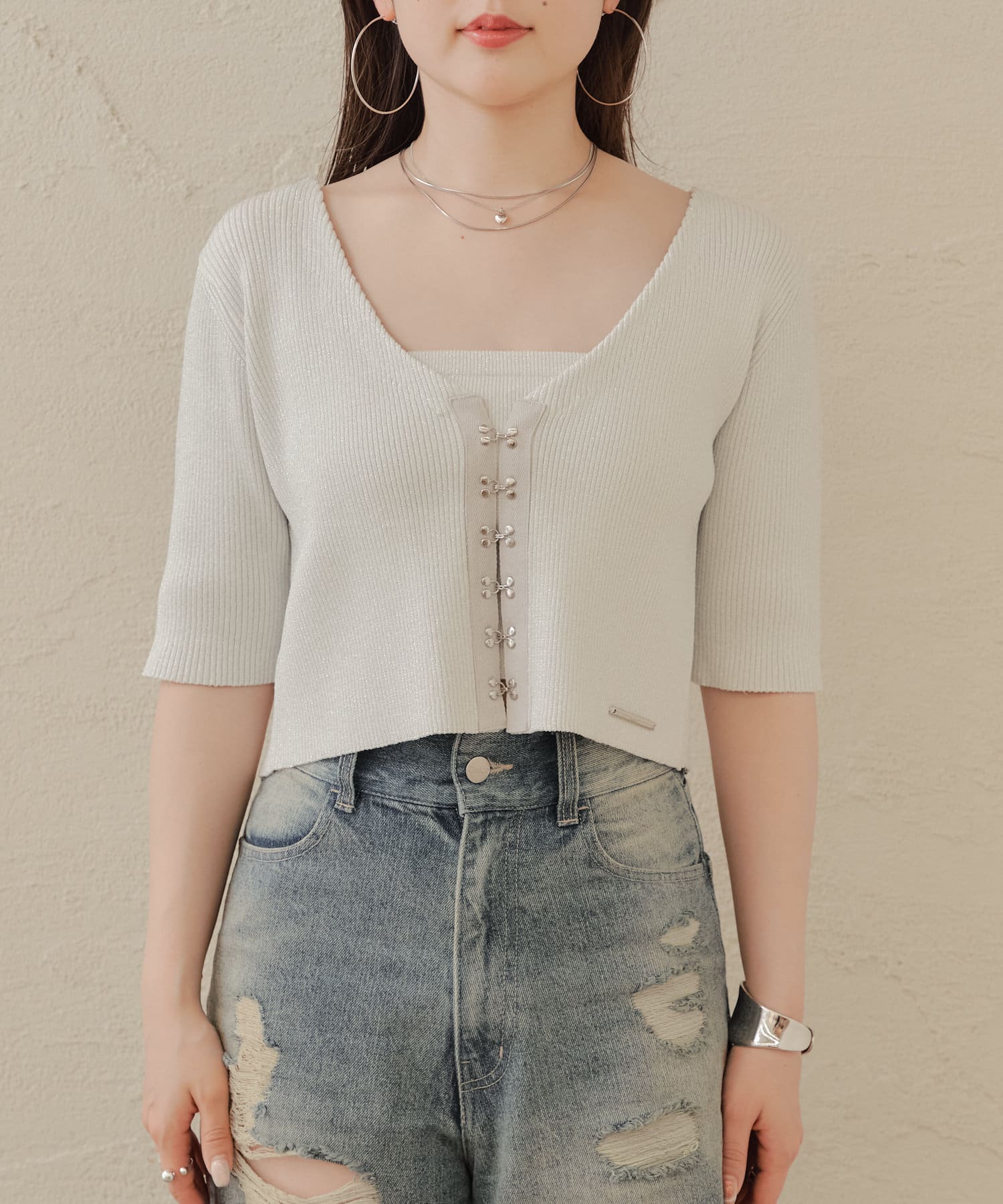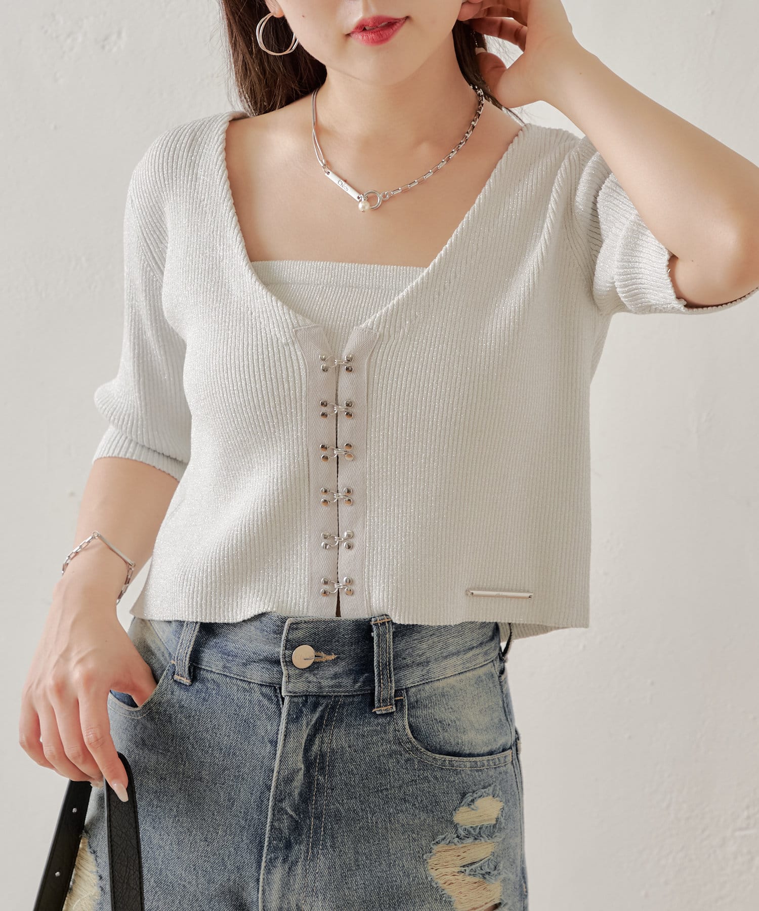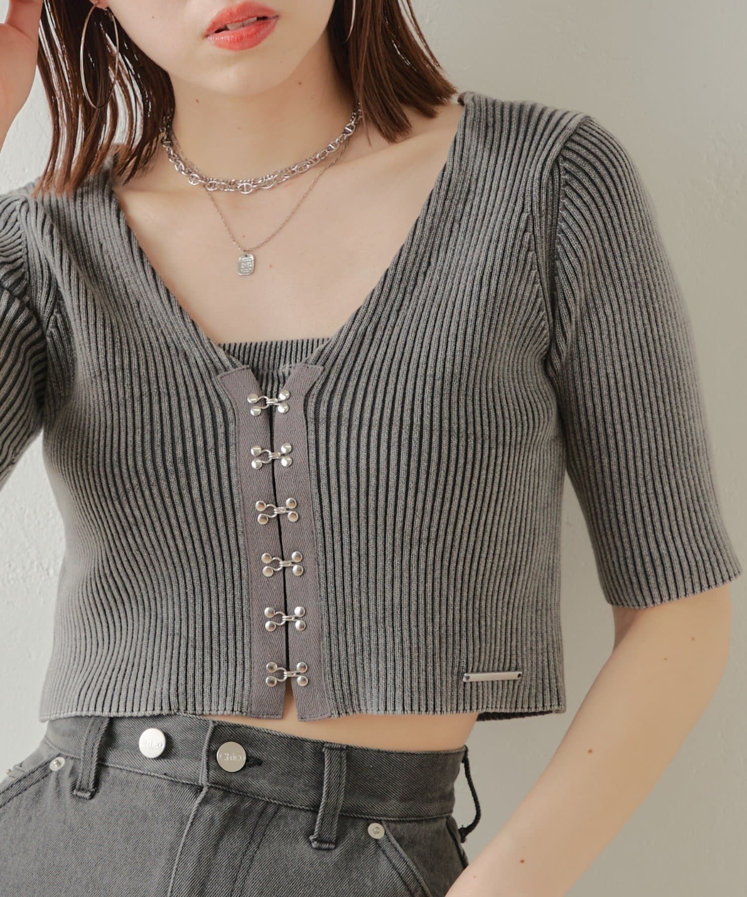 【Chico】ホックデザインチビカーディガンセット
