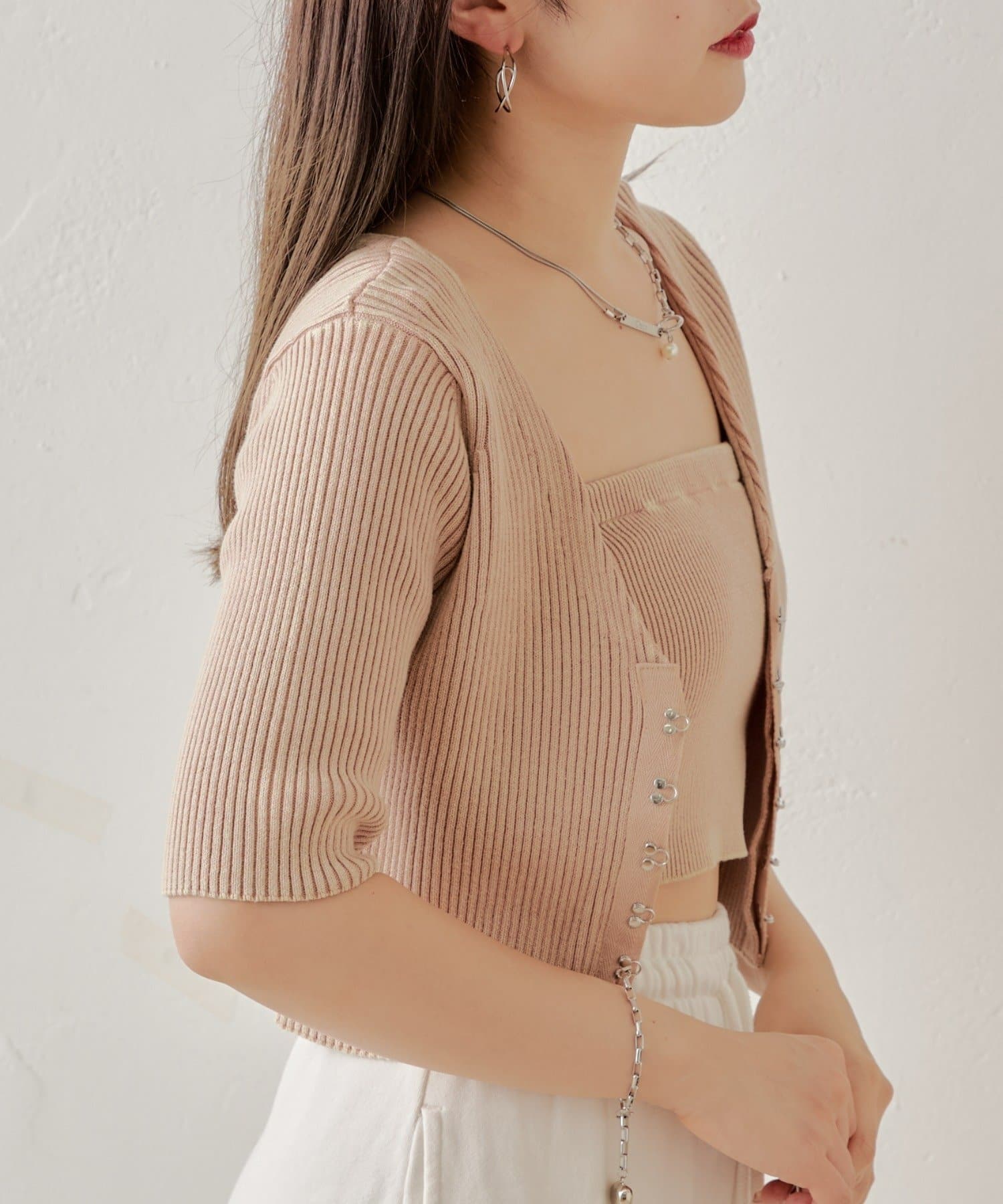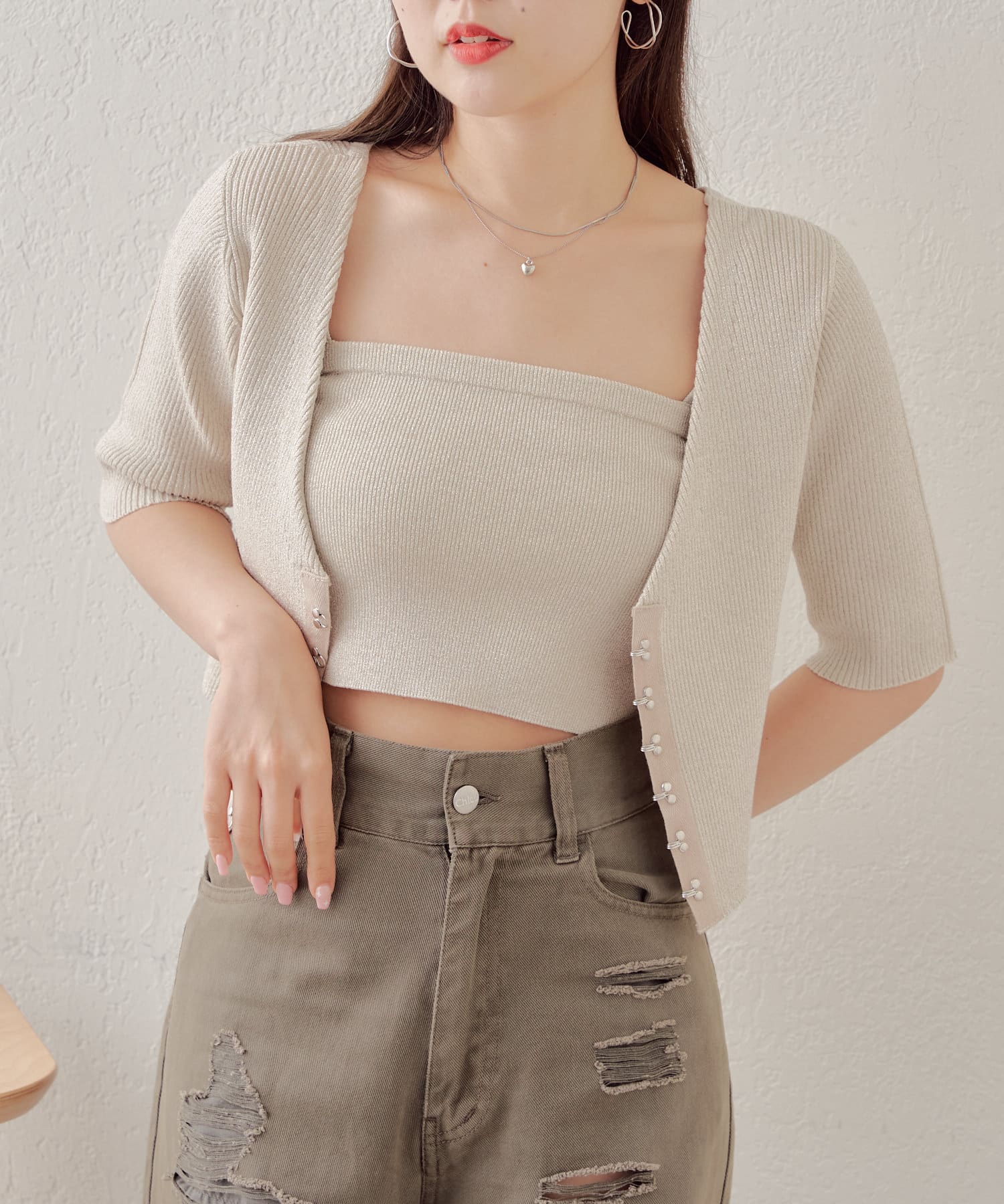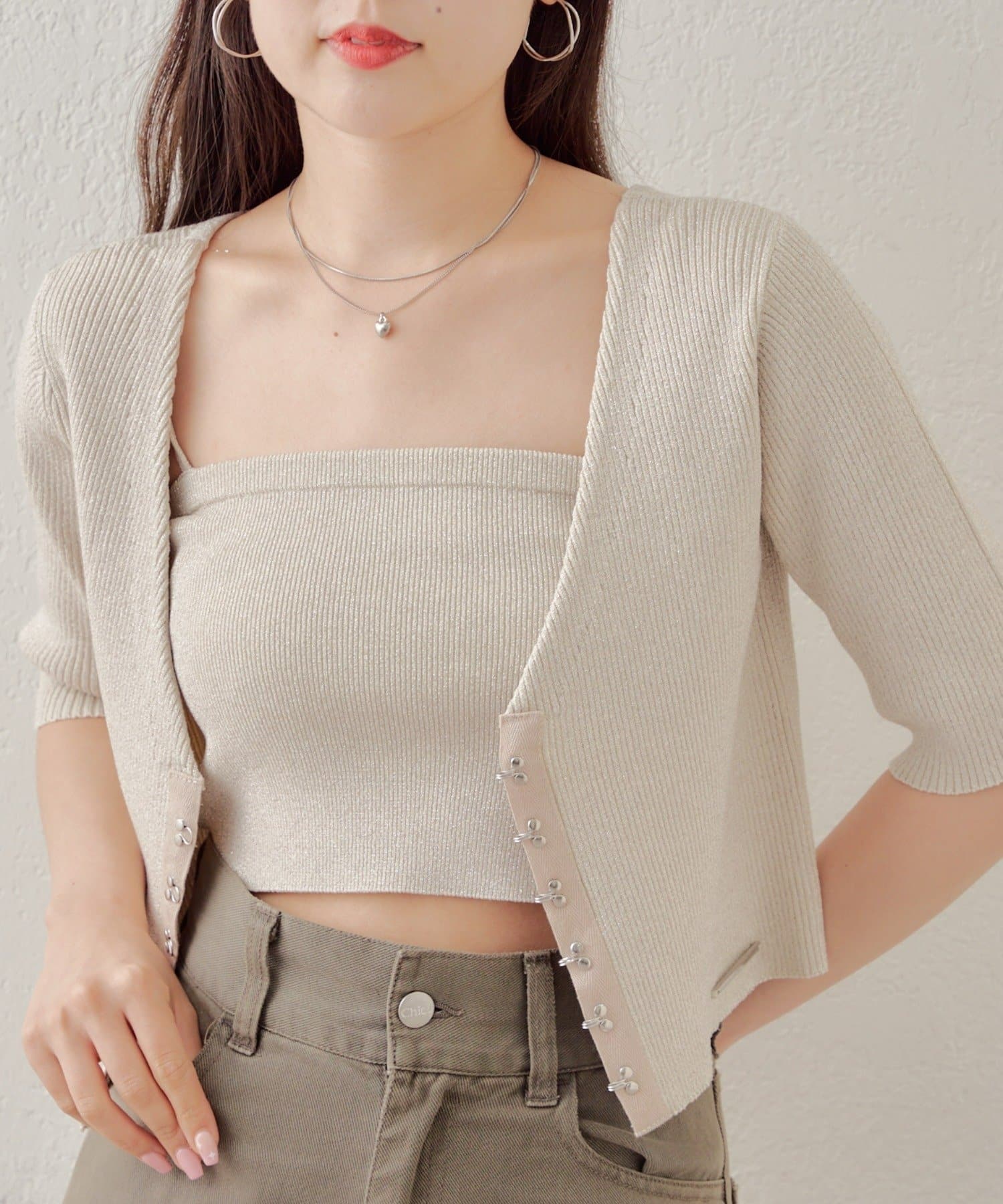 ホックデザインがトレンディなキャミカーデセット