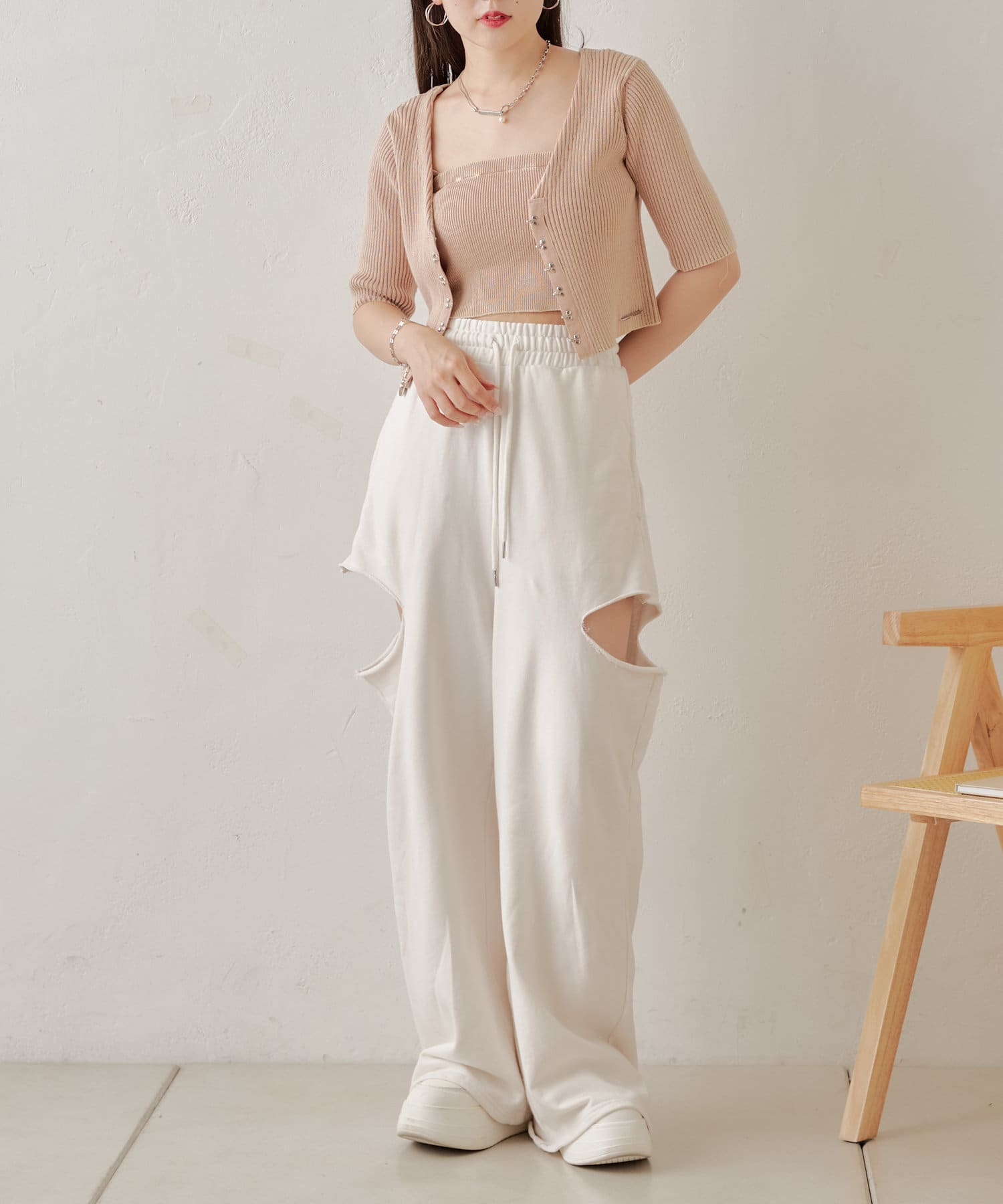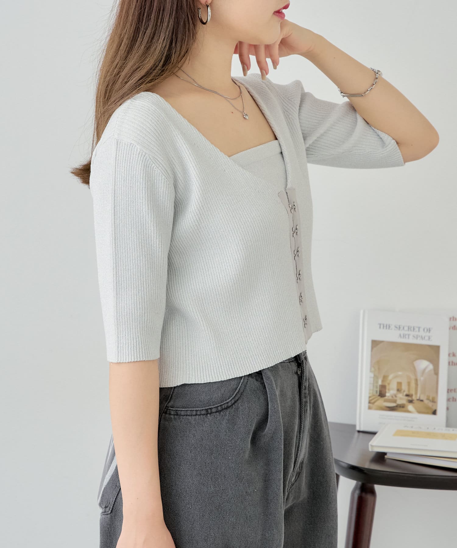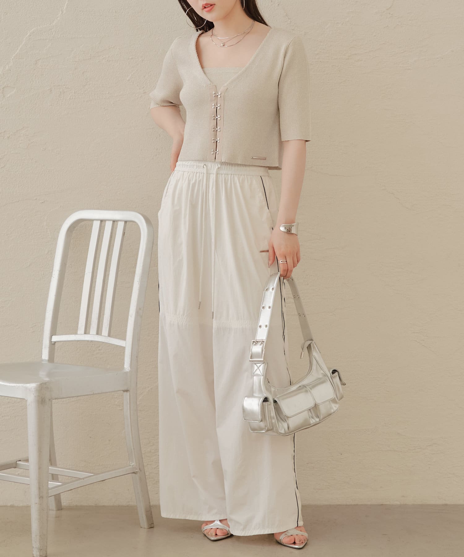 ホックデザインがトレンディなキャミカーデセット