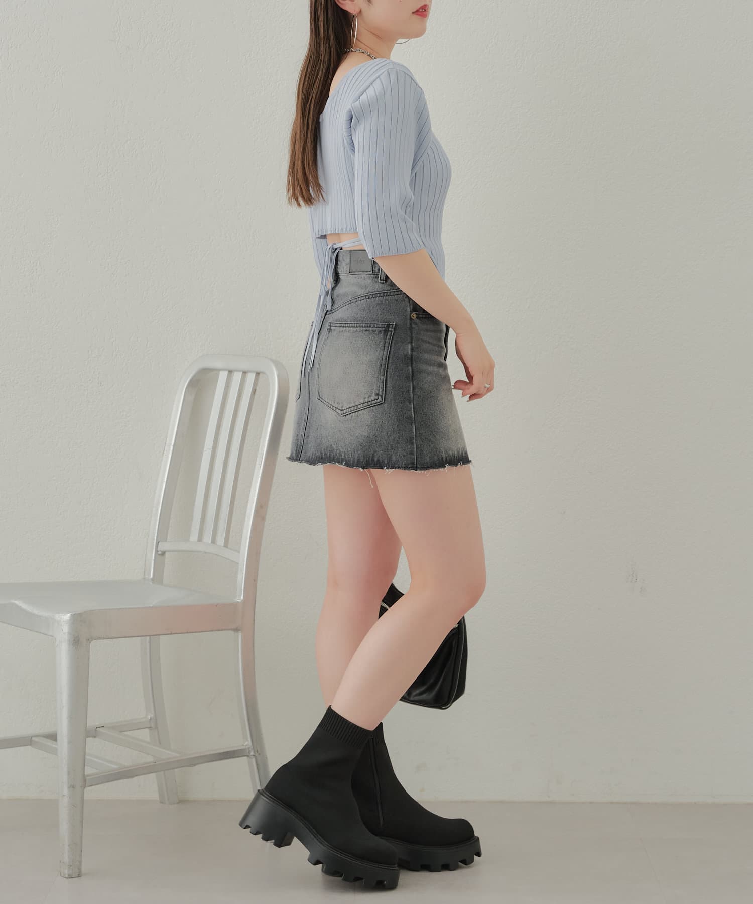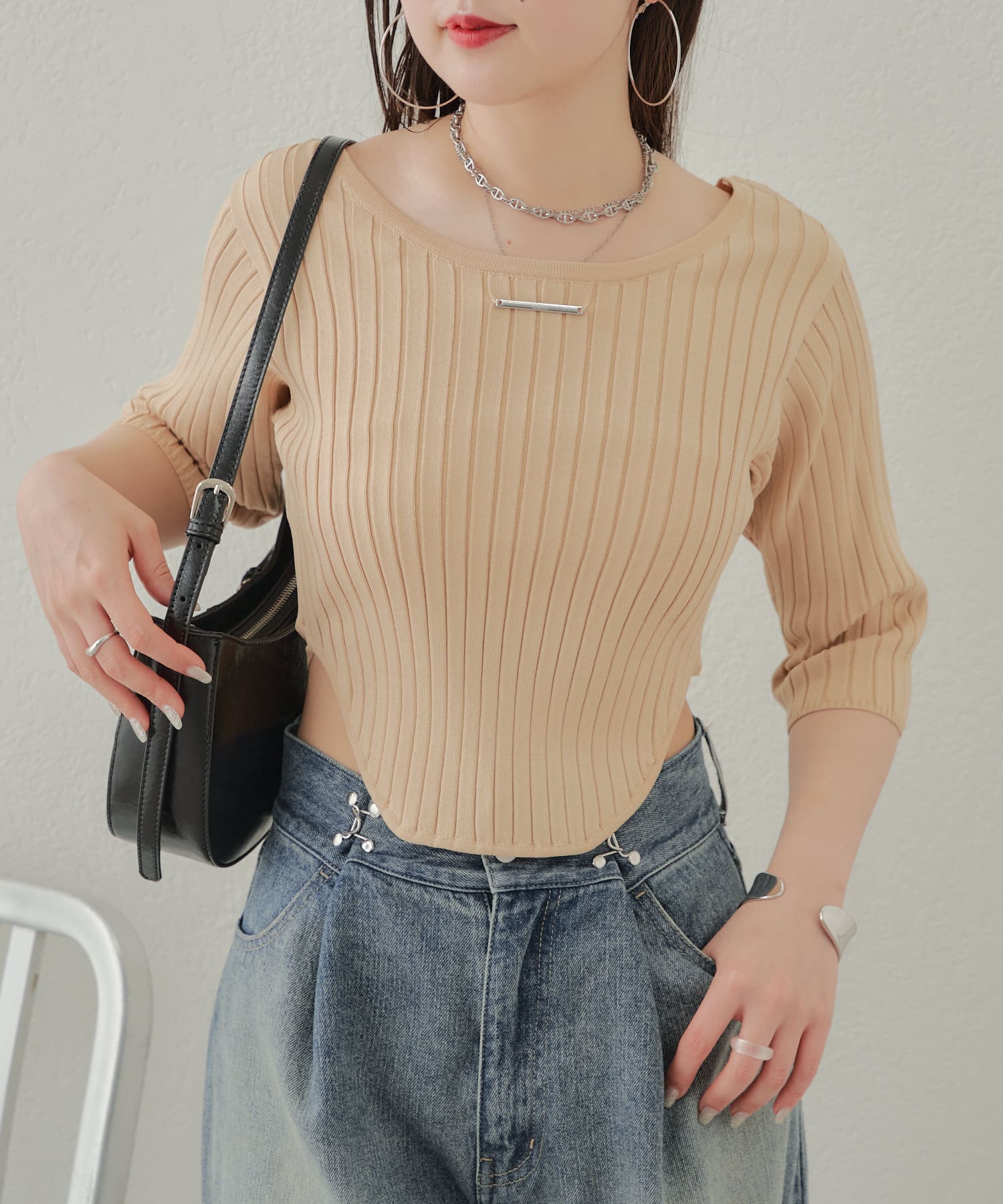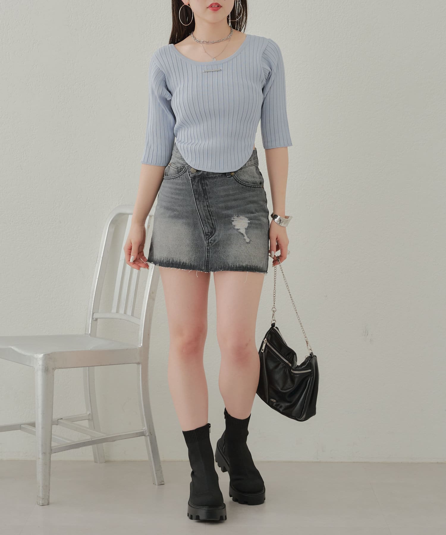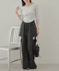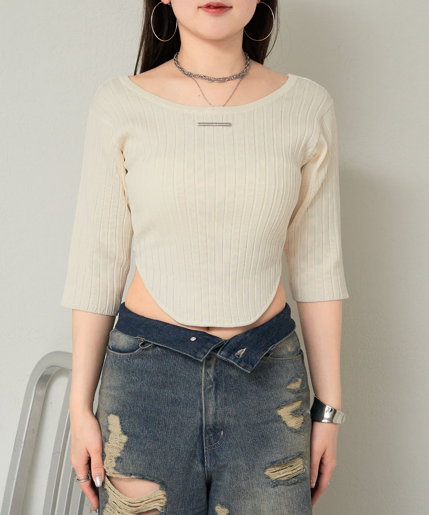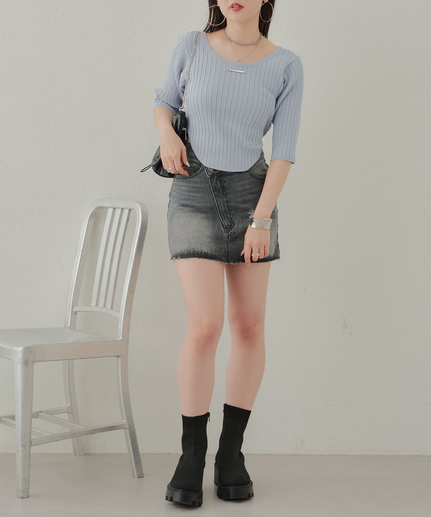 ・ローウエストボトム合わせやハイウエストデニムの口を折ることでたっぷりとラウンドデザインを見せて着るのが人気です。