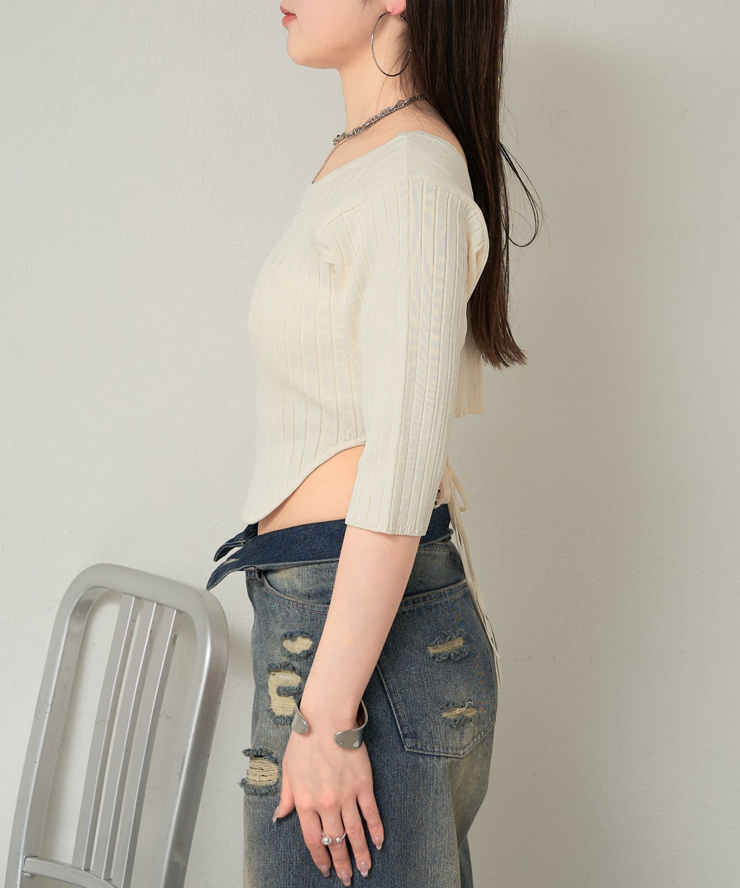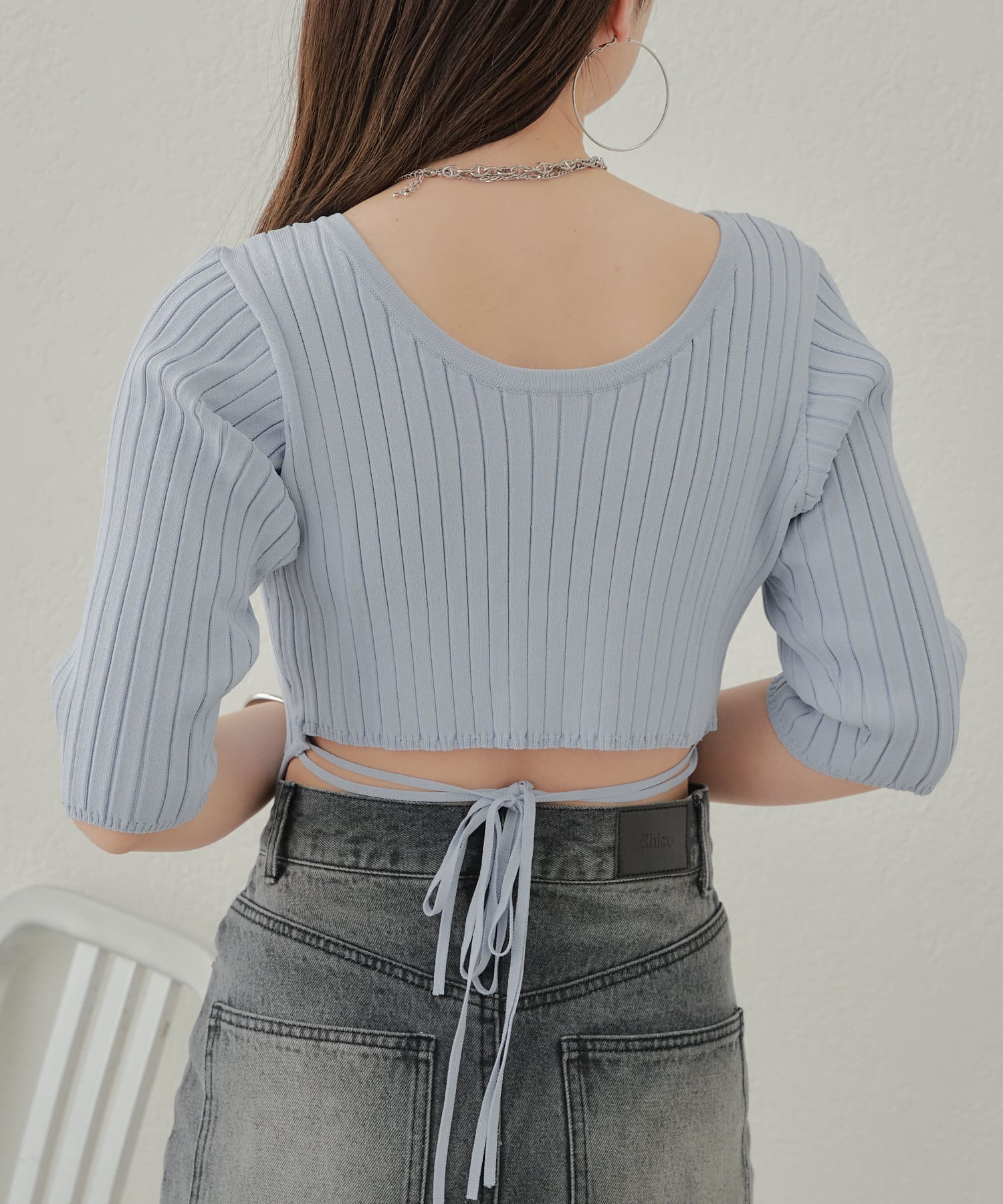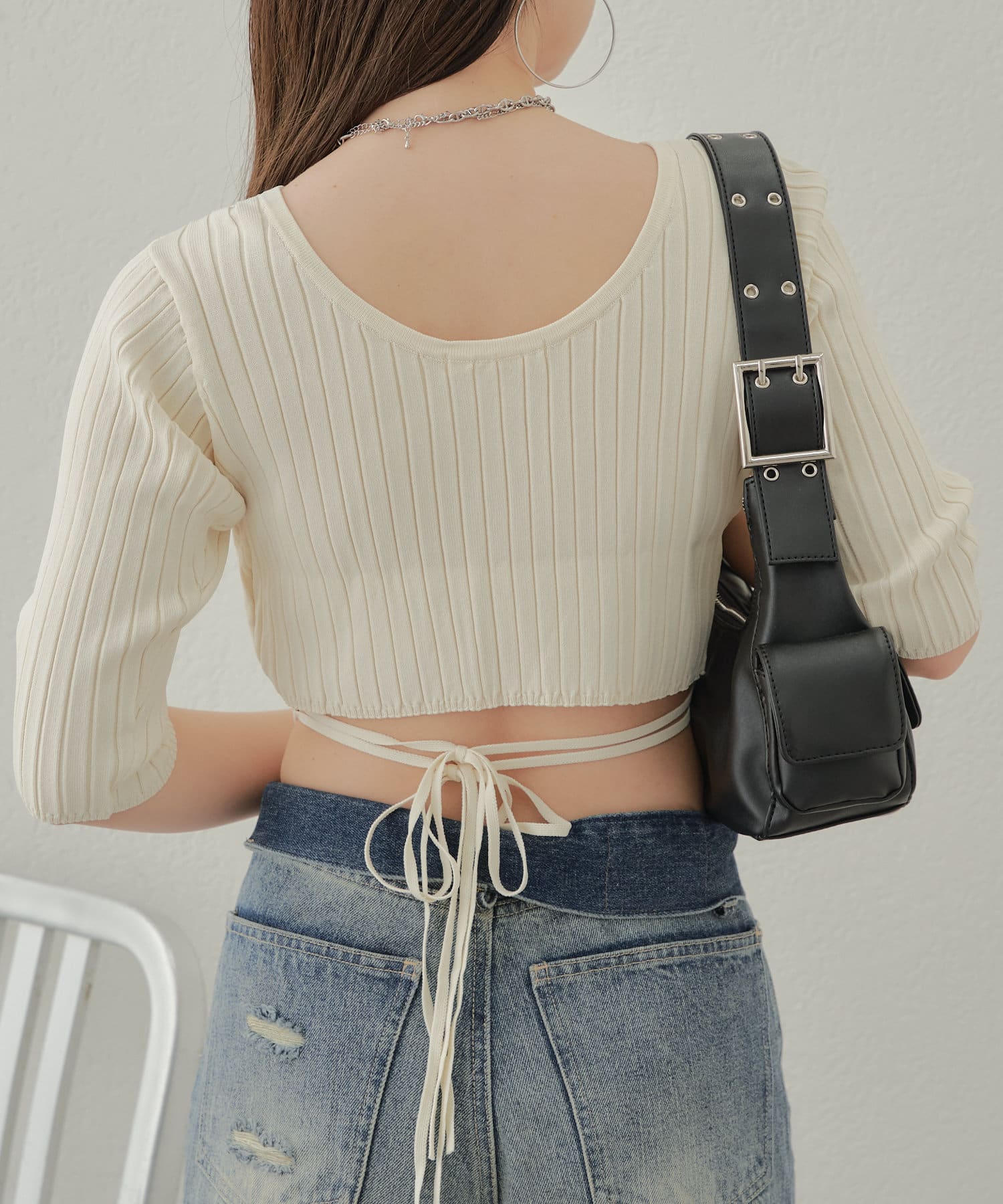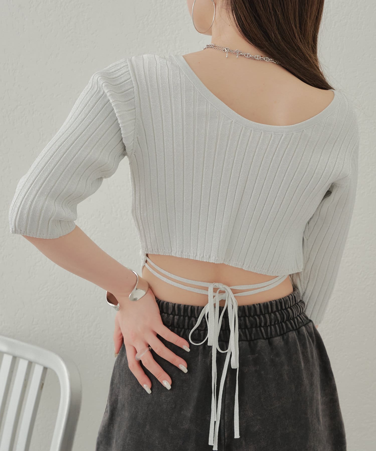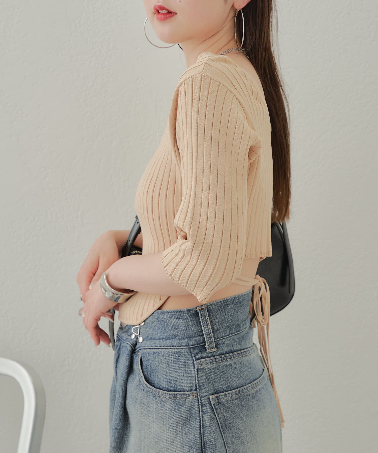 ・背中のリボンは女ぽさを際立てる旬なデザイン。