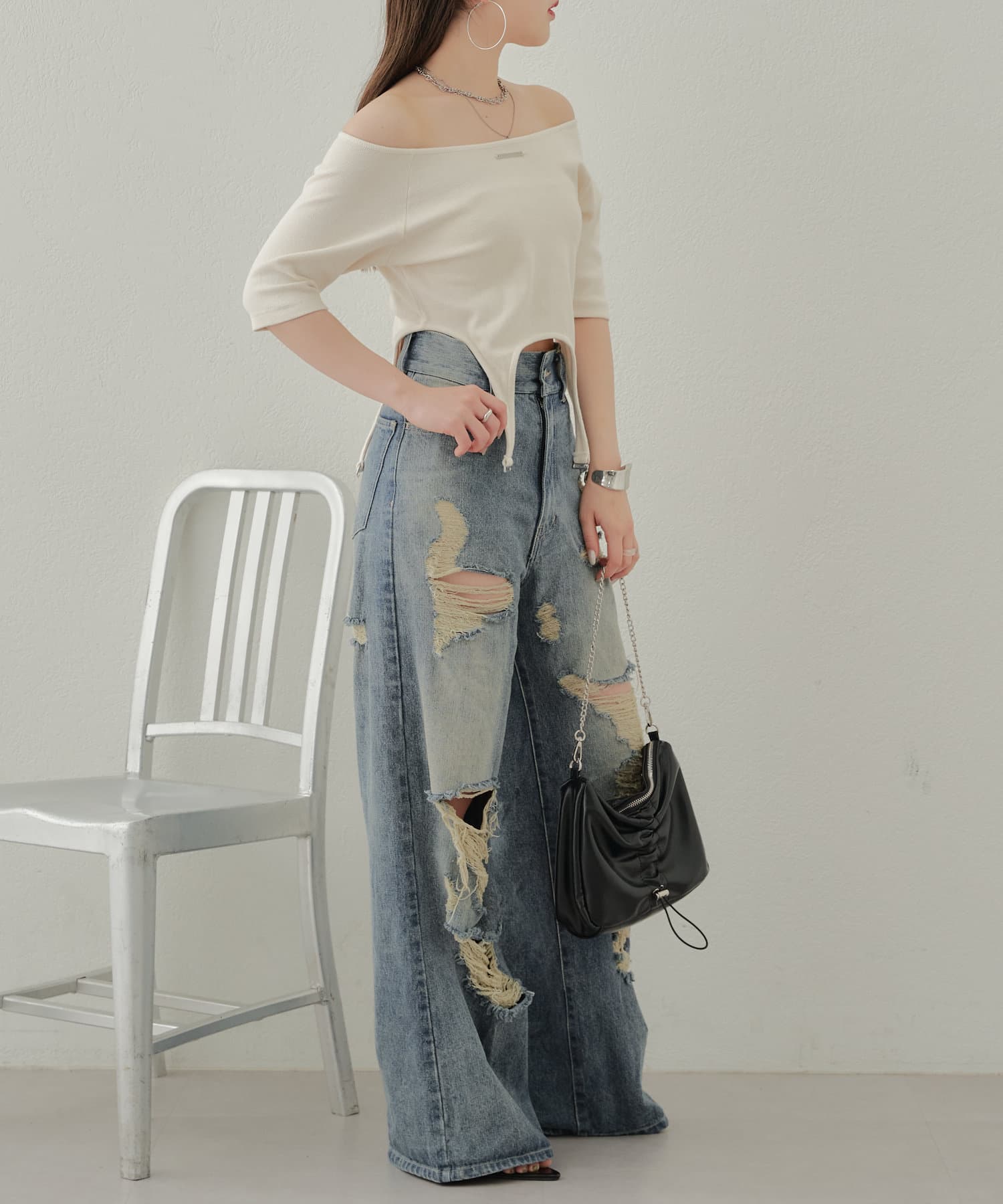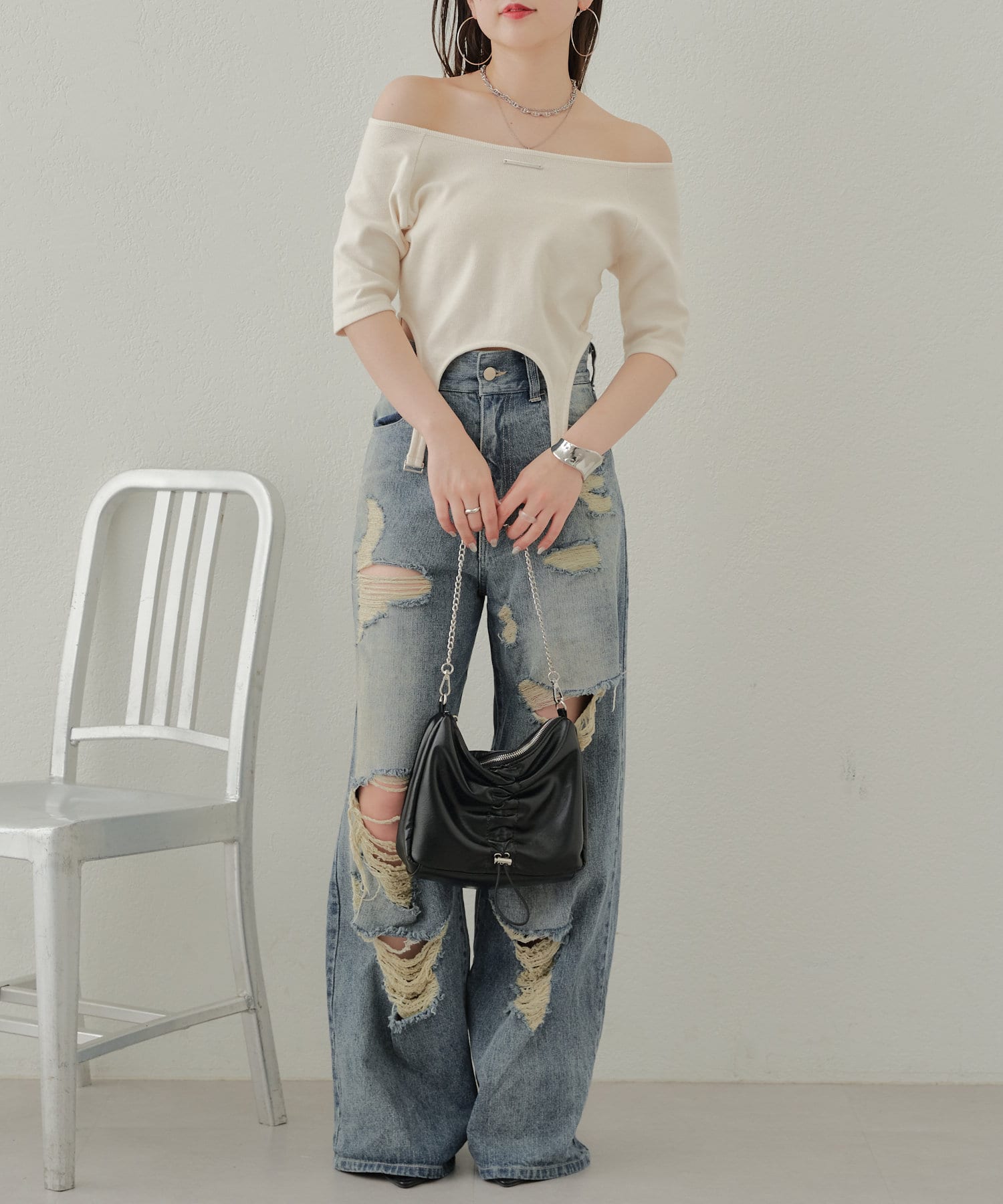 ・コンパクトトップスなのでワイドデニムやルーズなパンツ合わせがおすすめ