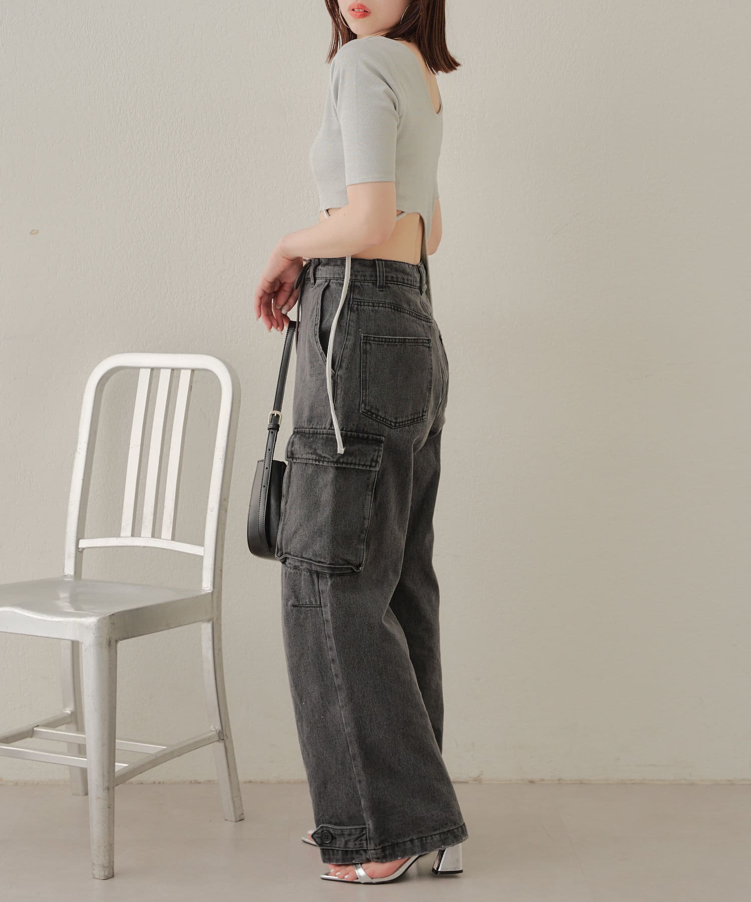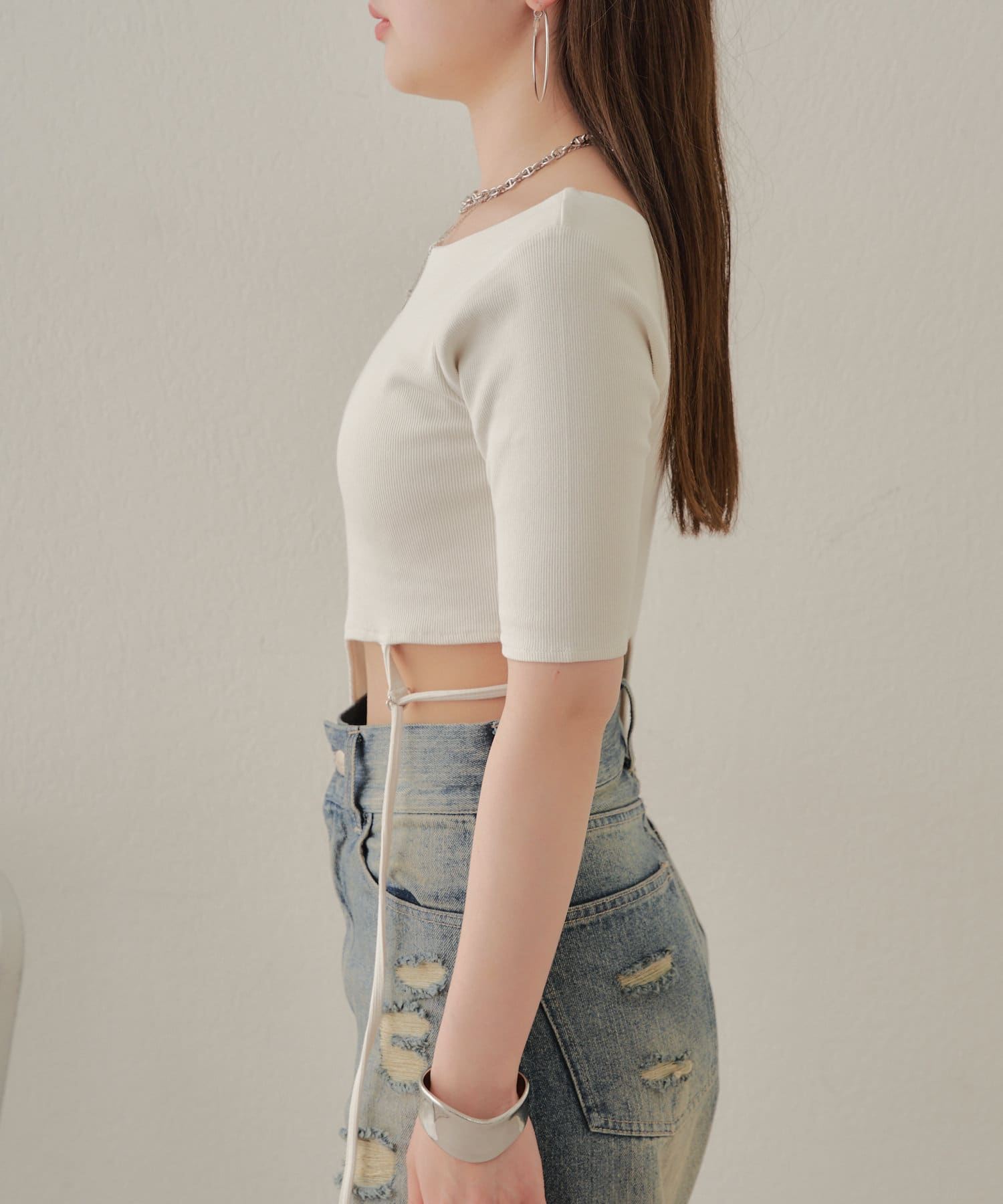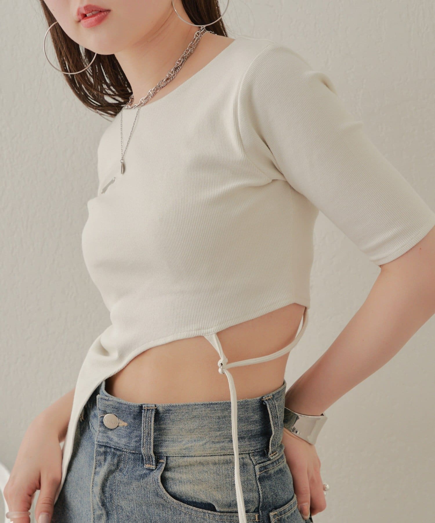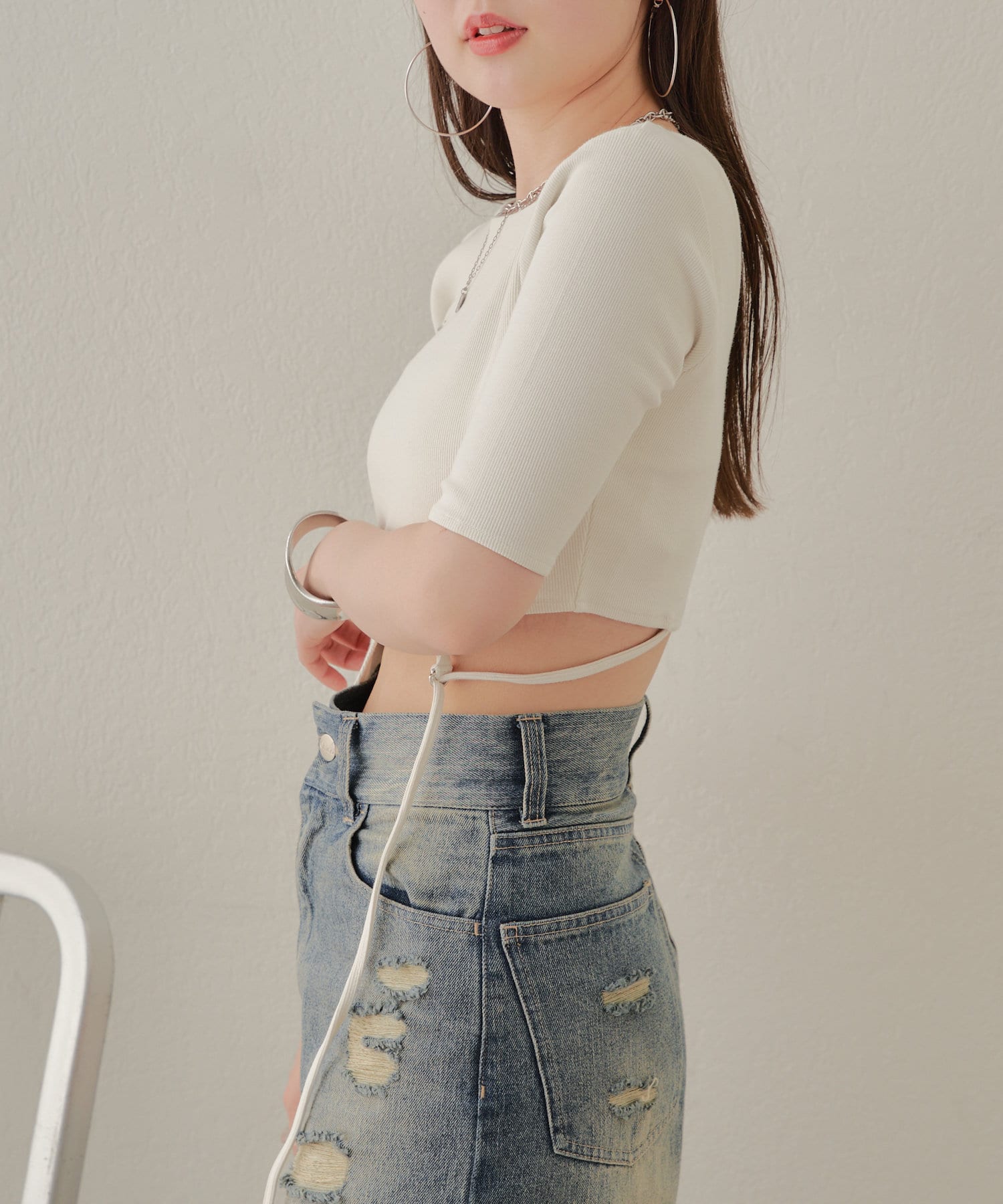 ・ハイウエストデニムを合わせてウエストの程よい肌見せを楽しんで。