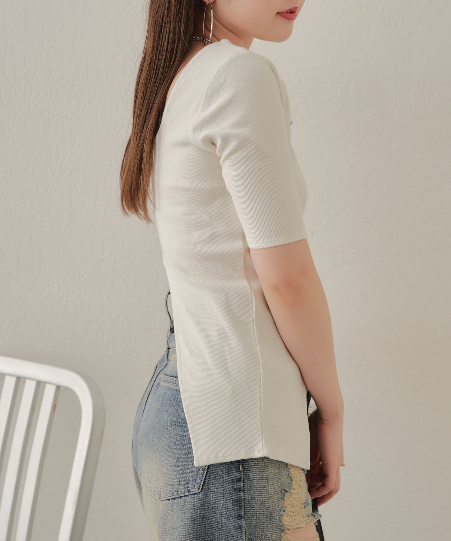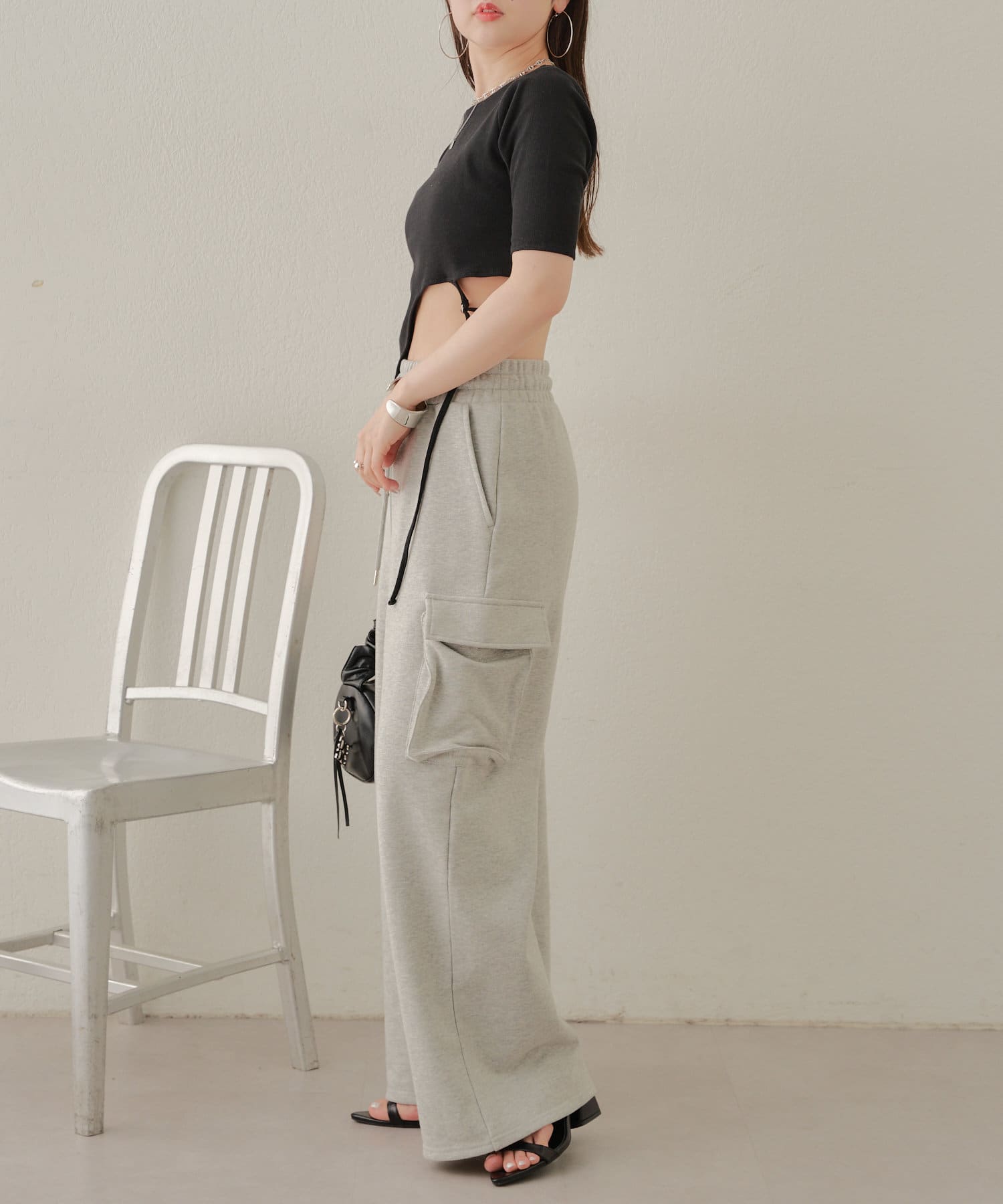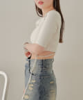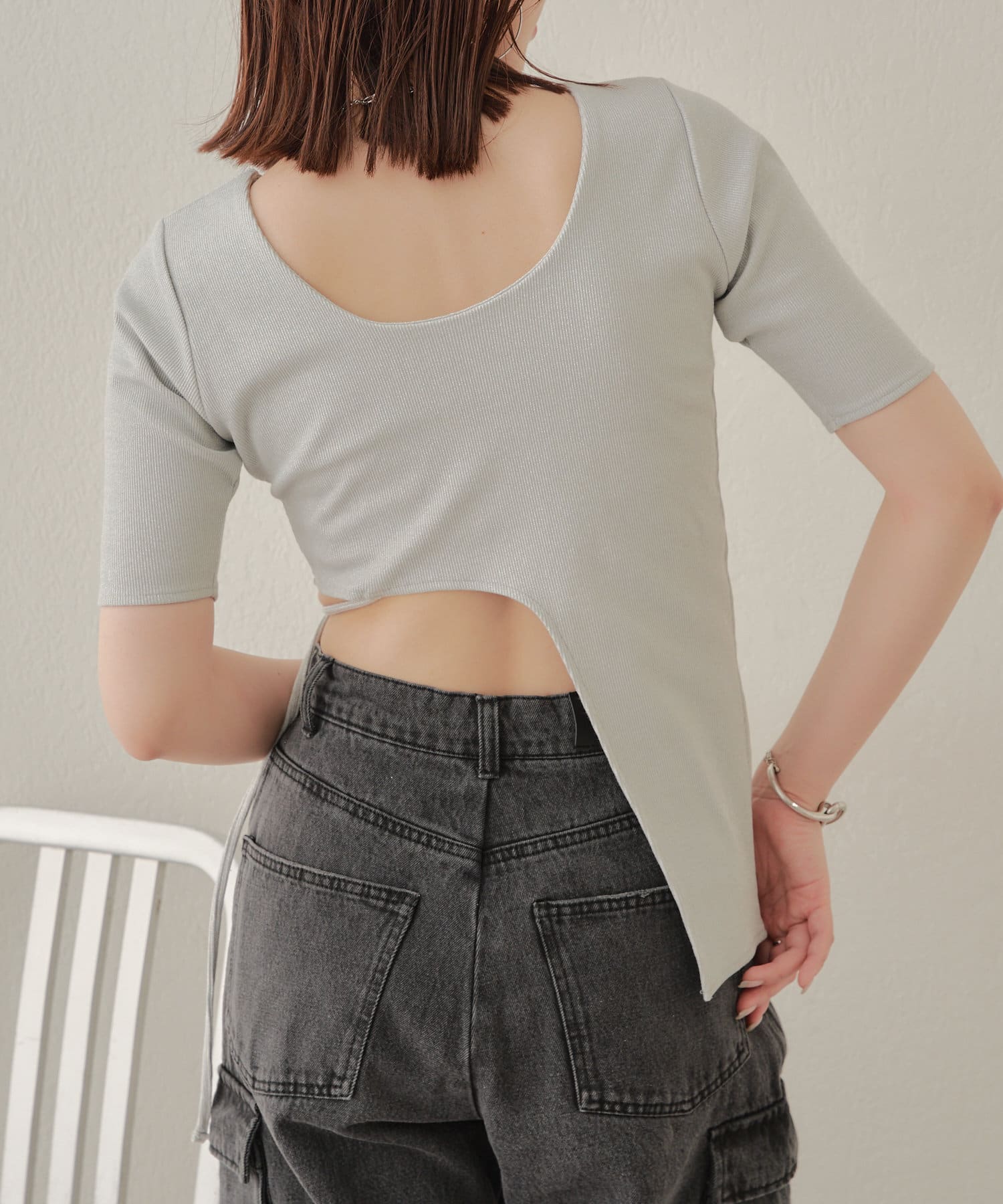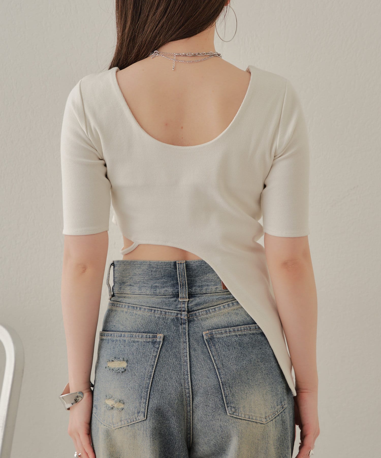 ・ハイウエストデニムを合わせてウエストの程よい肌見せを楽しんで。