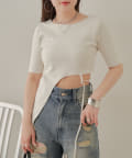 ・アシンメトリーデザインが目を惹くモードなトップス