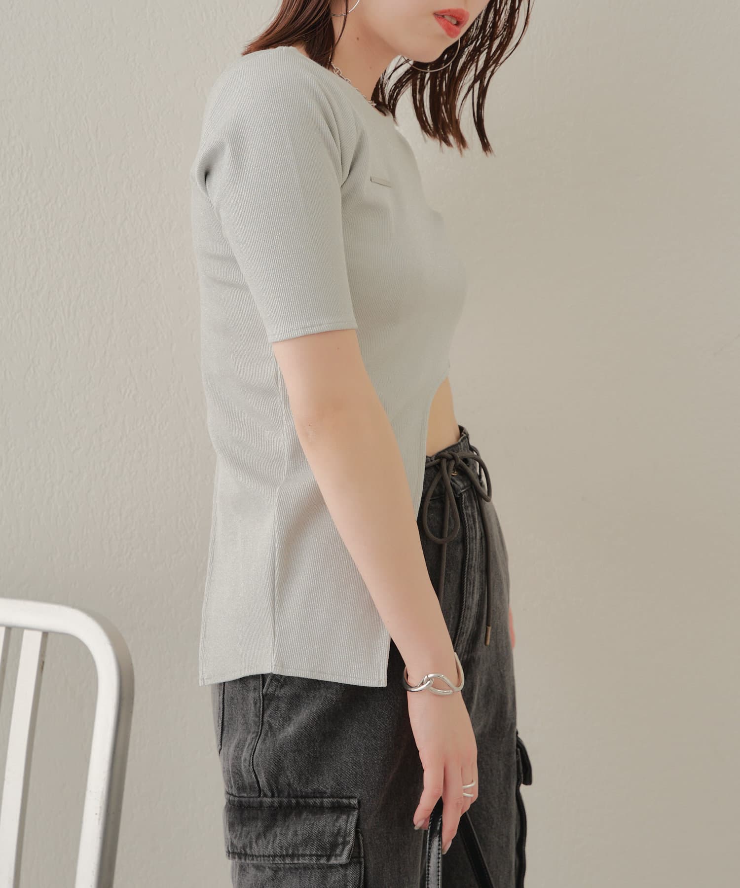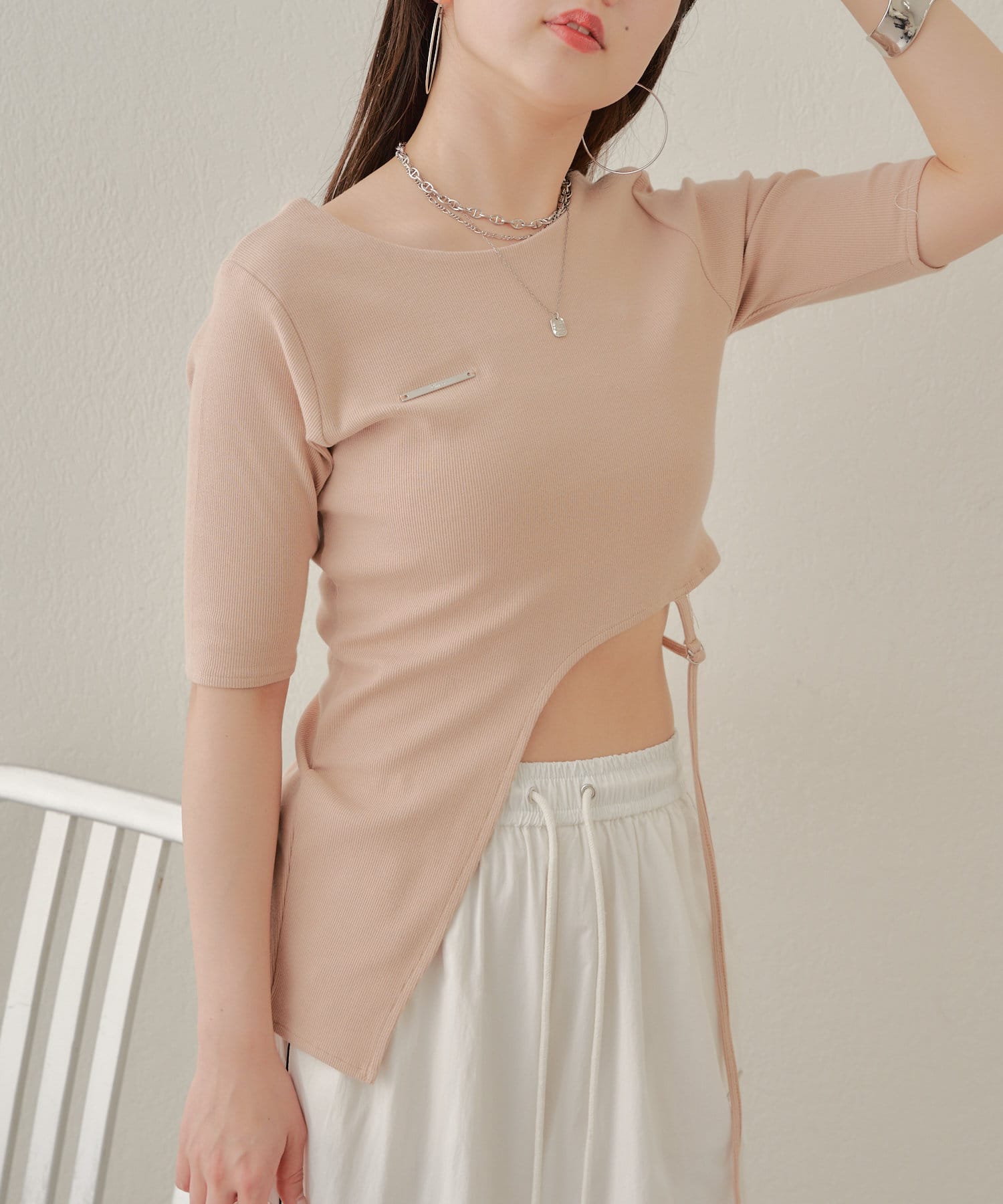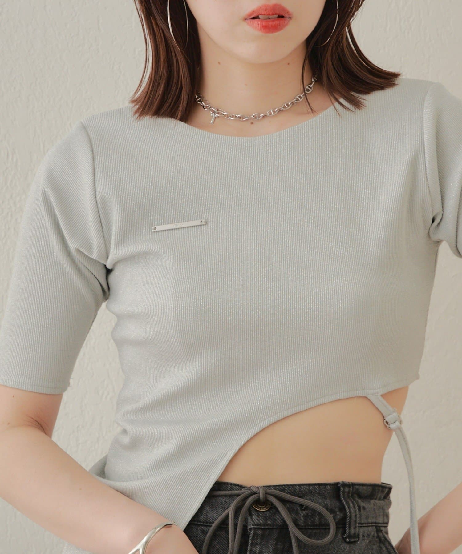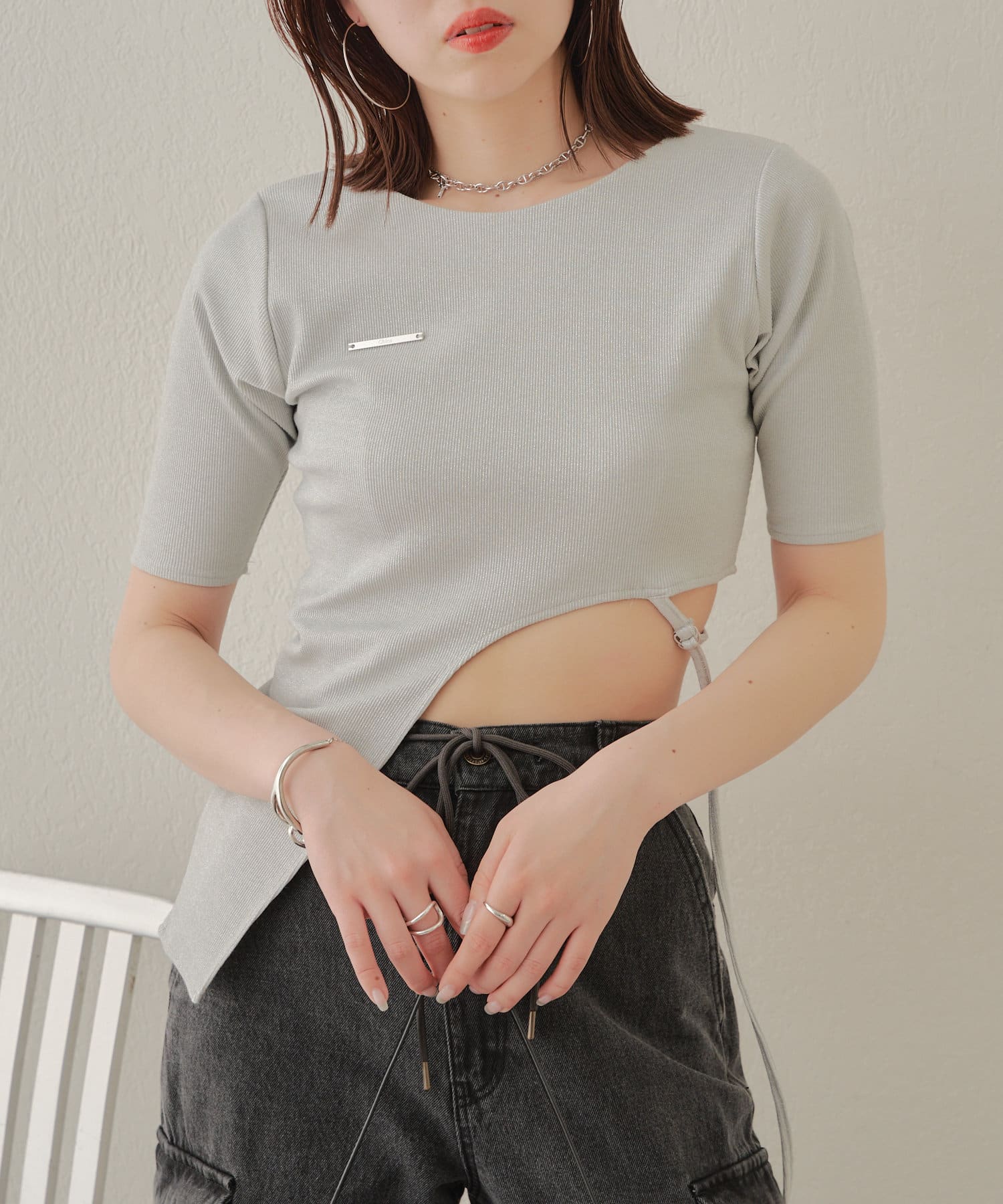 【Chico】テレコリブアシンメトリーサイドベルトT
