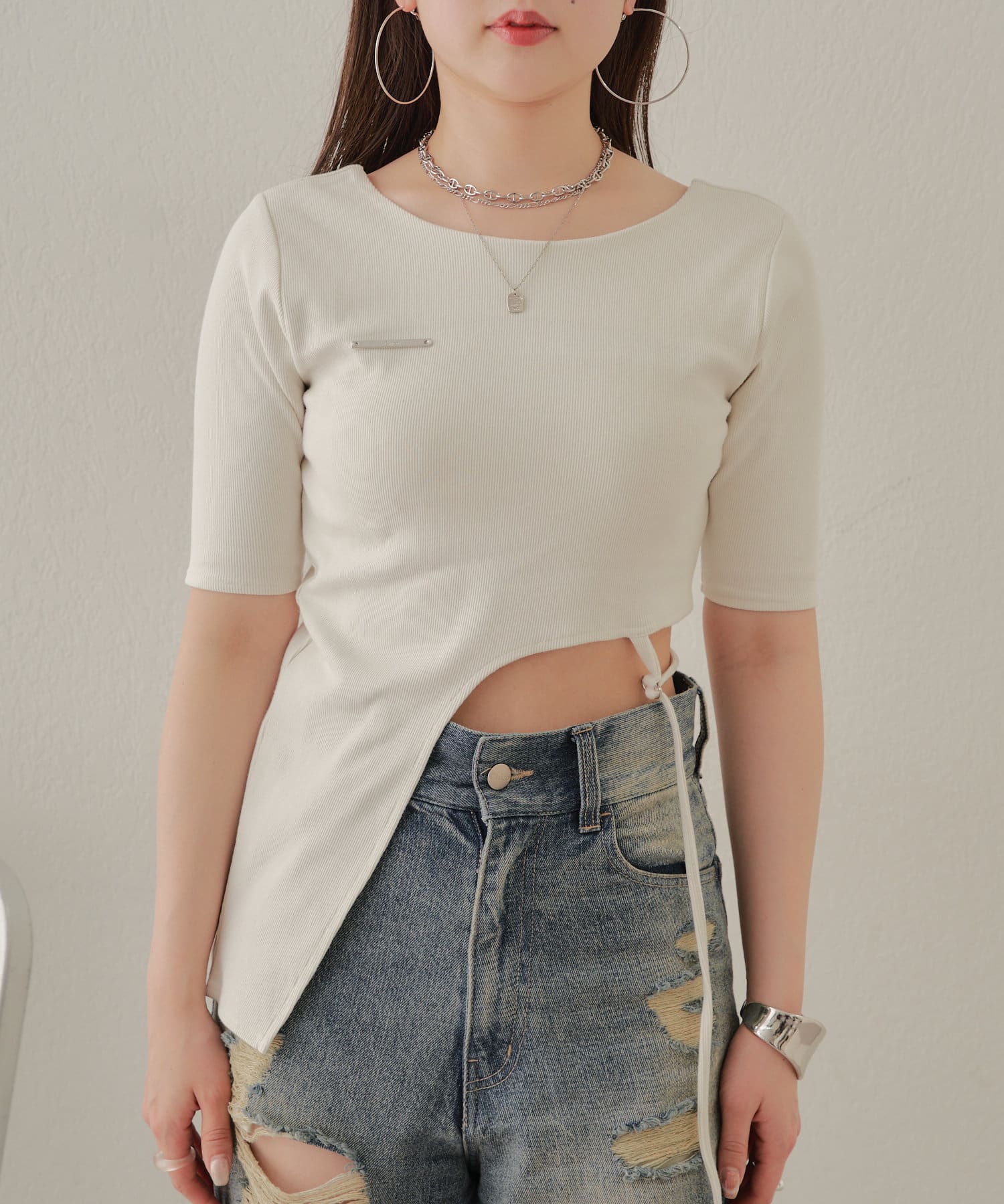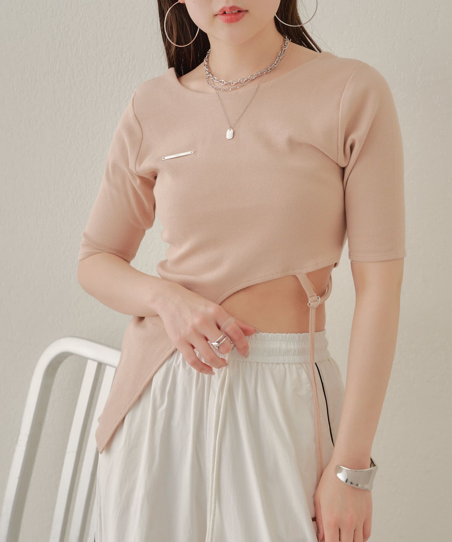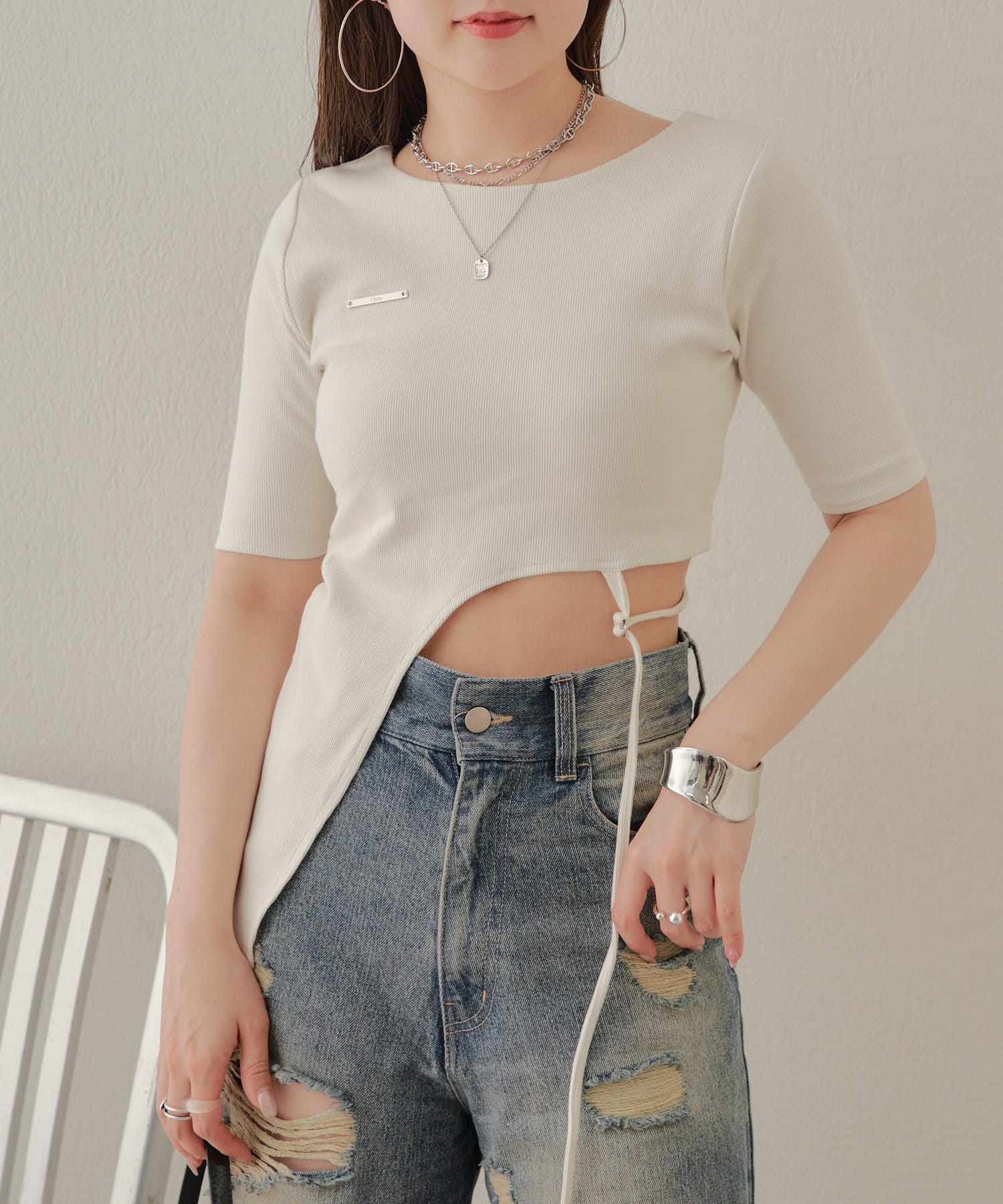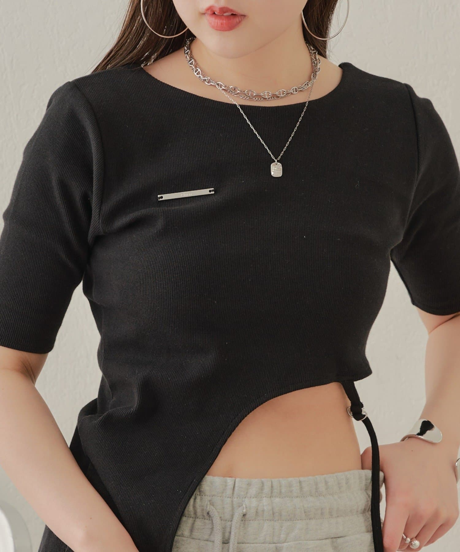 【Chico】テレコリブアシンメトリーサイドベルトT