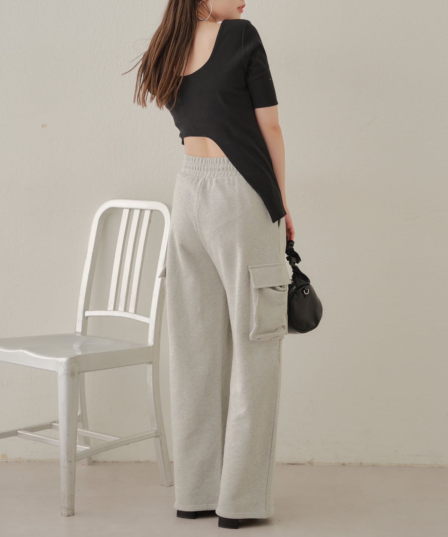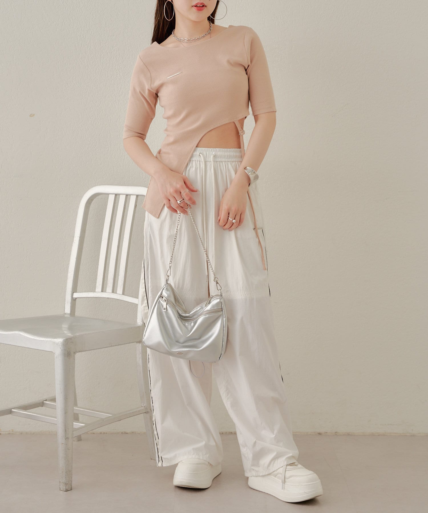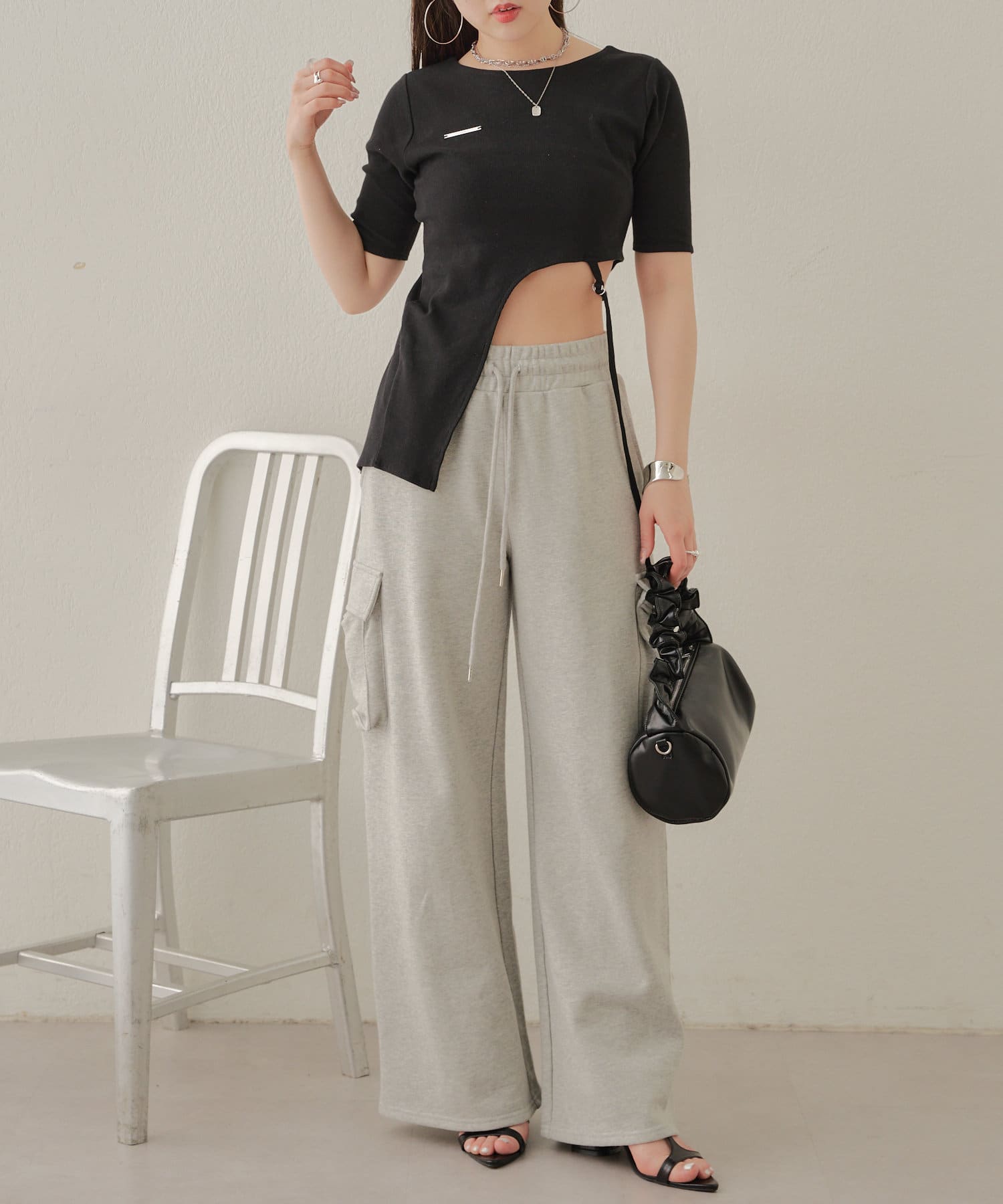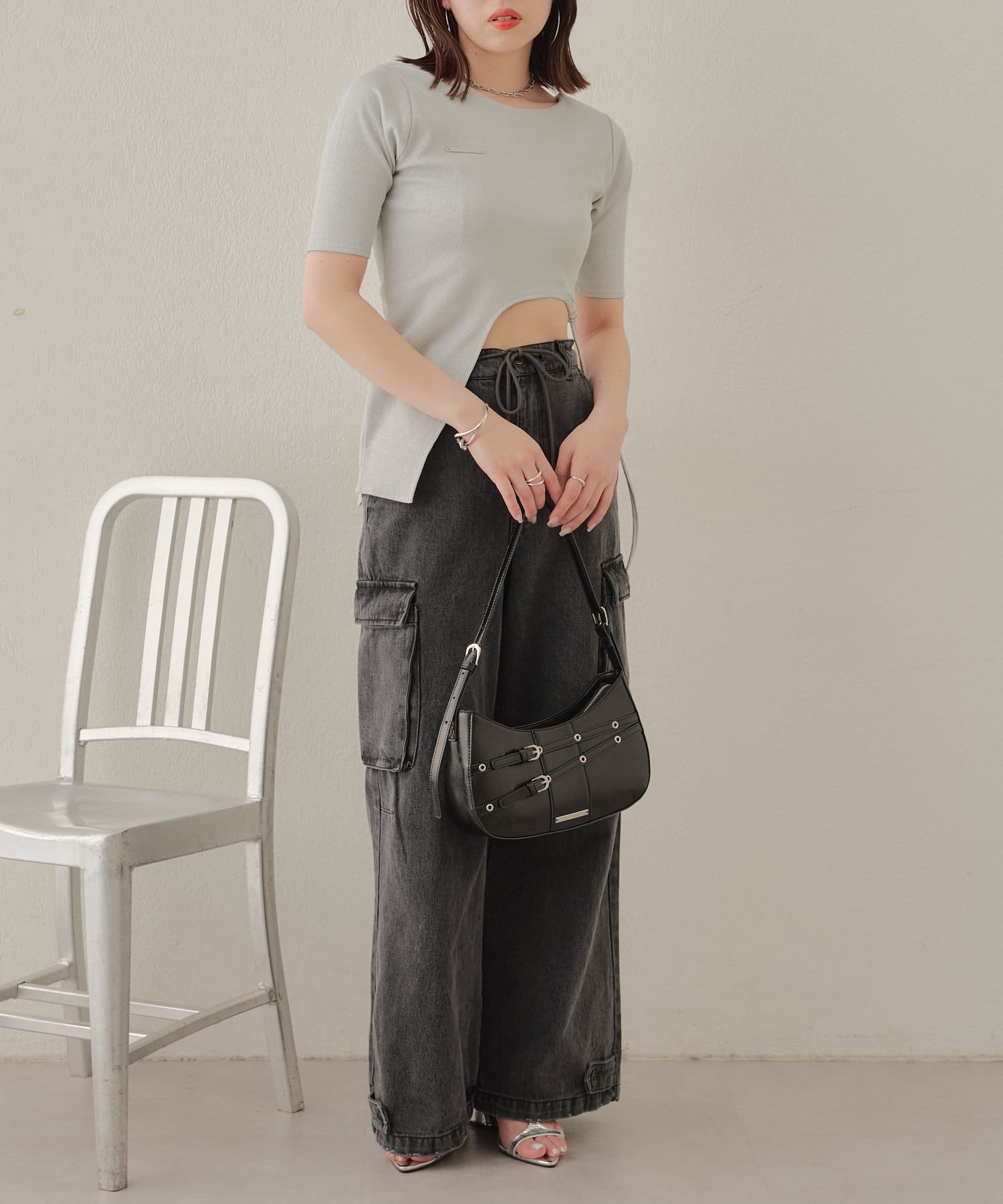 【Chico】テレコリブアシンメトリーサイドベルトT