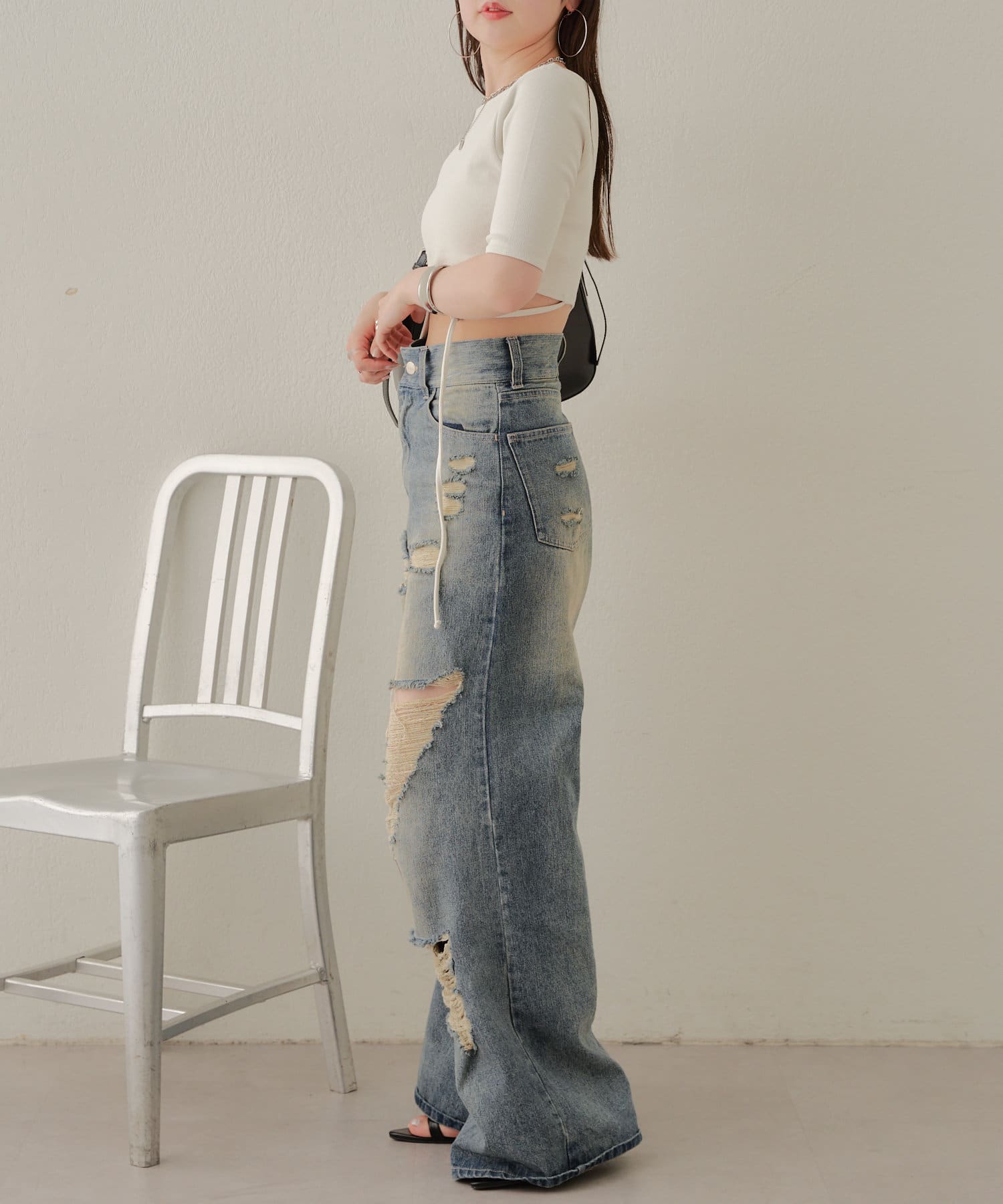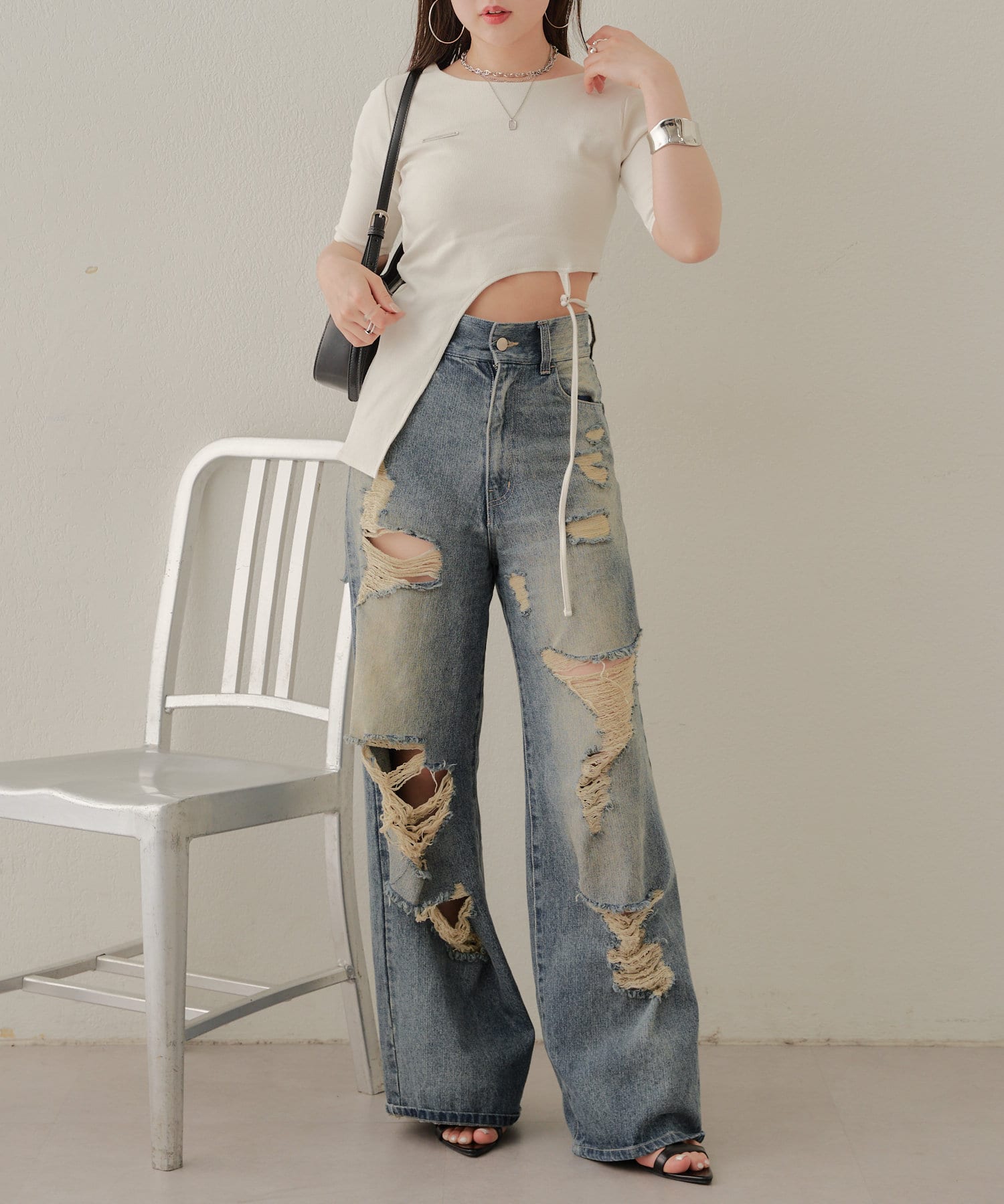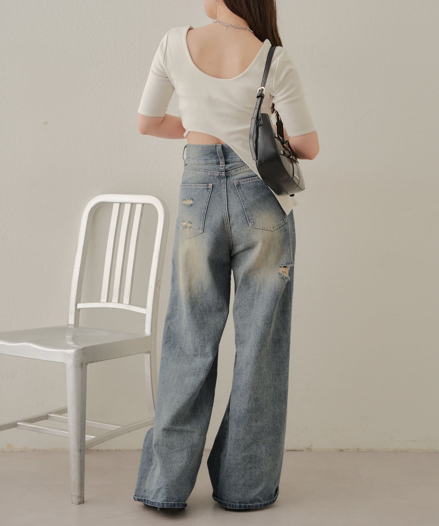 ▷︎おすすめデニム:【ダメージワイドデニムパンツ】
