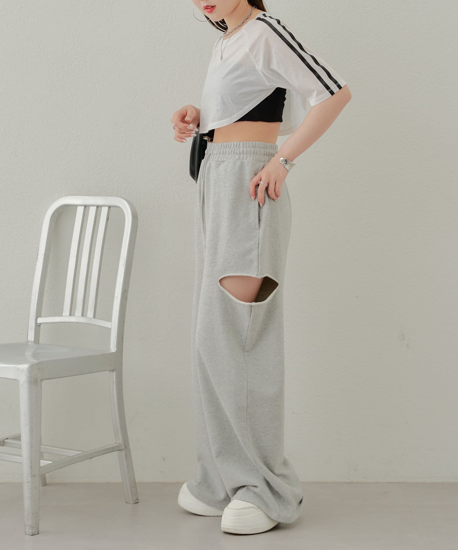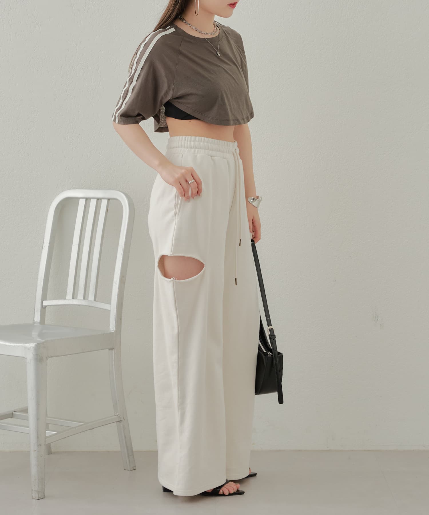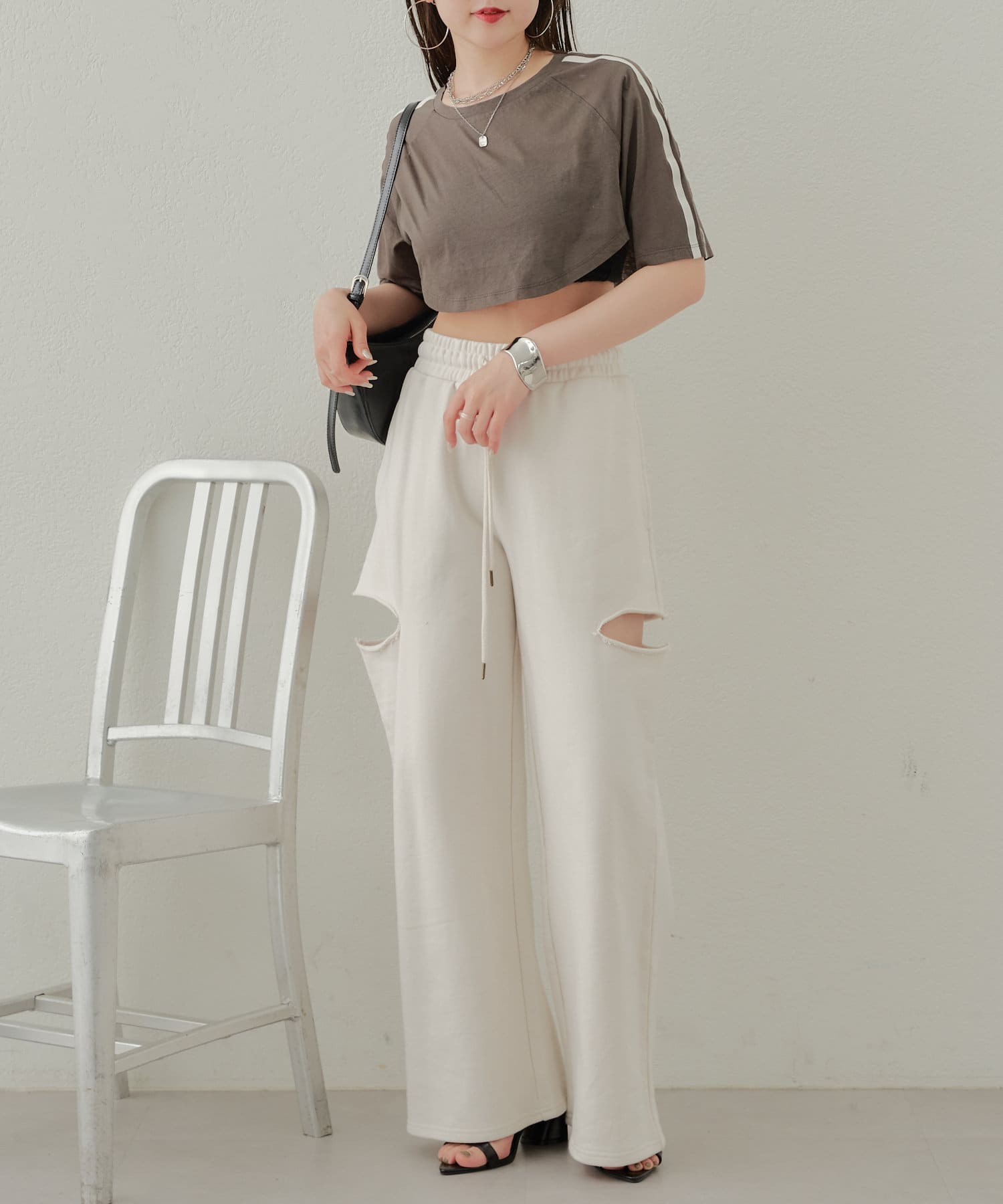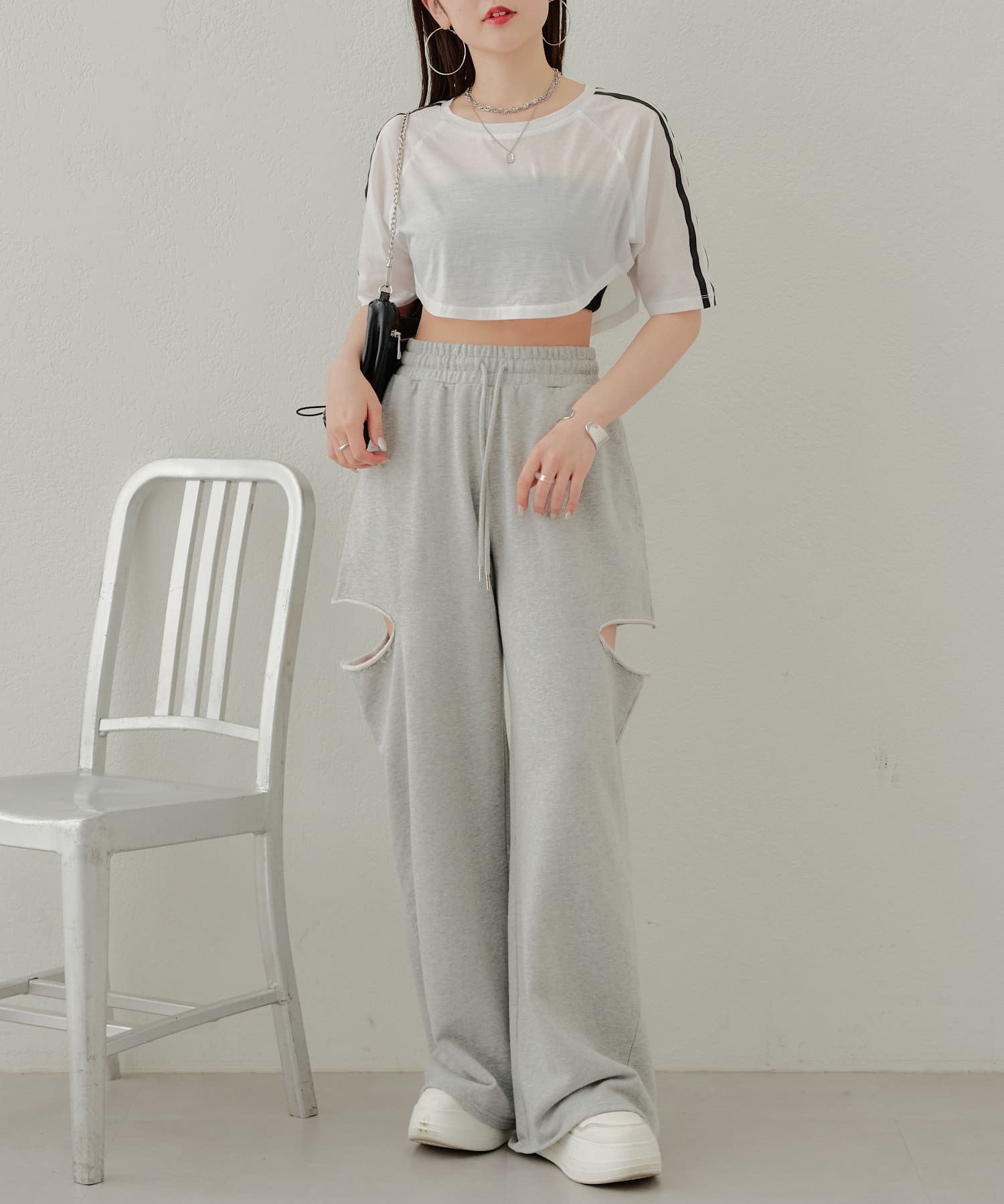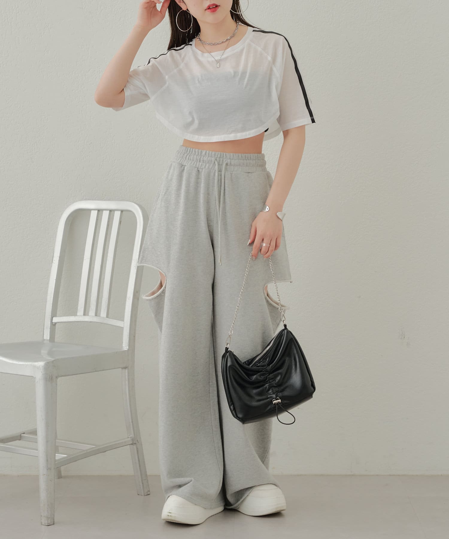 ・スウェットパンツ合わせのY2Kコーデも人気。