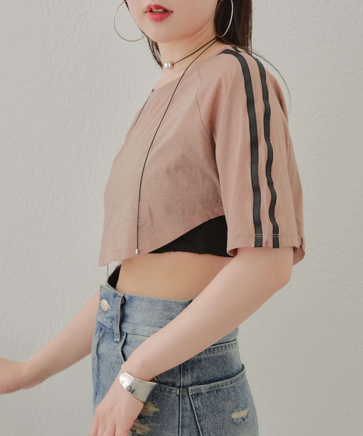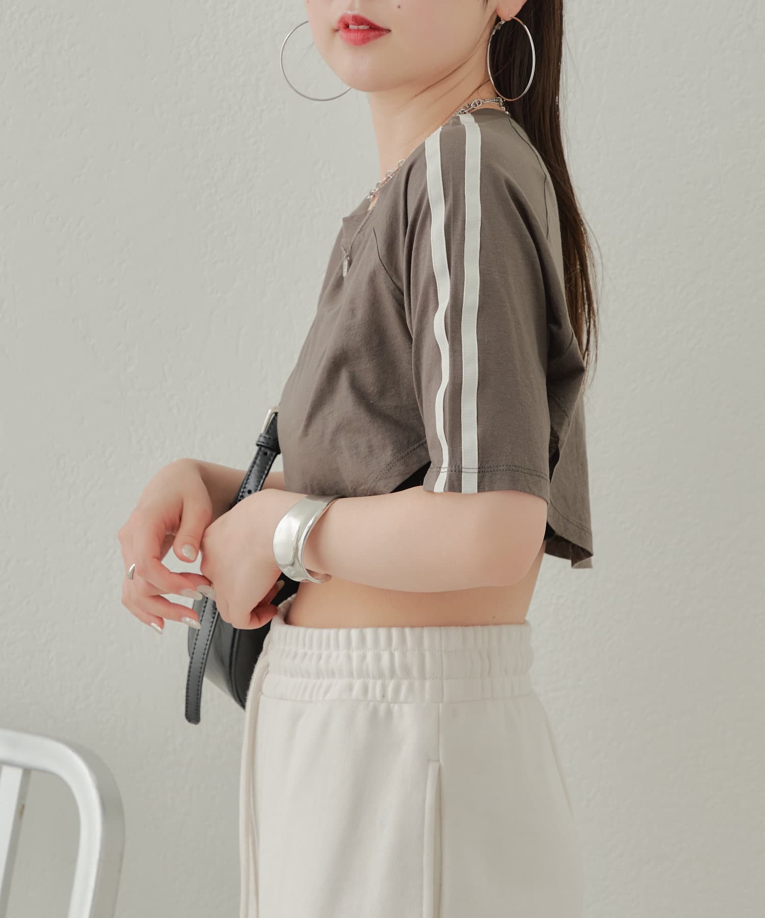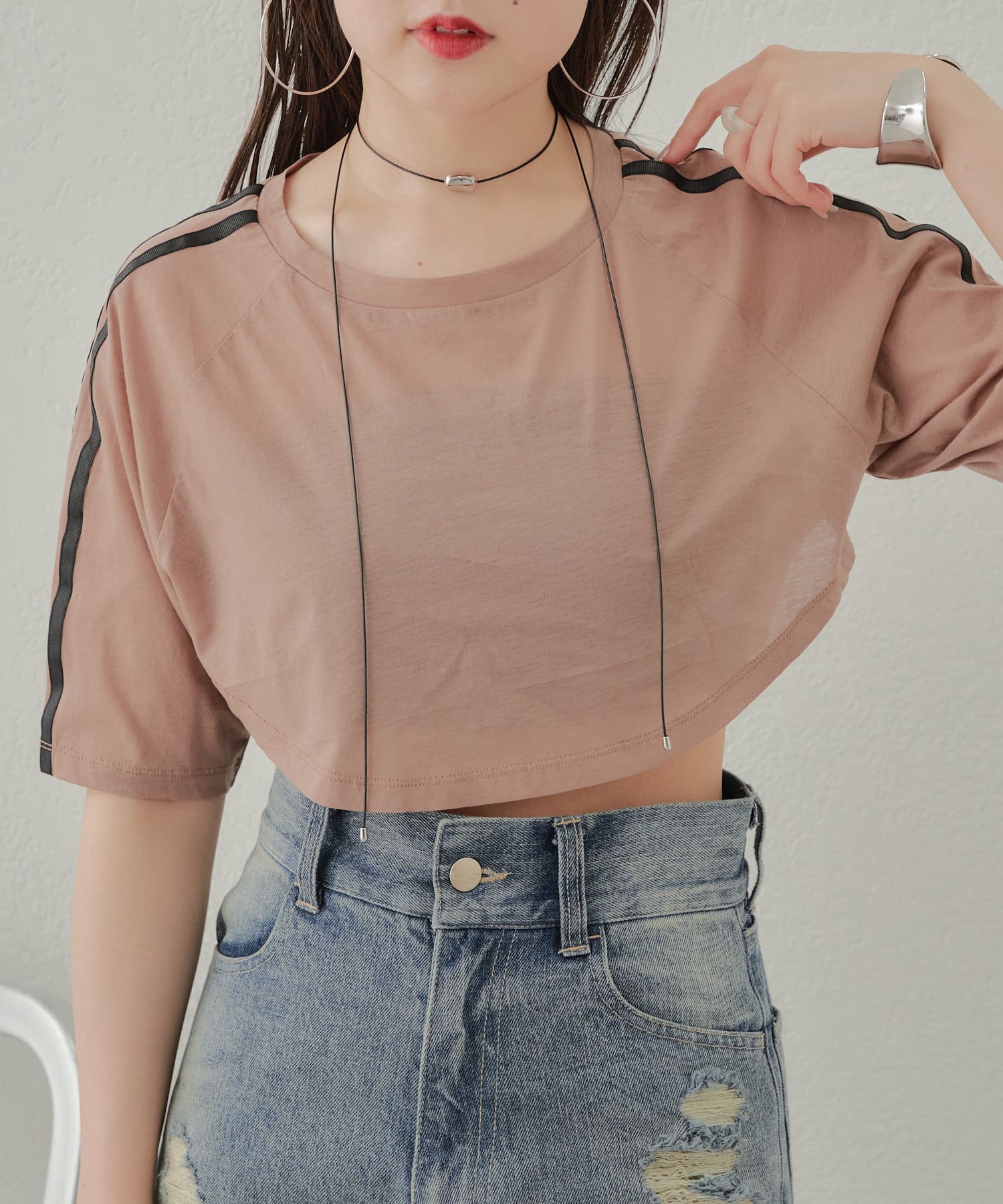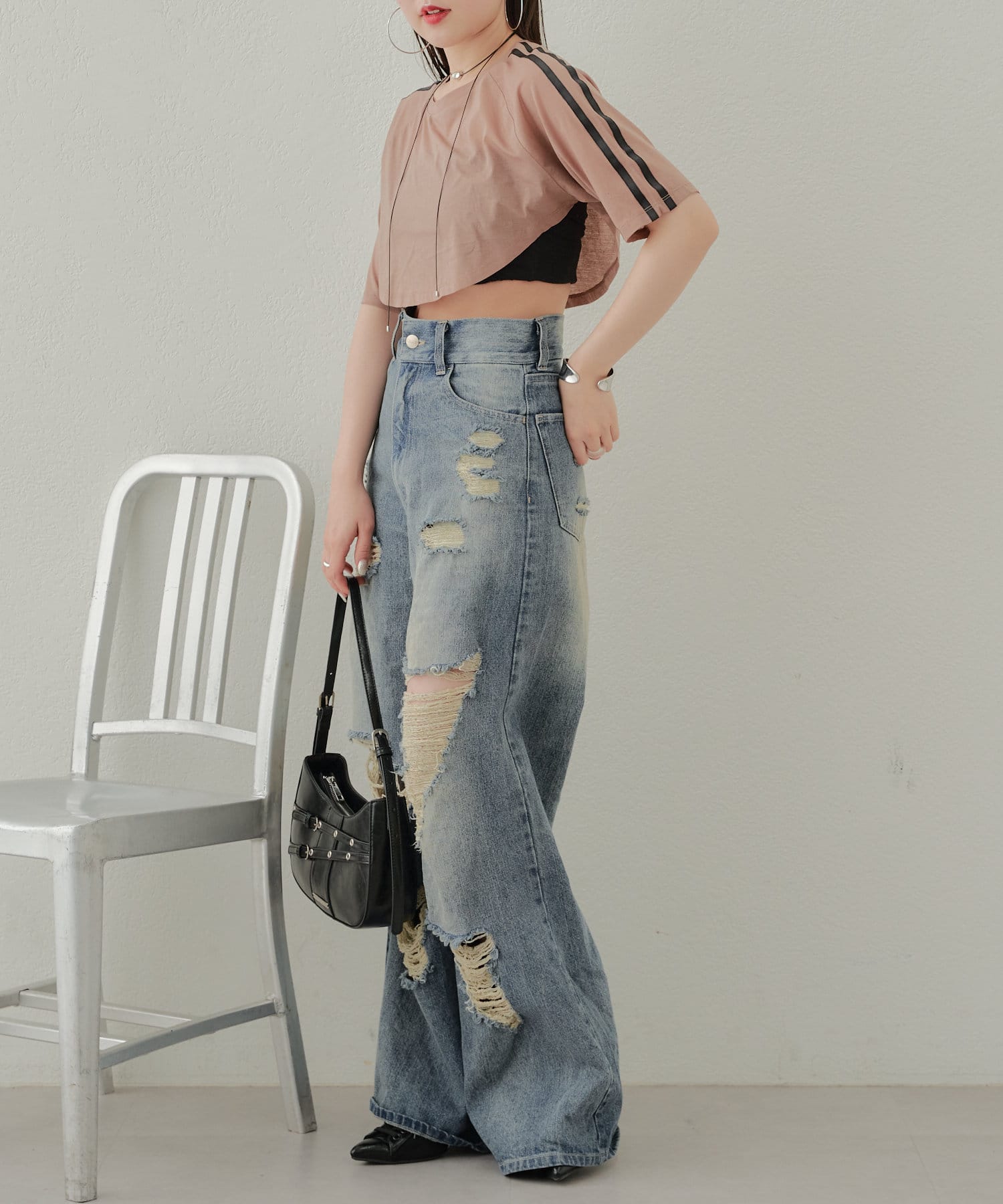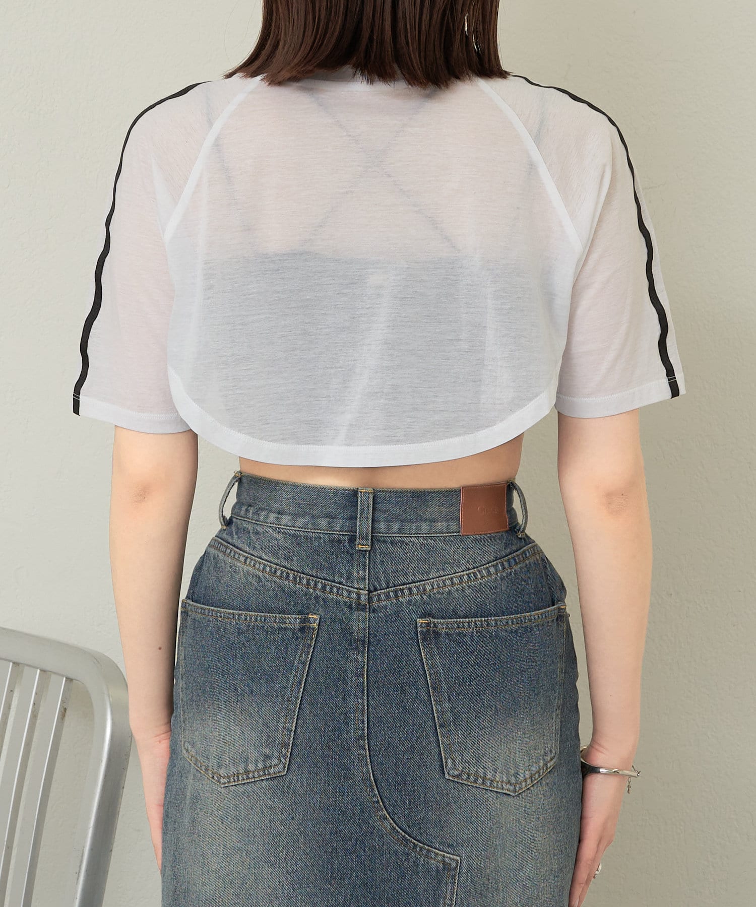 ・ハイウエストデニムにインナーも短丈をチョイスした肌見せコーデがおすすめ。