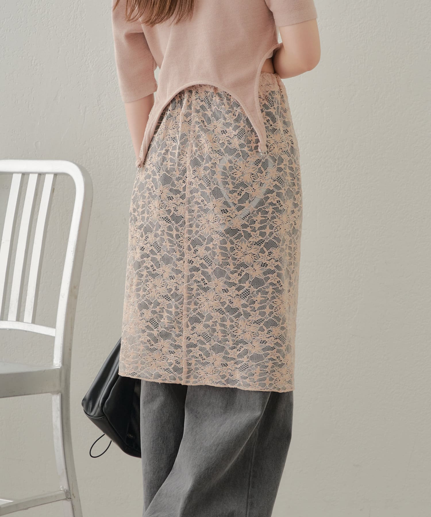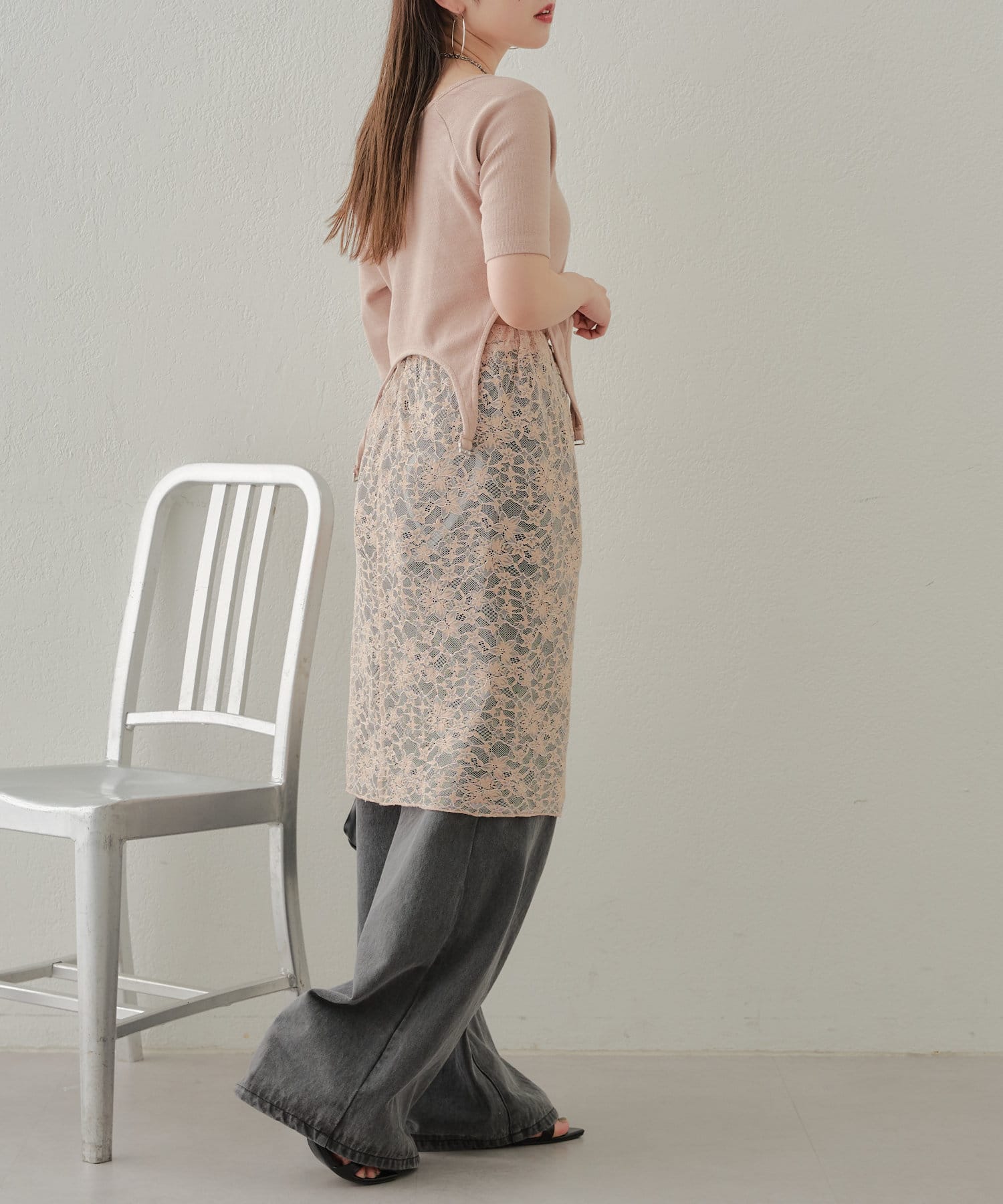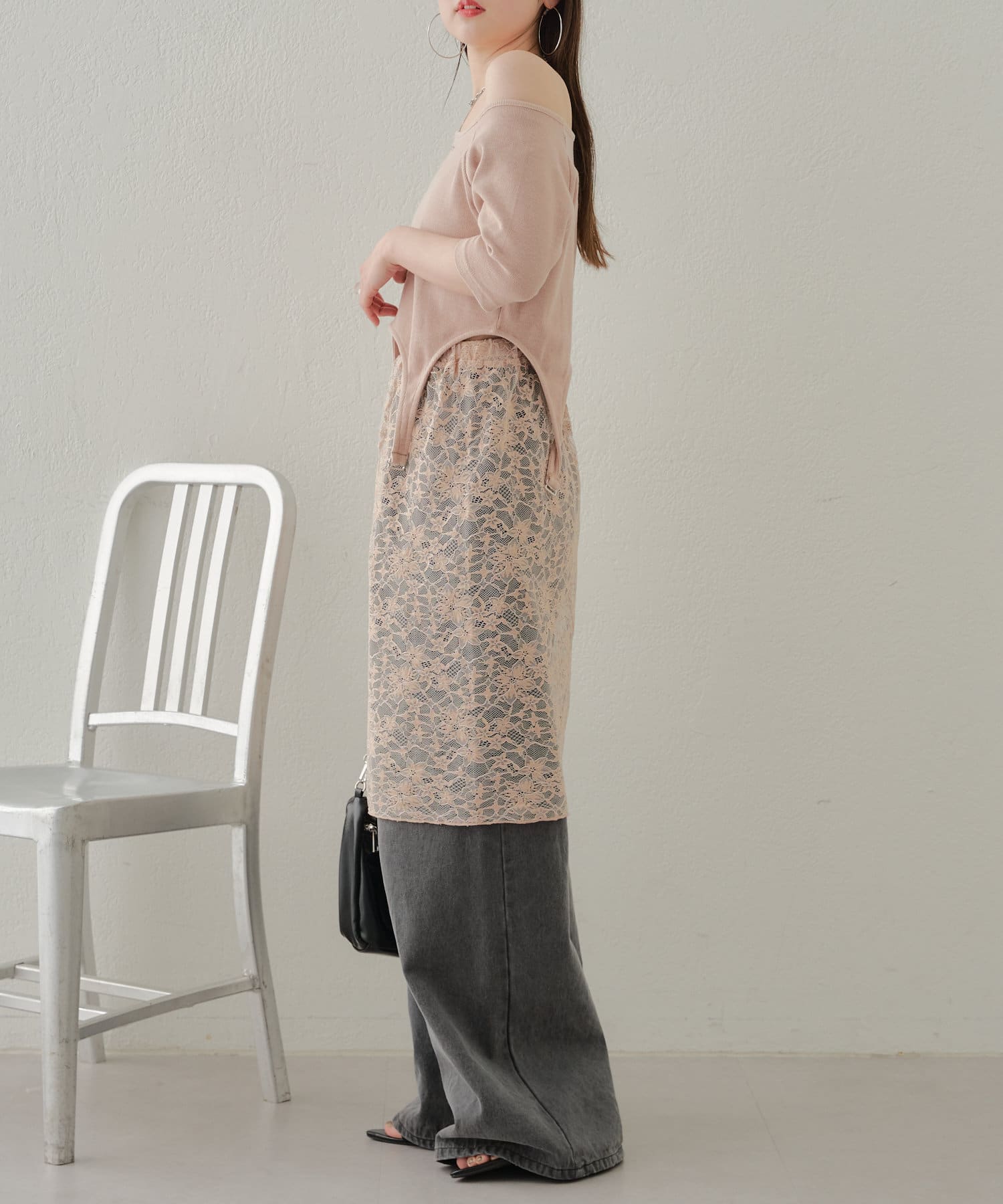 ・レースとトップスの色を合わせるとコーデがまとまりやすいです◎