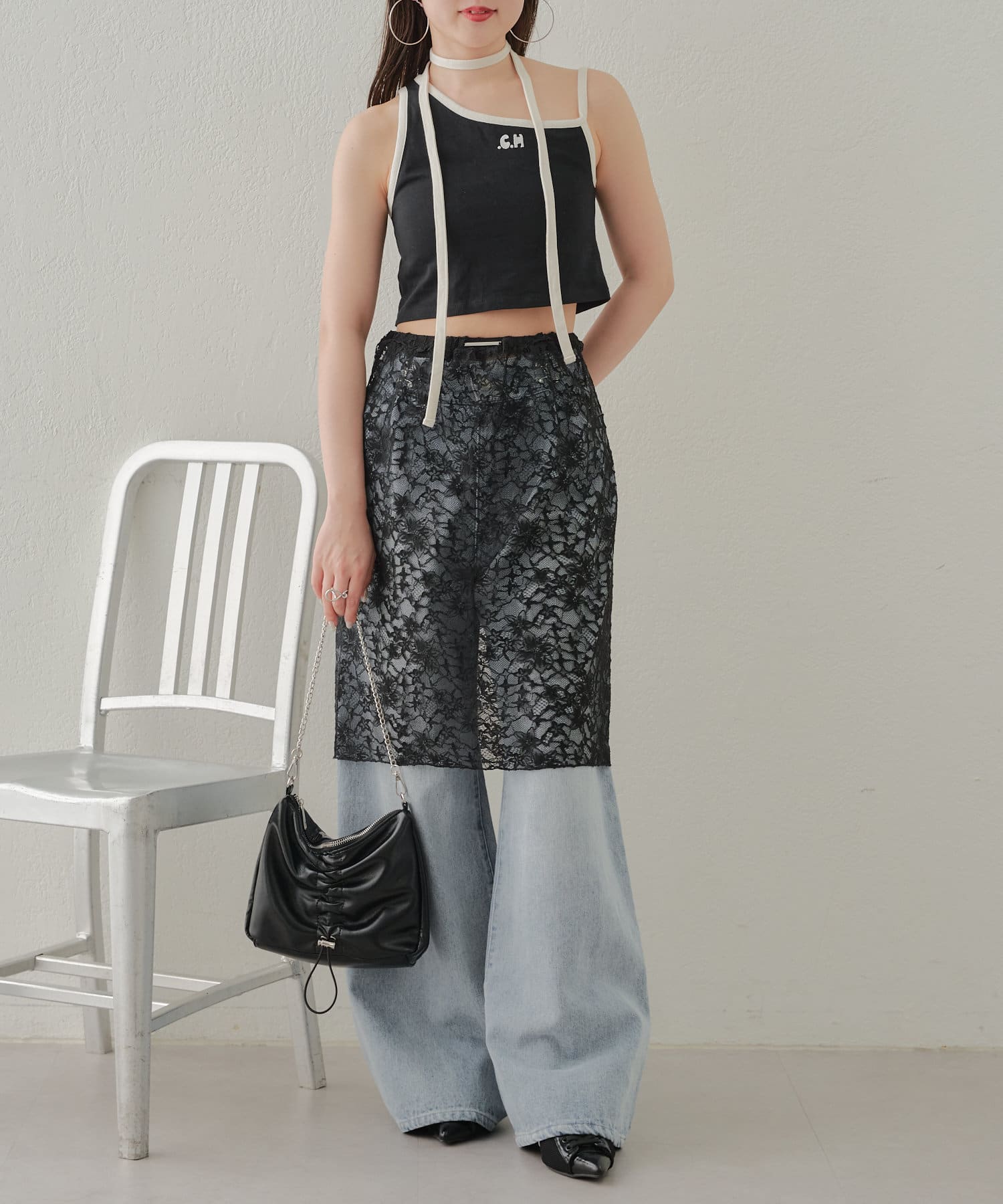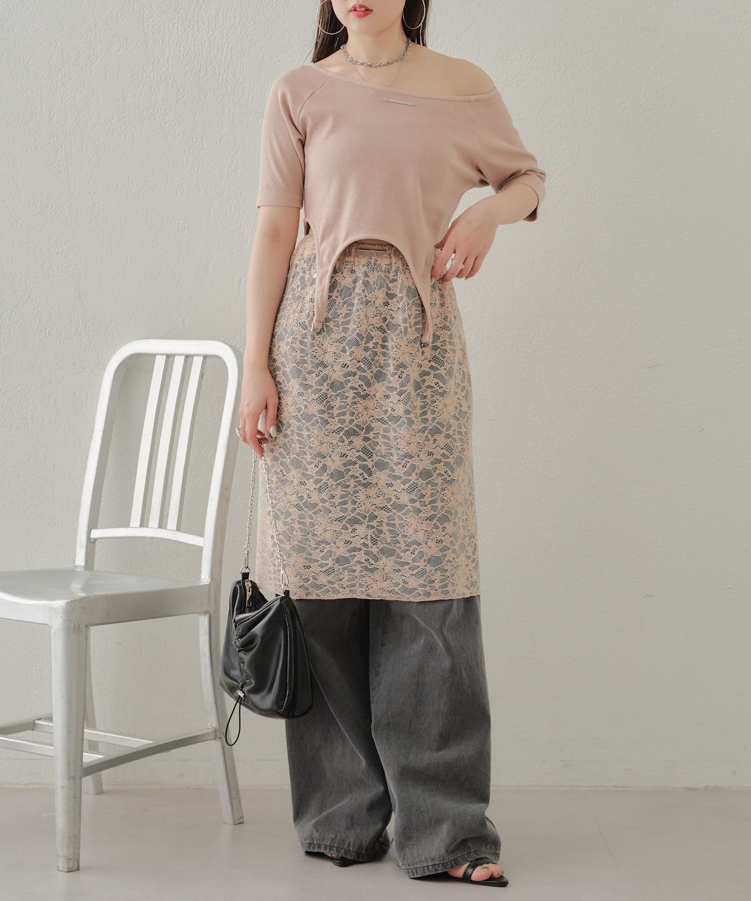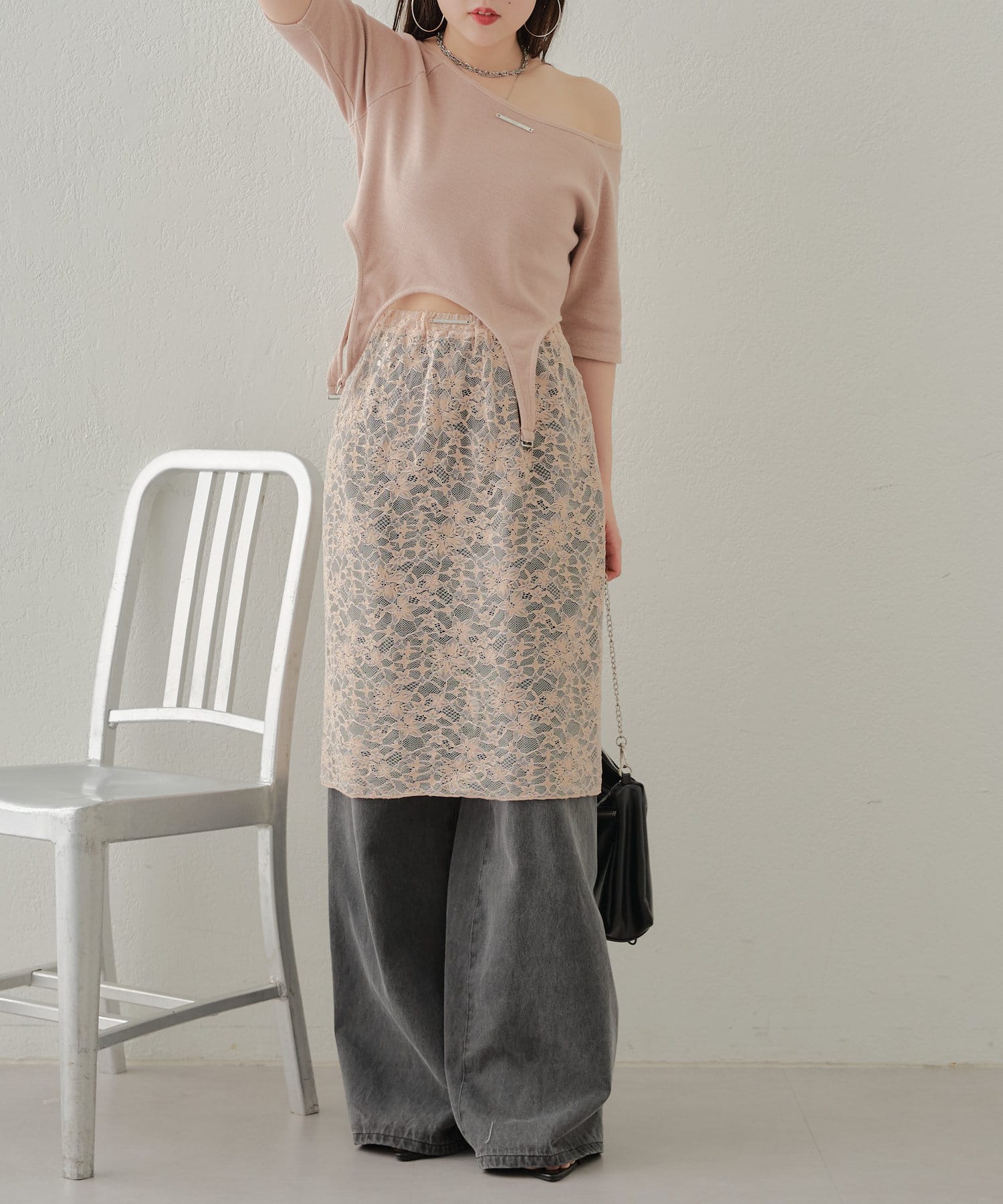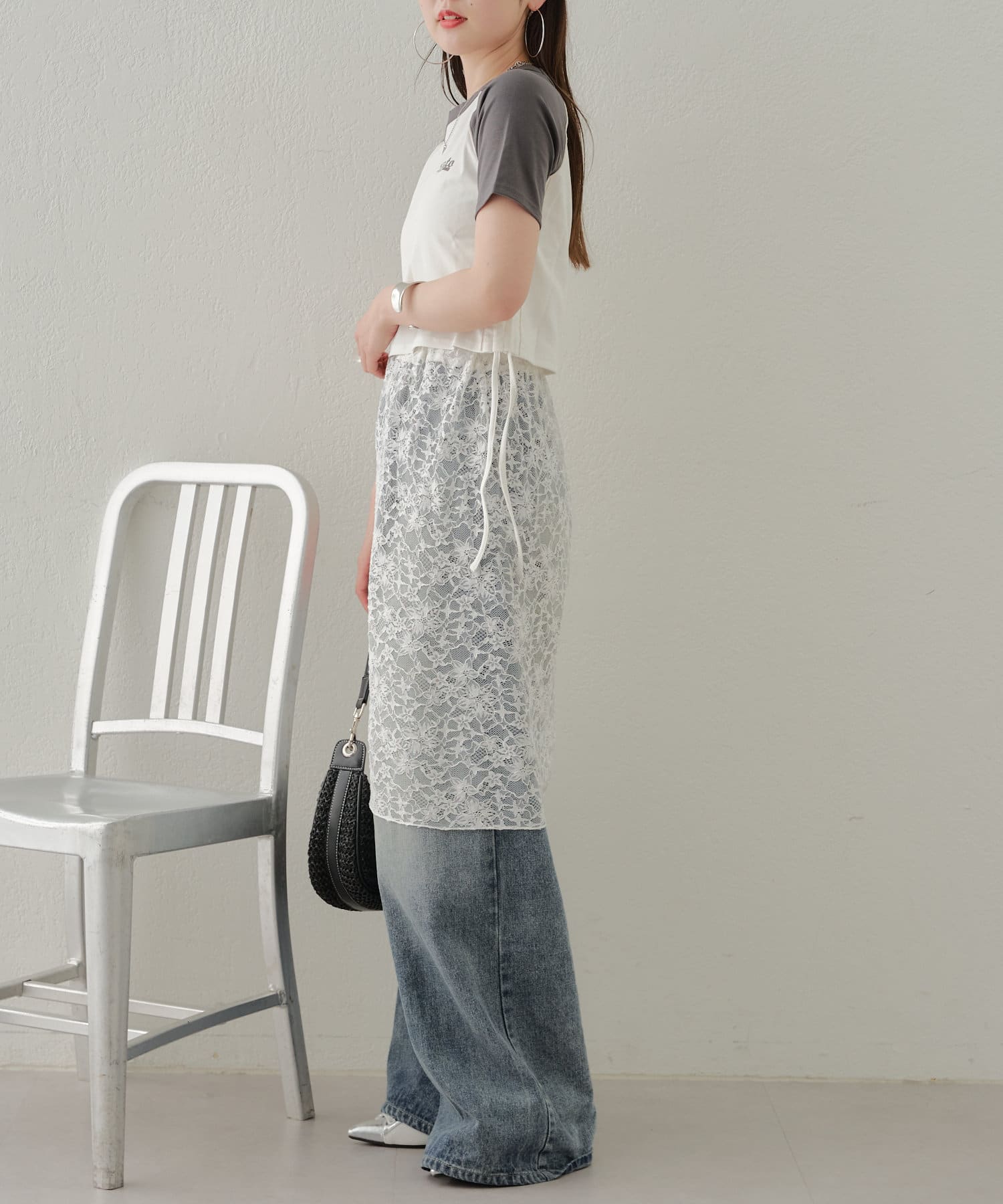 ・レースとトップスの色を合わせるとコーデがまとまりやすいです◎