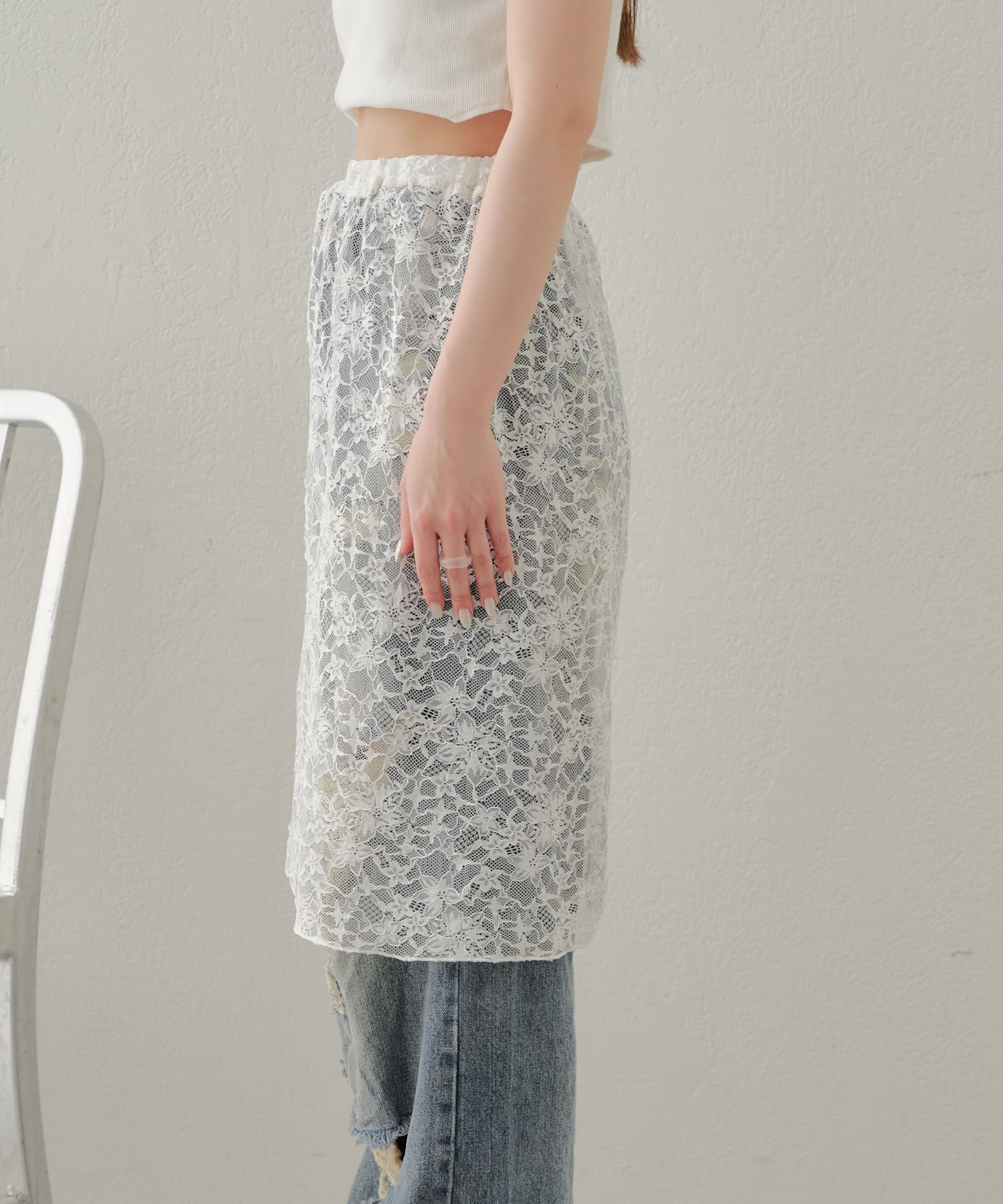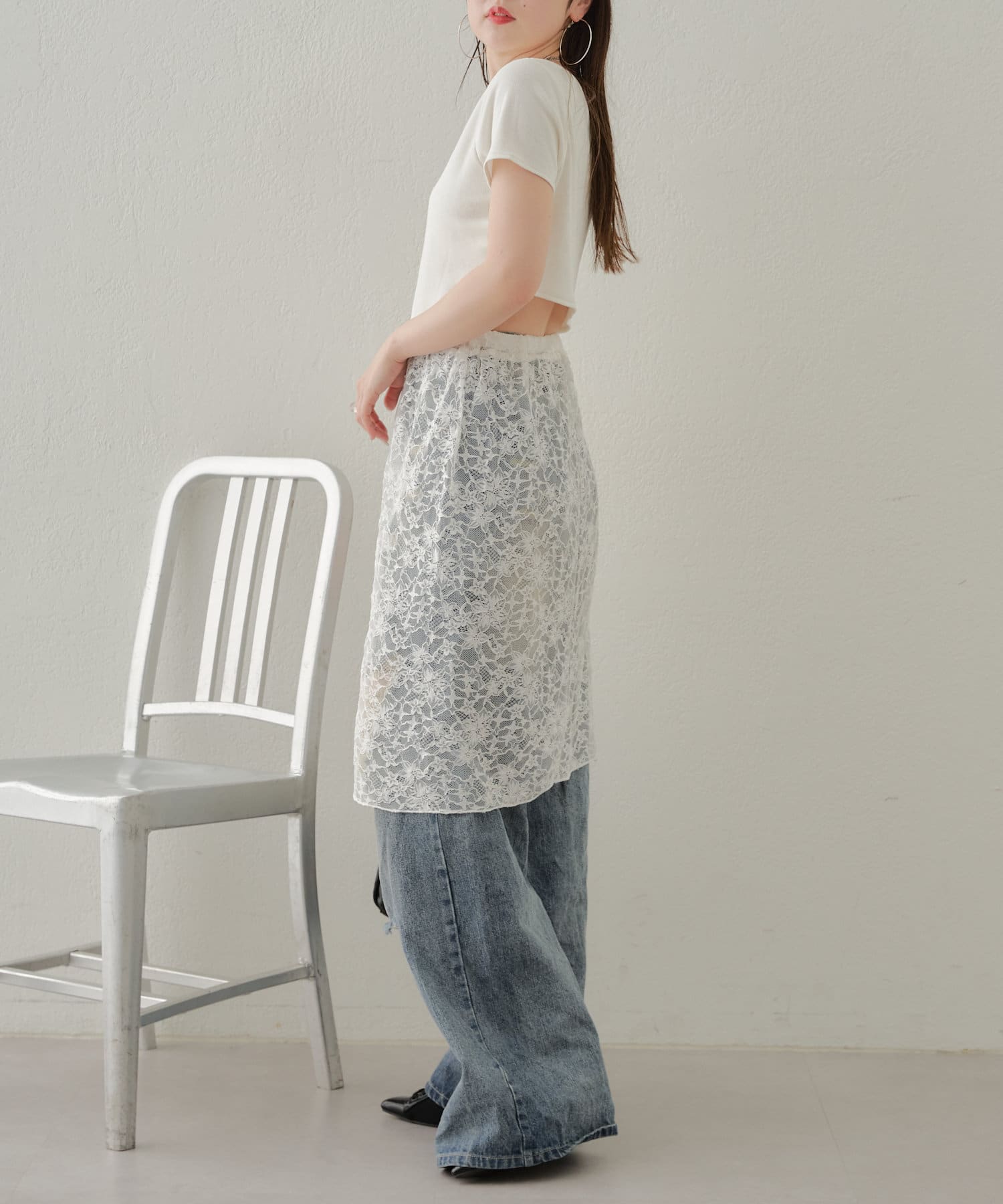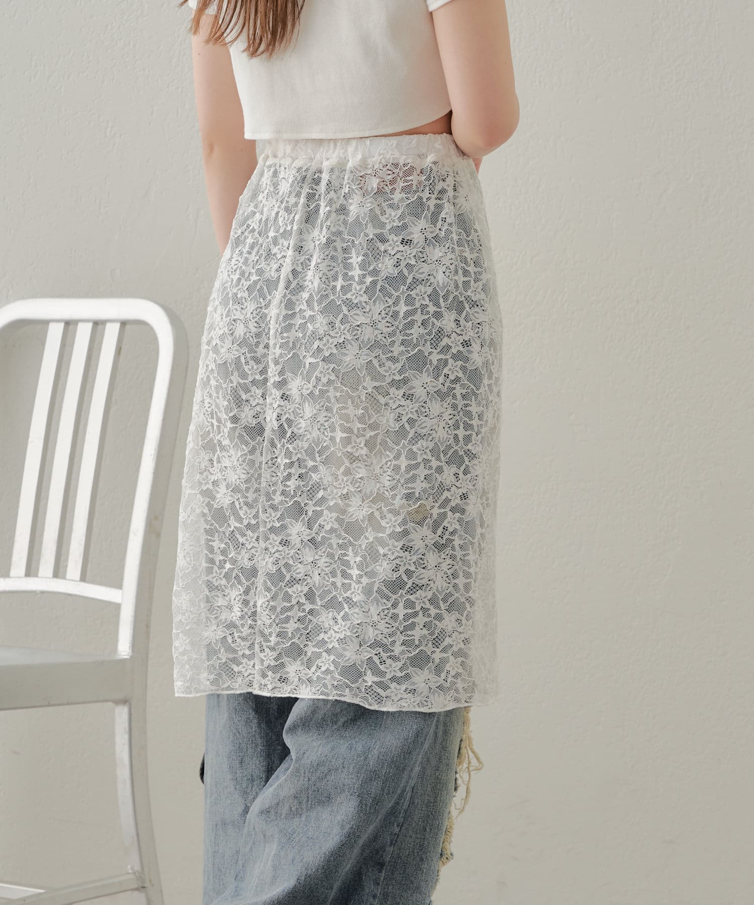 ・旬なレーススカートはデニムに重ねて着るだけでこなれ感あるコーデに◎