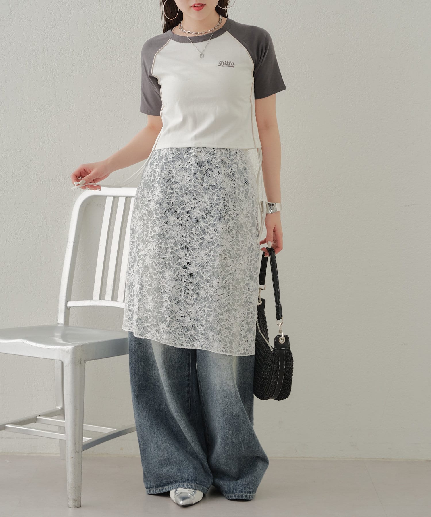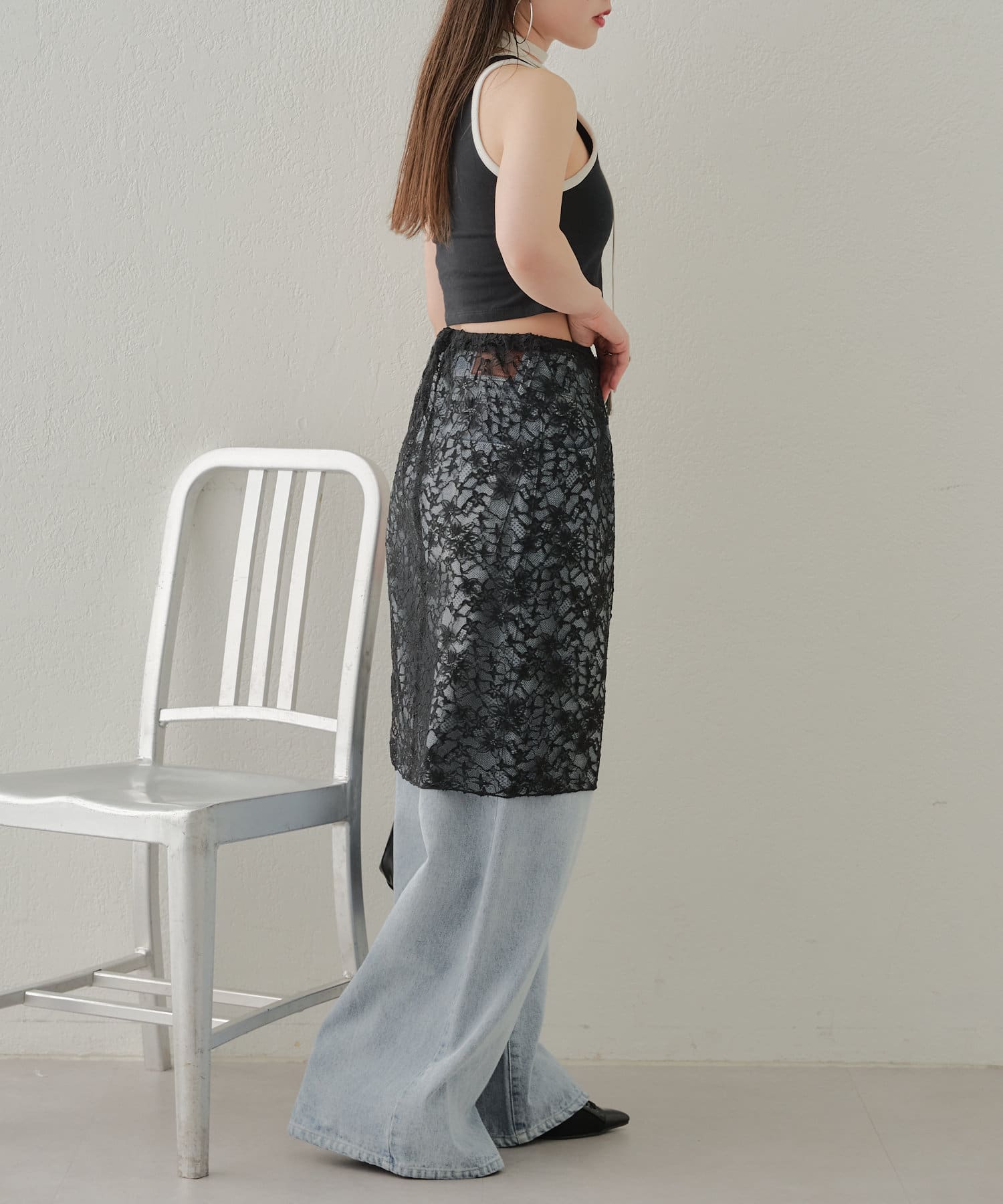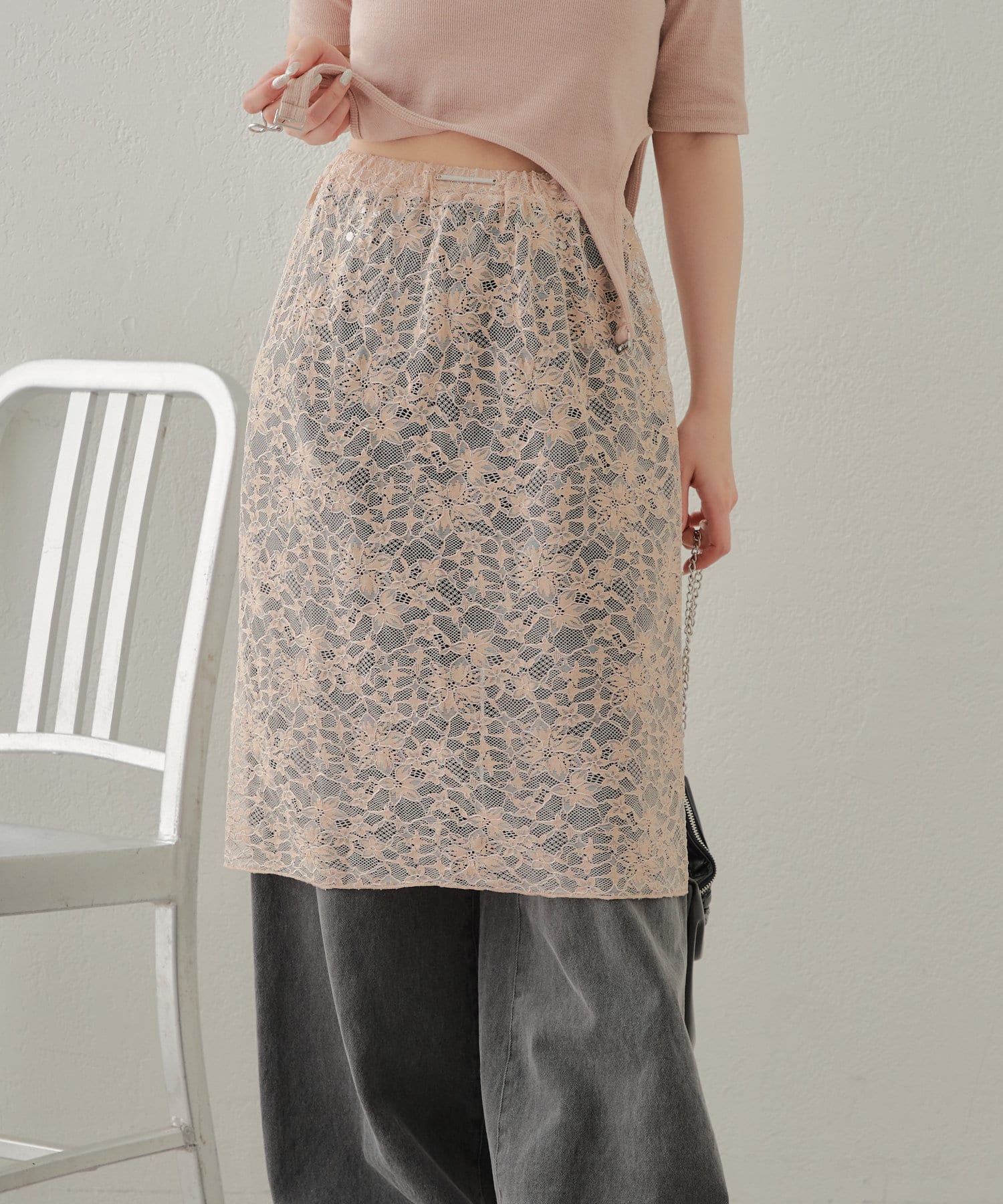 ・旬なレーススカートはデニムに重ねて着るだけでこなれ感あるコーデに◎