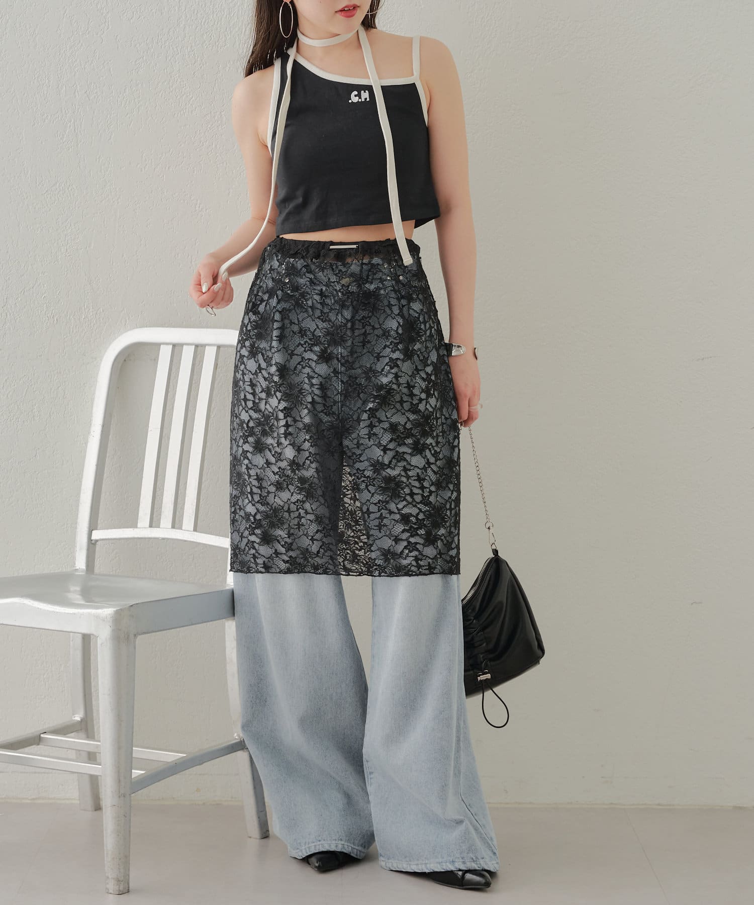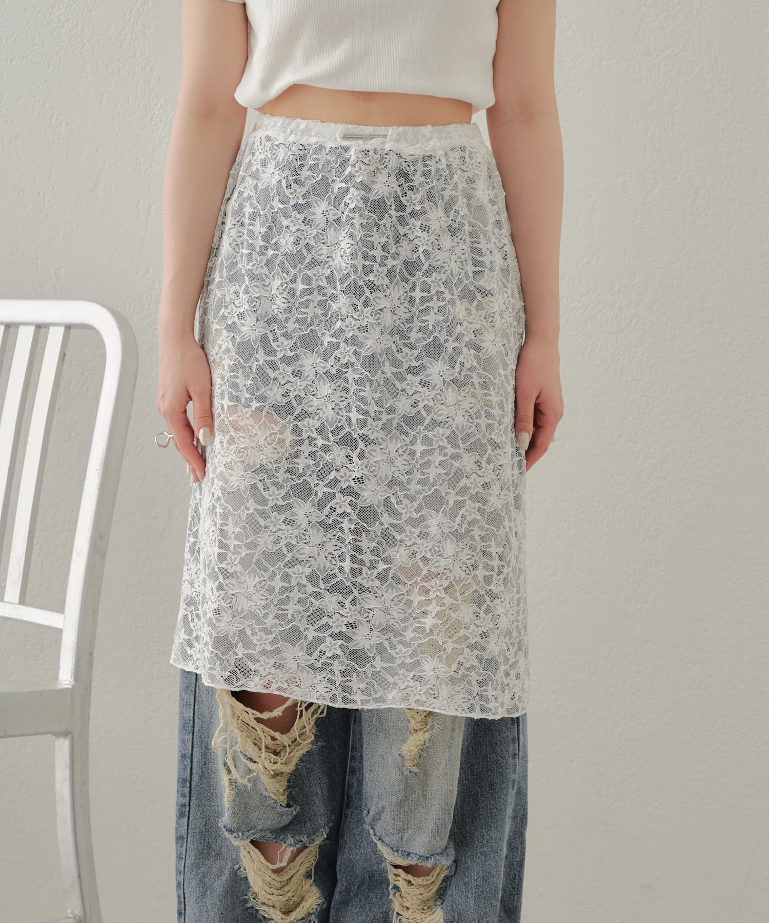 ・レースに透け感があるのでダメージデニムを合わせてデニムのデザインを透けさせるのも人気です。