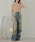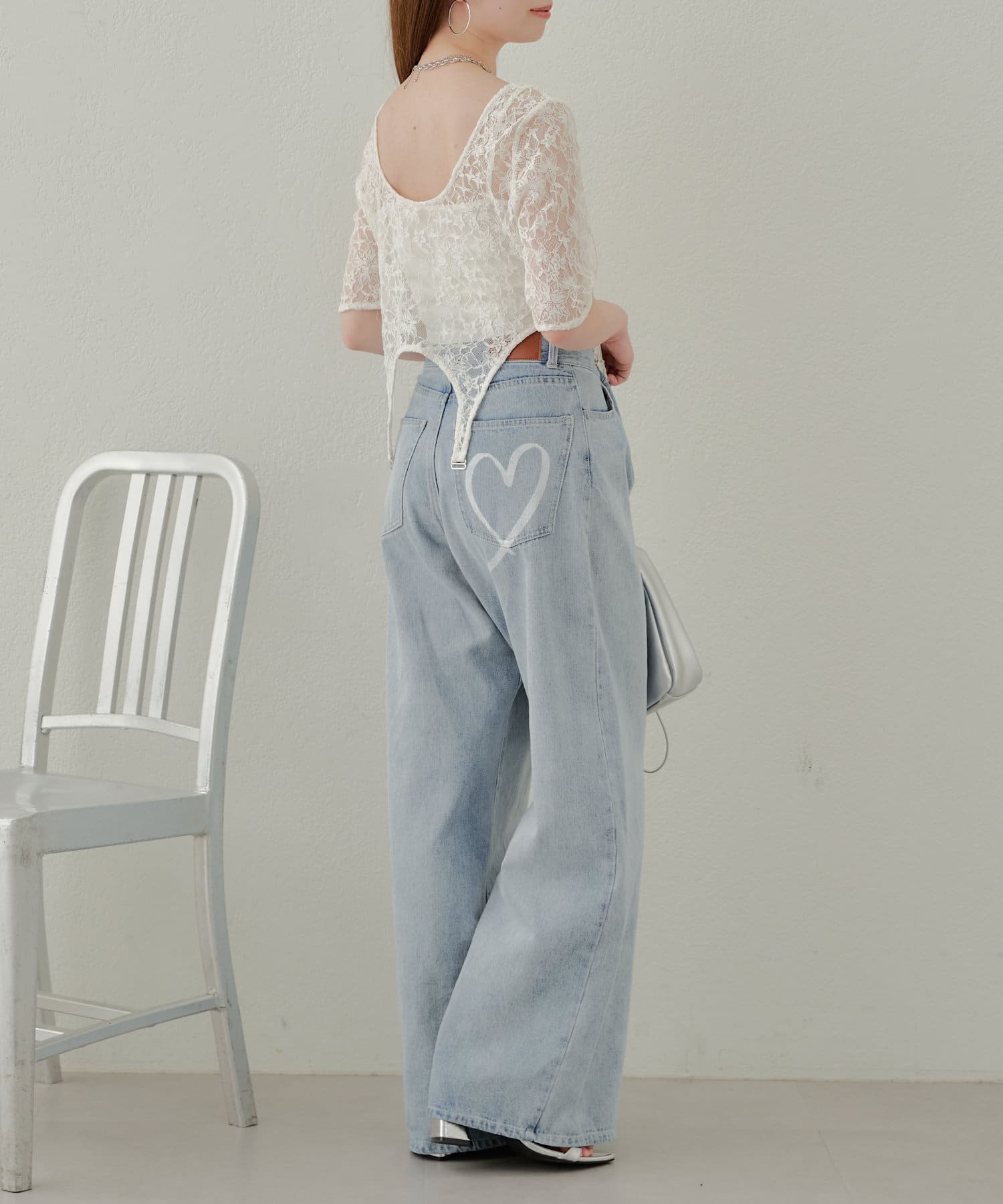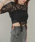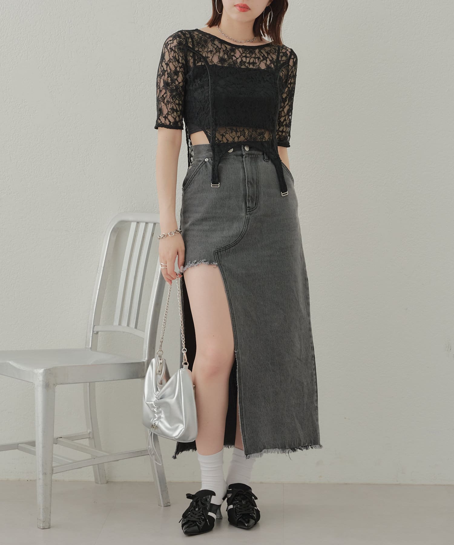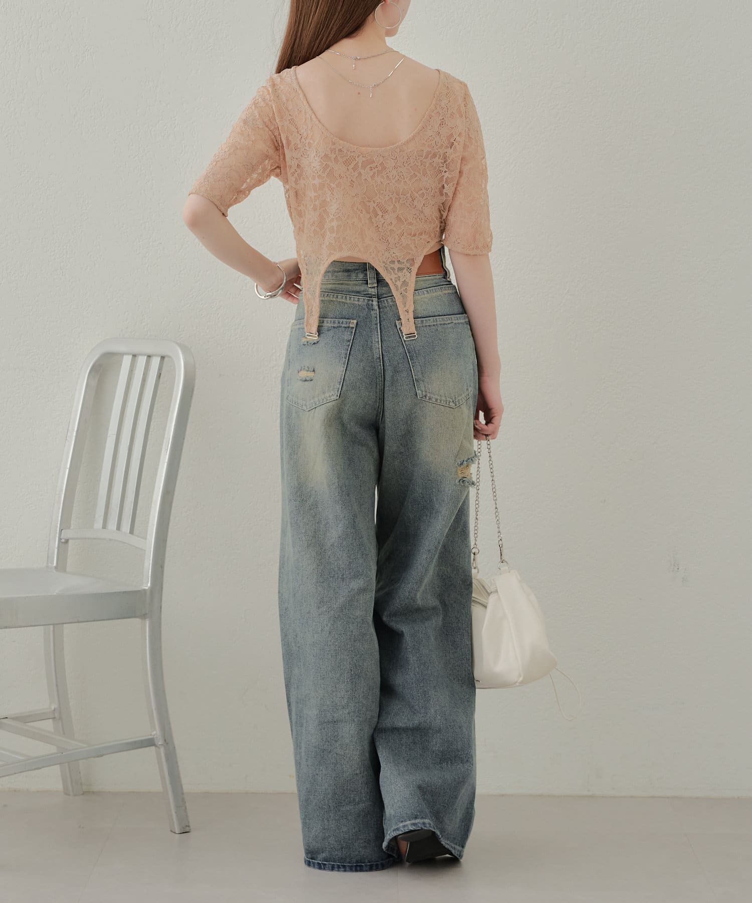 ・トレンドのレーシーアイテムはカジュアルなワイドデニムやスポーティーボトムとの合わせが好相性◎